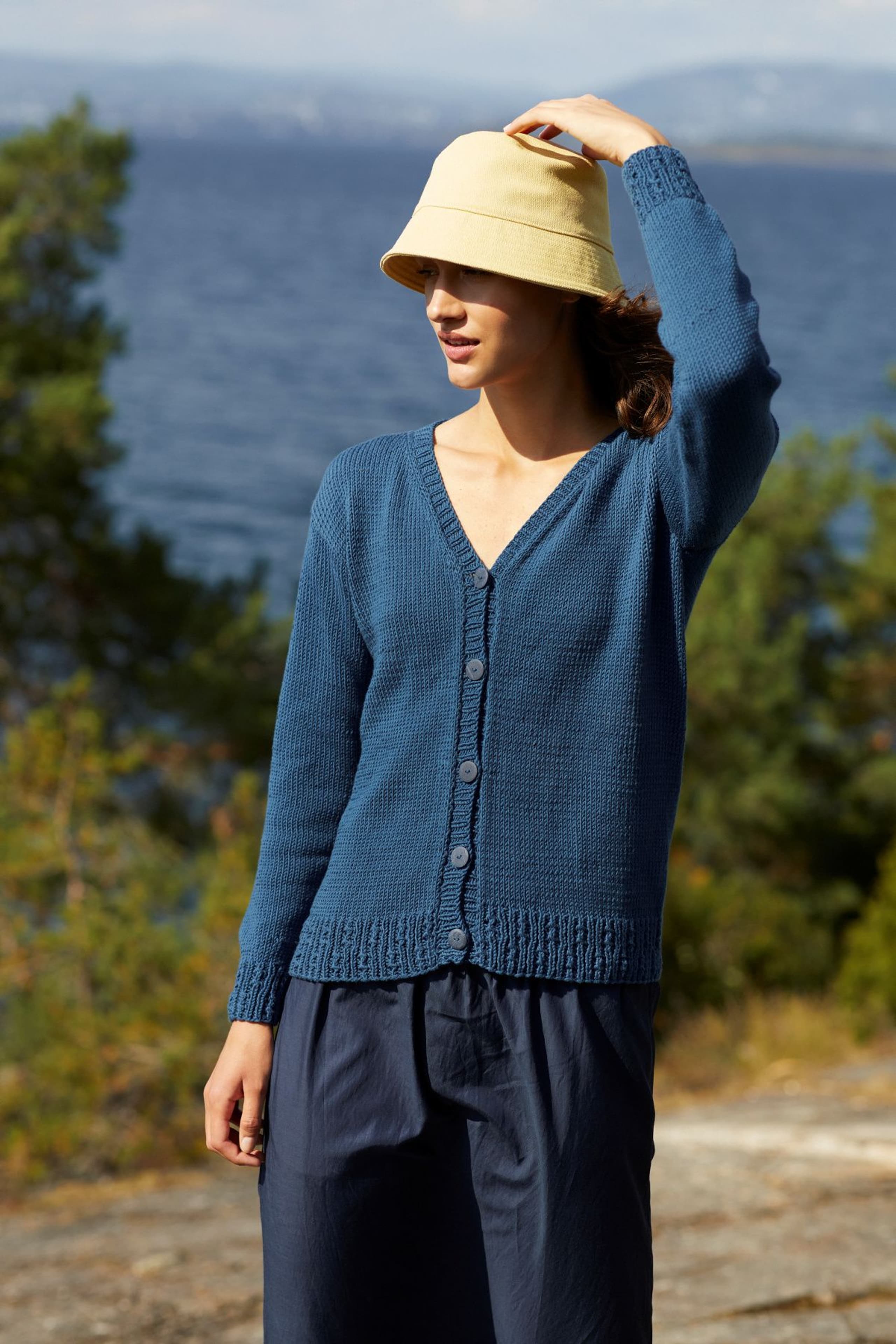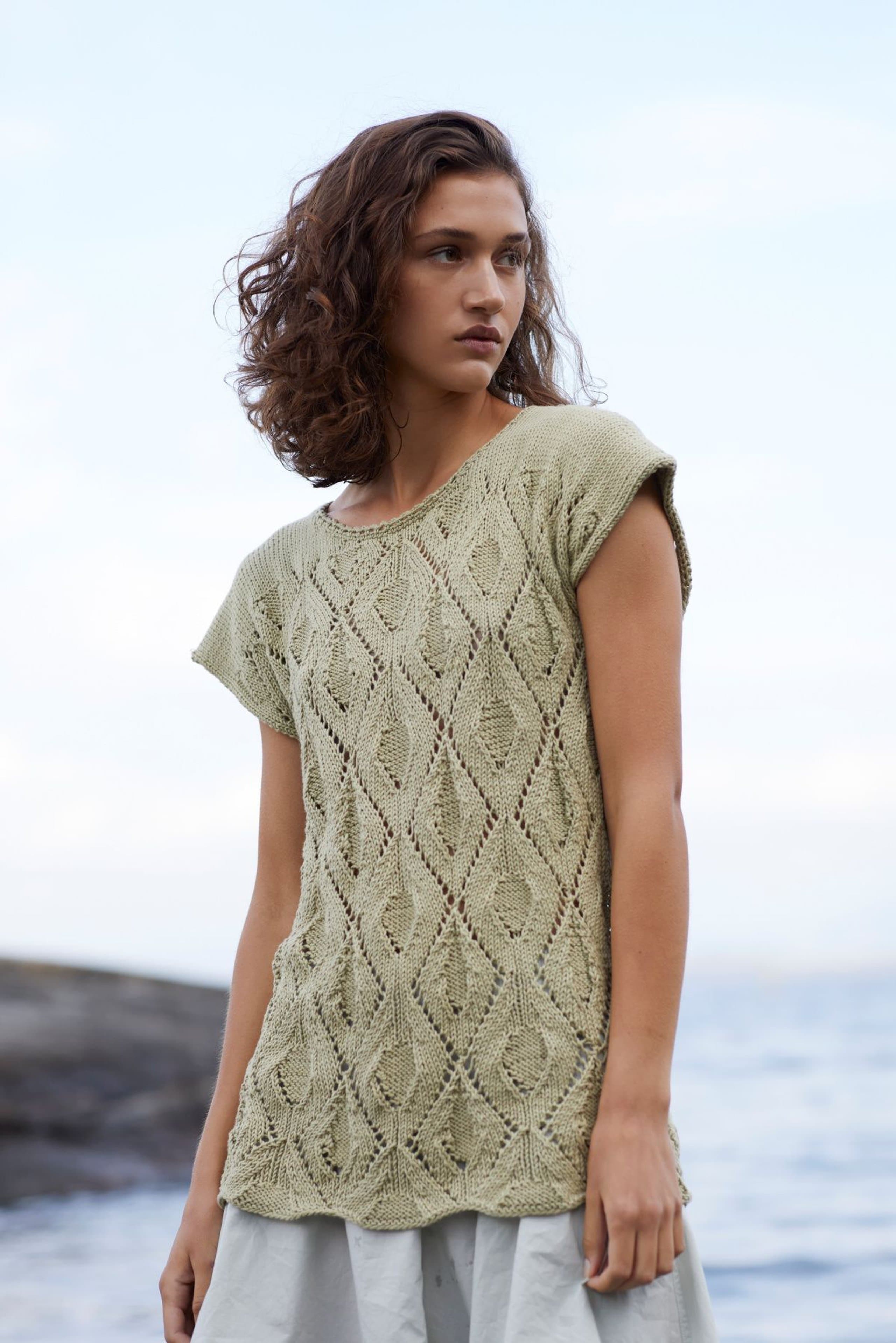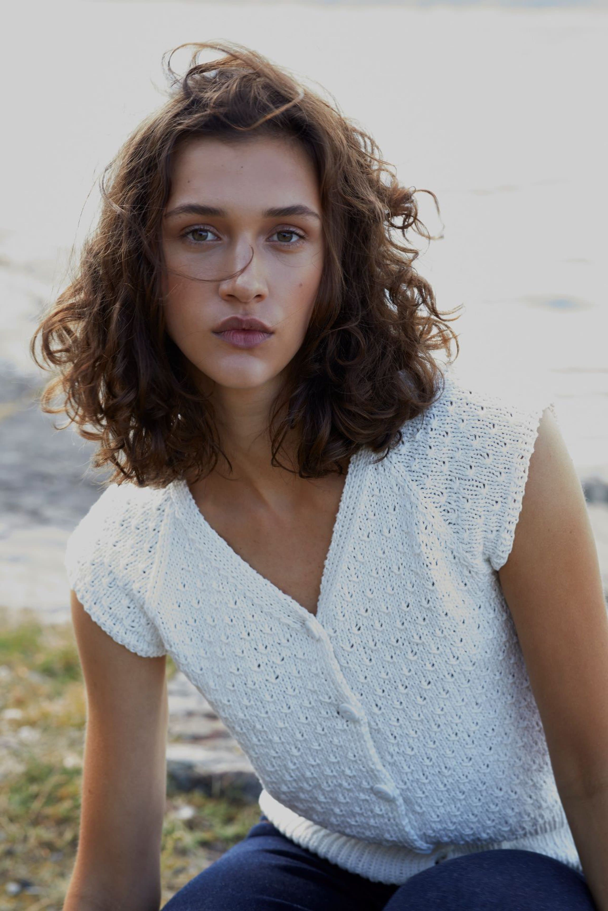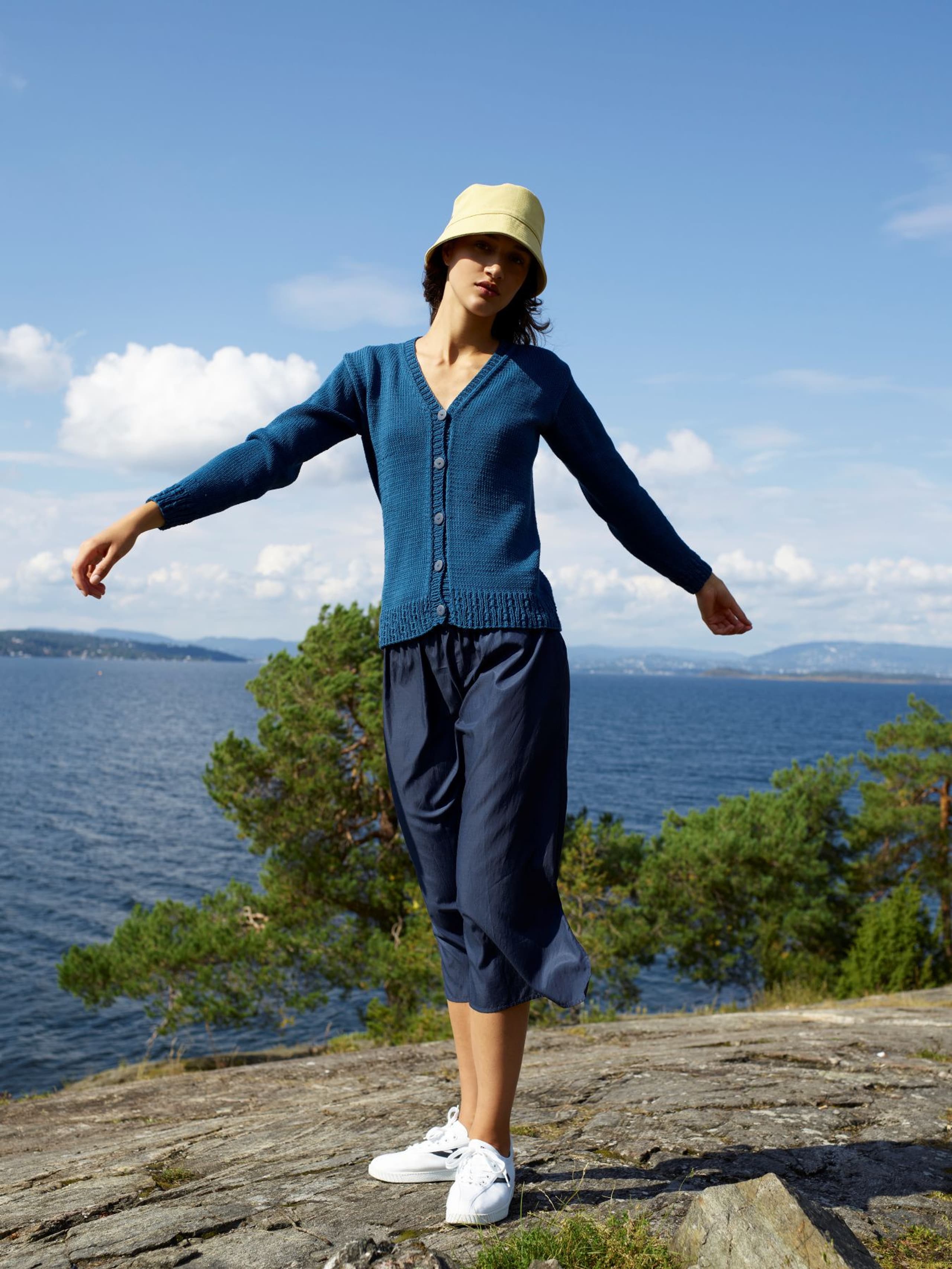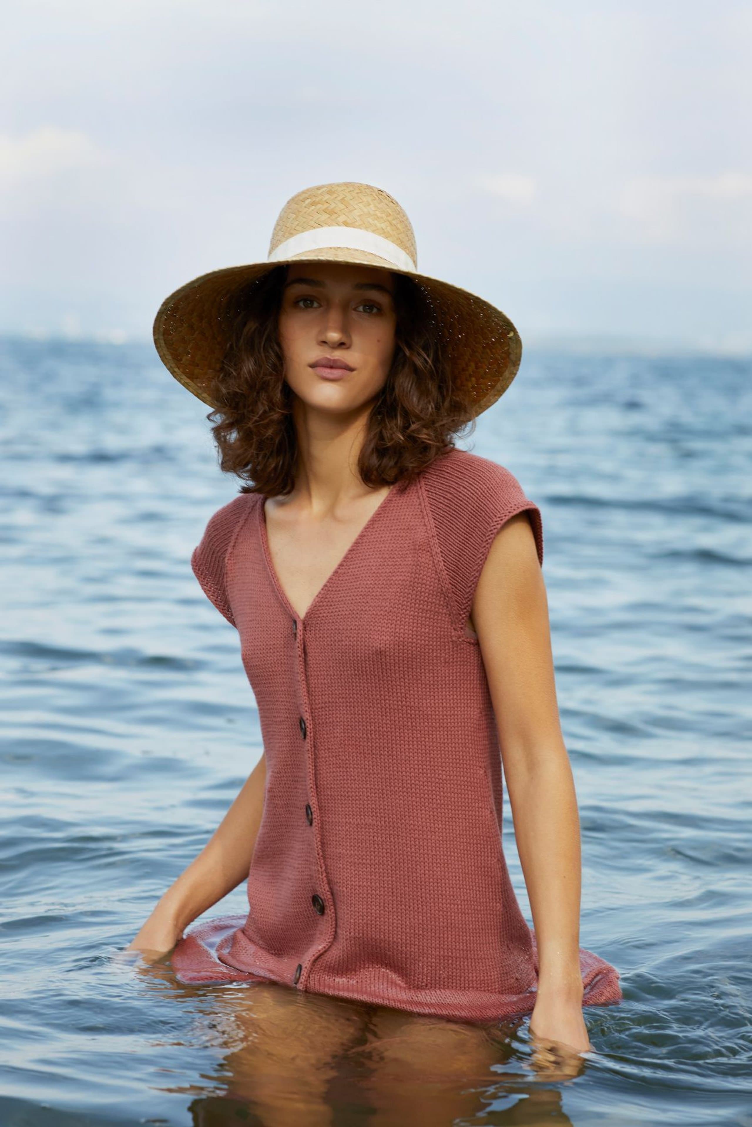 Kjole med v-hals, korte ermer og raglanfelling. Den strikkes frem og tilbake nedenfra og opp. Den har åpning foran med knapper. Knapphullene lages oppover etter hvert, derfor er det lett å regulere avstanden mellom knapphullene. Ønskes kjolen lengre, må lengden mellom knapphullene tilpasses og det må beregnes mer garn. Kjolen har en tenkt bevegelsesvidde på 8 cm.