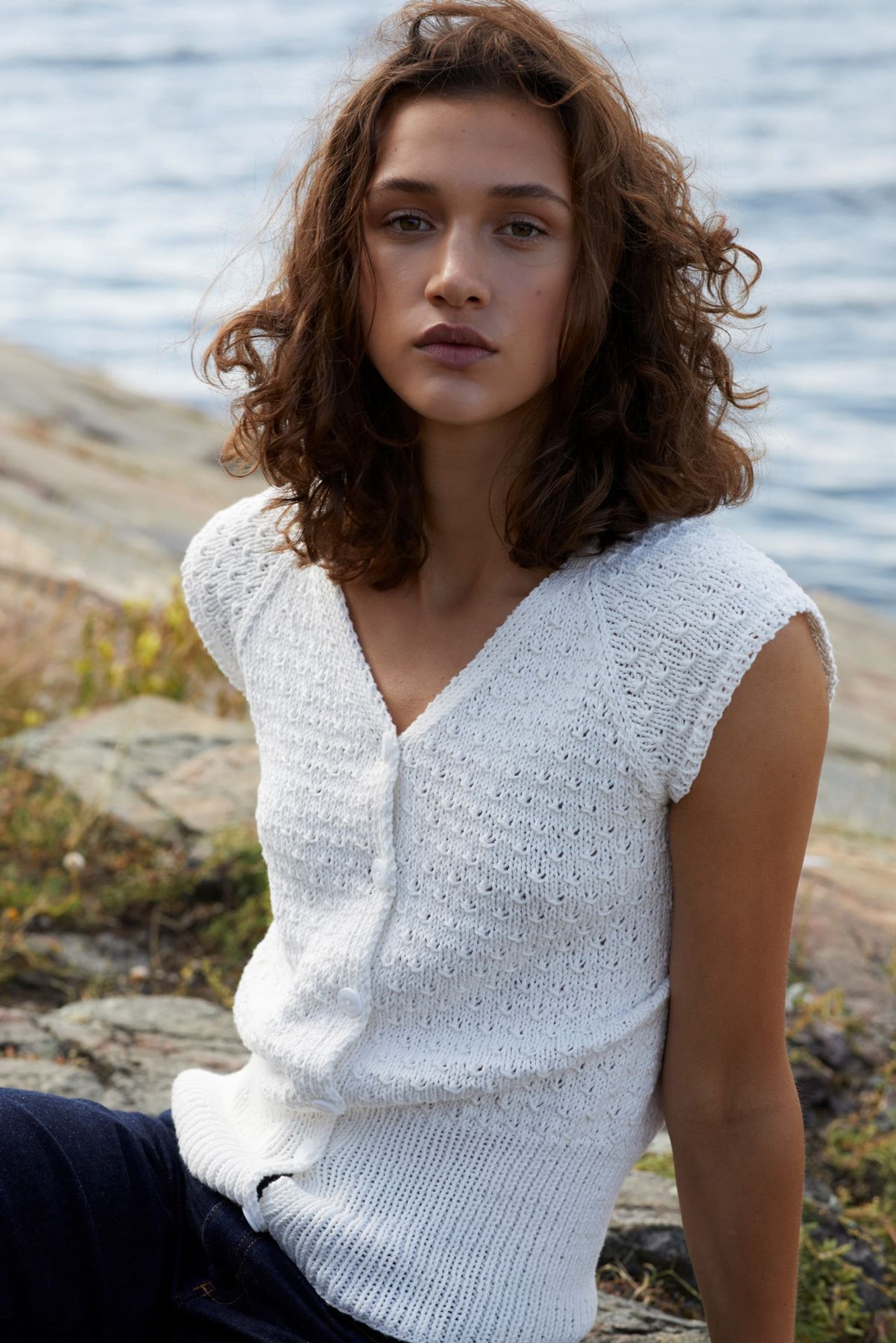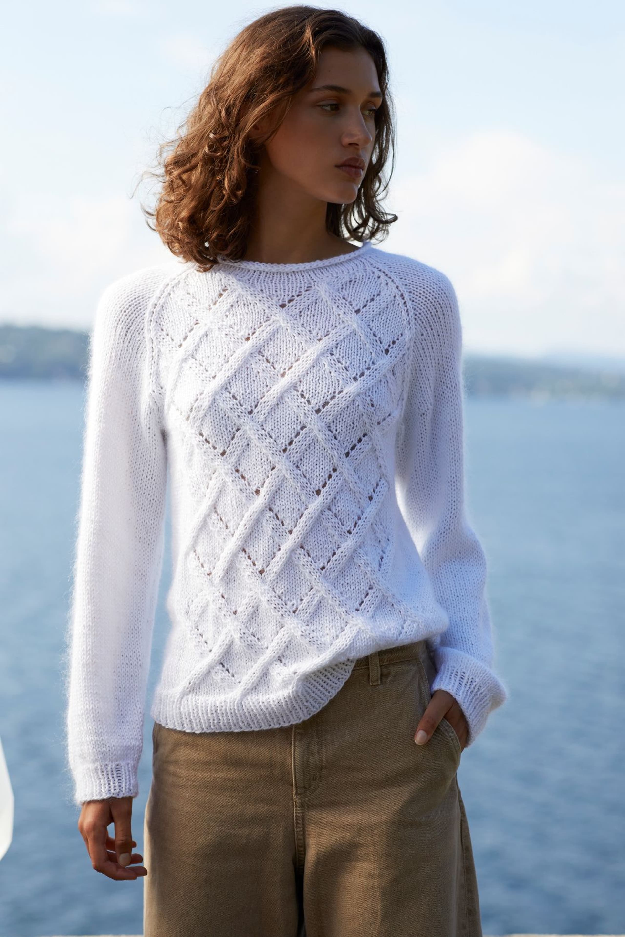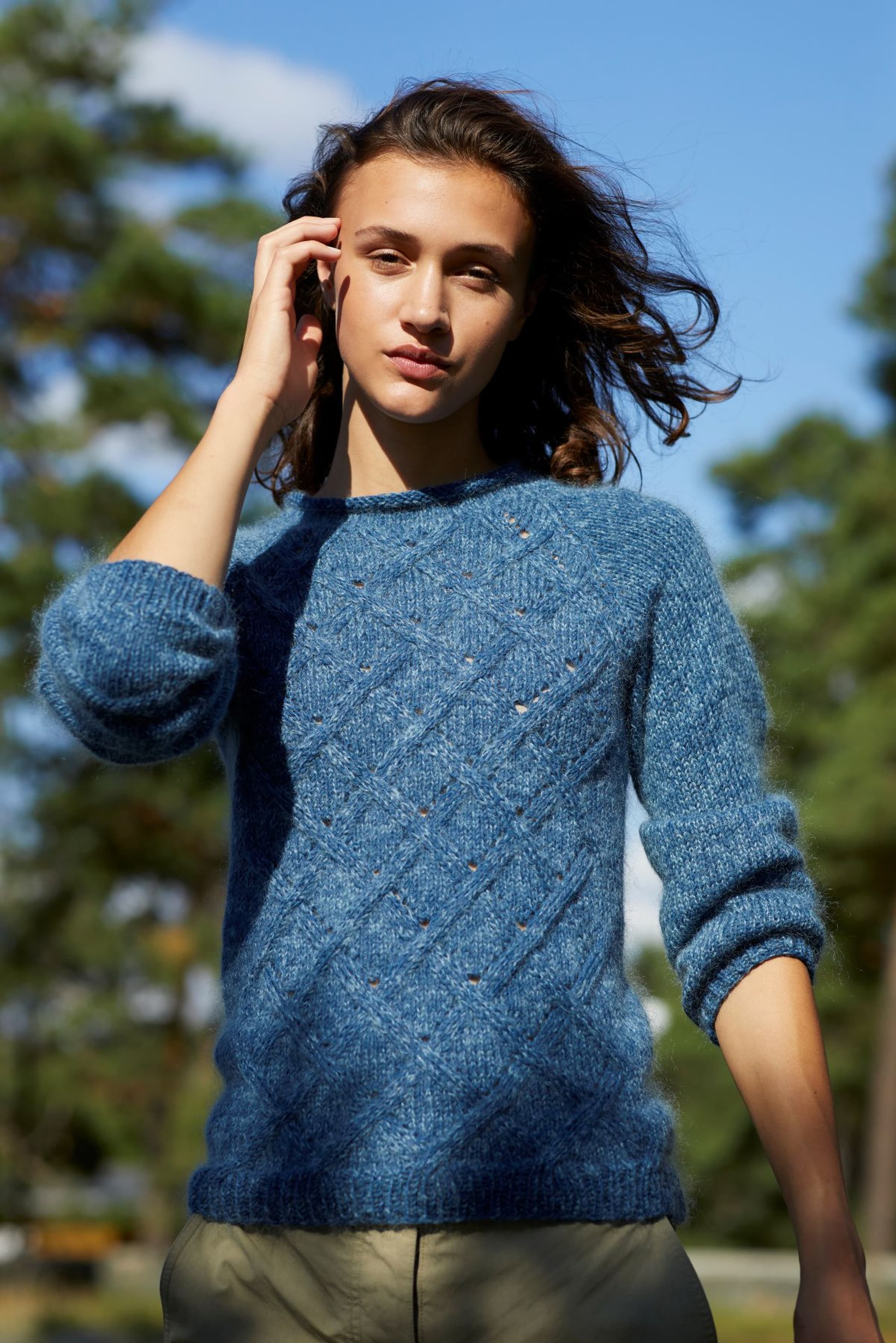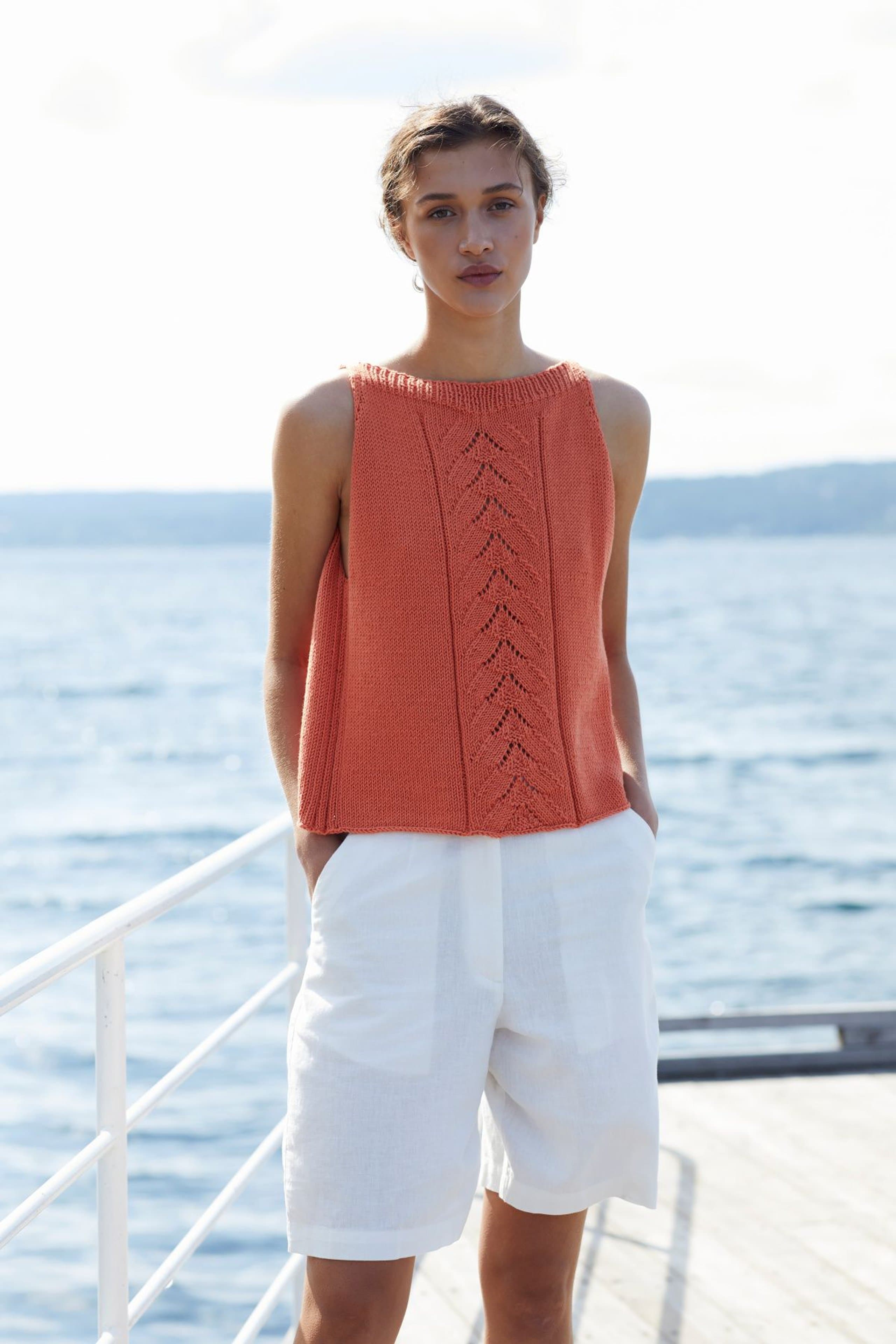 Kjole med v-hals, korte ermer og raglanfelling. Den strikkes frem og tilbake nedenfra og opp. Den har åpning foran med knapper. Knapphullene lages oppover etter hvert, derfor er det lett å regulere avstanden mellom knapphullene. Ønskes kjolen lengre, må lengden mellom knapphullene tilpasses og det må beregnes mer garn. Kjolen har en tenkt bevegelsesvidde på 8 cm.