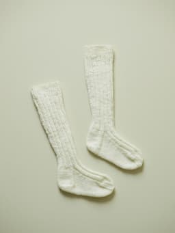 Strømpene strikkes ovenfra og ned, med ribbemønster.