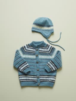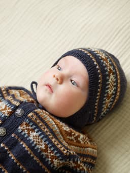 Vestfoldluen har mønster inspirert fra mønsteret til Vestfoldbunaden. Den har øreklaffer. Den strikkes rundt nedenfra og opp.