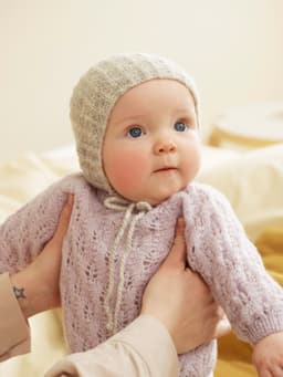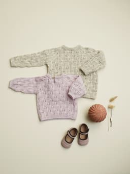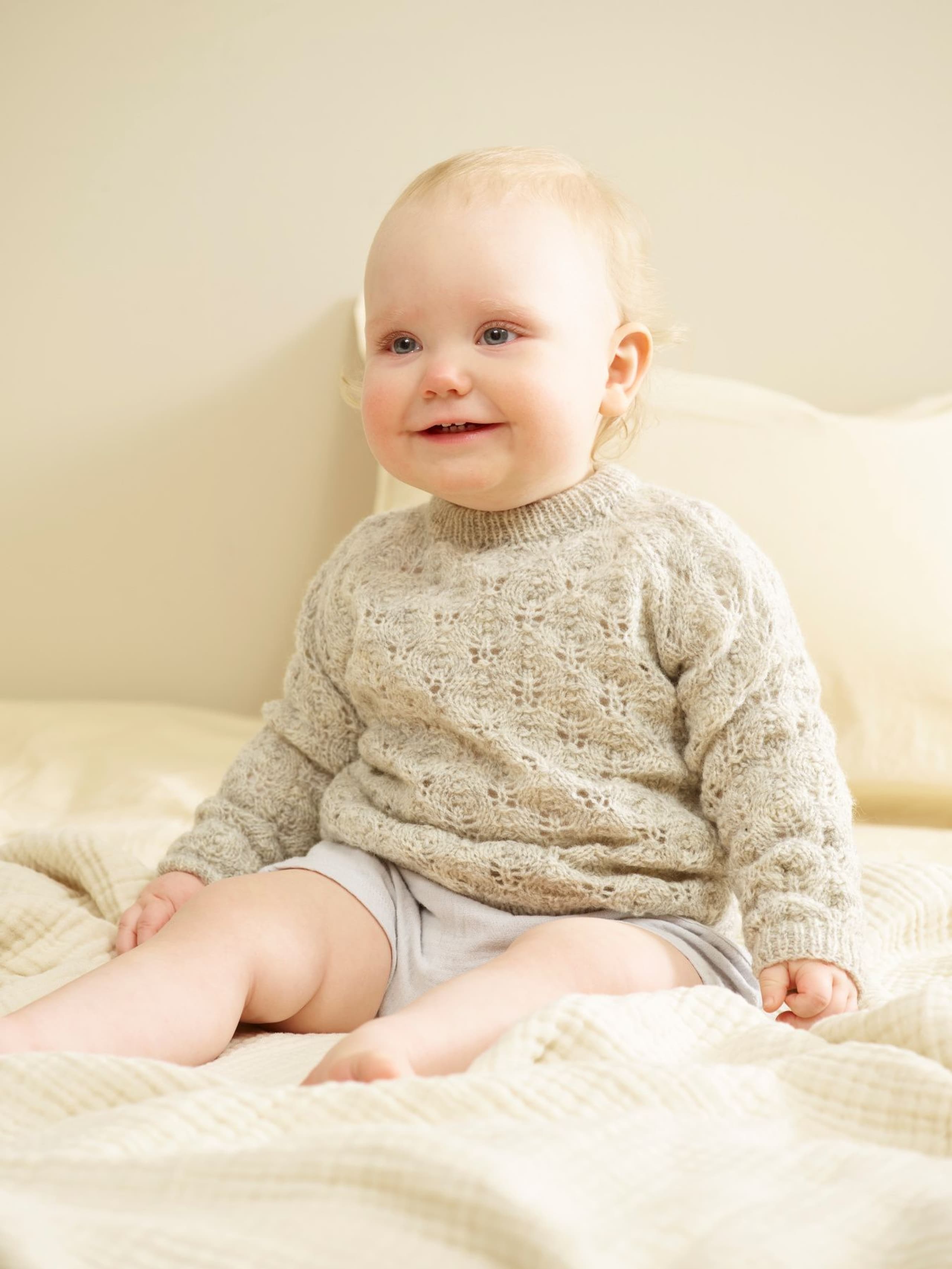 Kråkegenseren er en hullmønsteret genser med splitt bak i nakken. Splitten lukkes med en hempe og en knapp i nakken. Genseren er strikket nedenfra og opp med raglanfellinger.