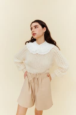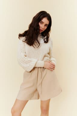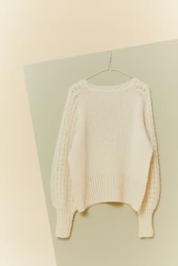 Hele genseren strikkes med to tråder. Den strikkes rundt ovenfra og ned, med mønster på hvert erme og glattstrikk på for- og bakstykket. Genseren har en tenkt bevegelsesvidde på 8 cm. –