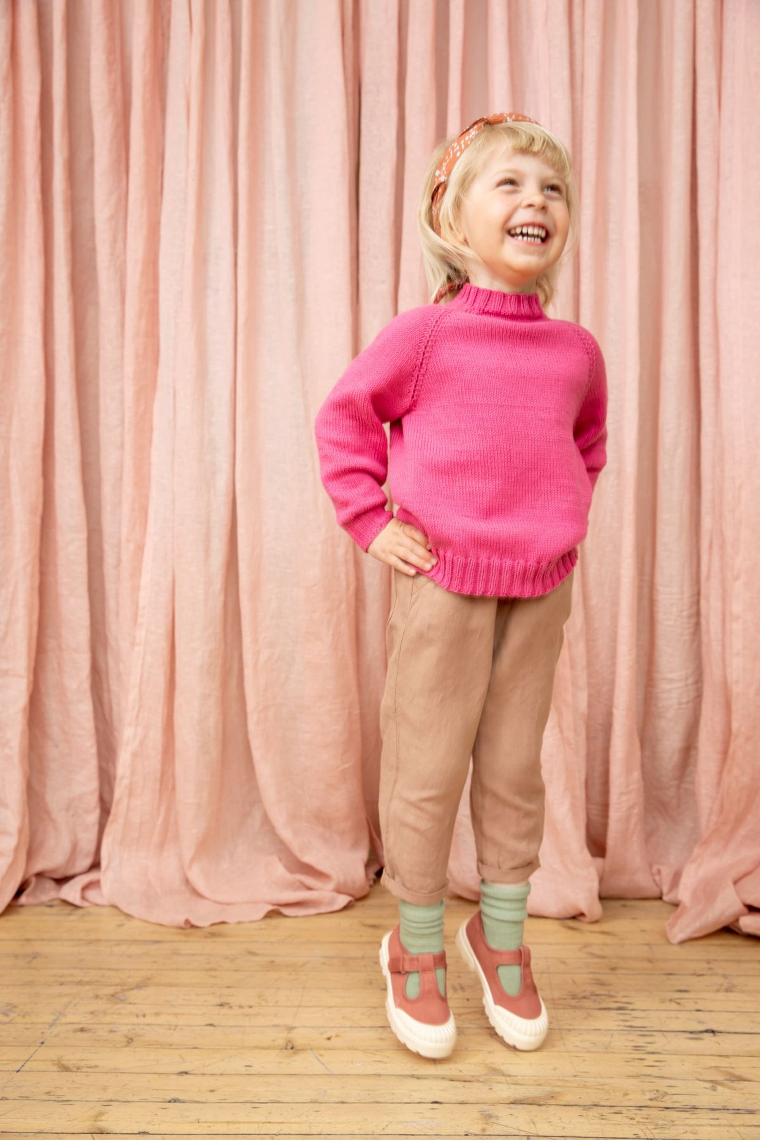 Flippergenseren er strikket i glattstrikk ovenfra og ned, med en pen raglanøkning. Den kan strikkes ensfarget eller med brede striper. Genseren har en liten halsringning foran som følge av vendepinner bak. Den har en tenkt bevegelsesvidde på 8 cm.