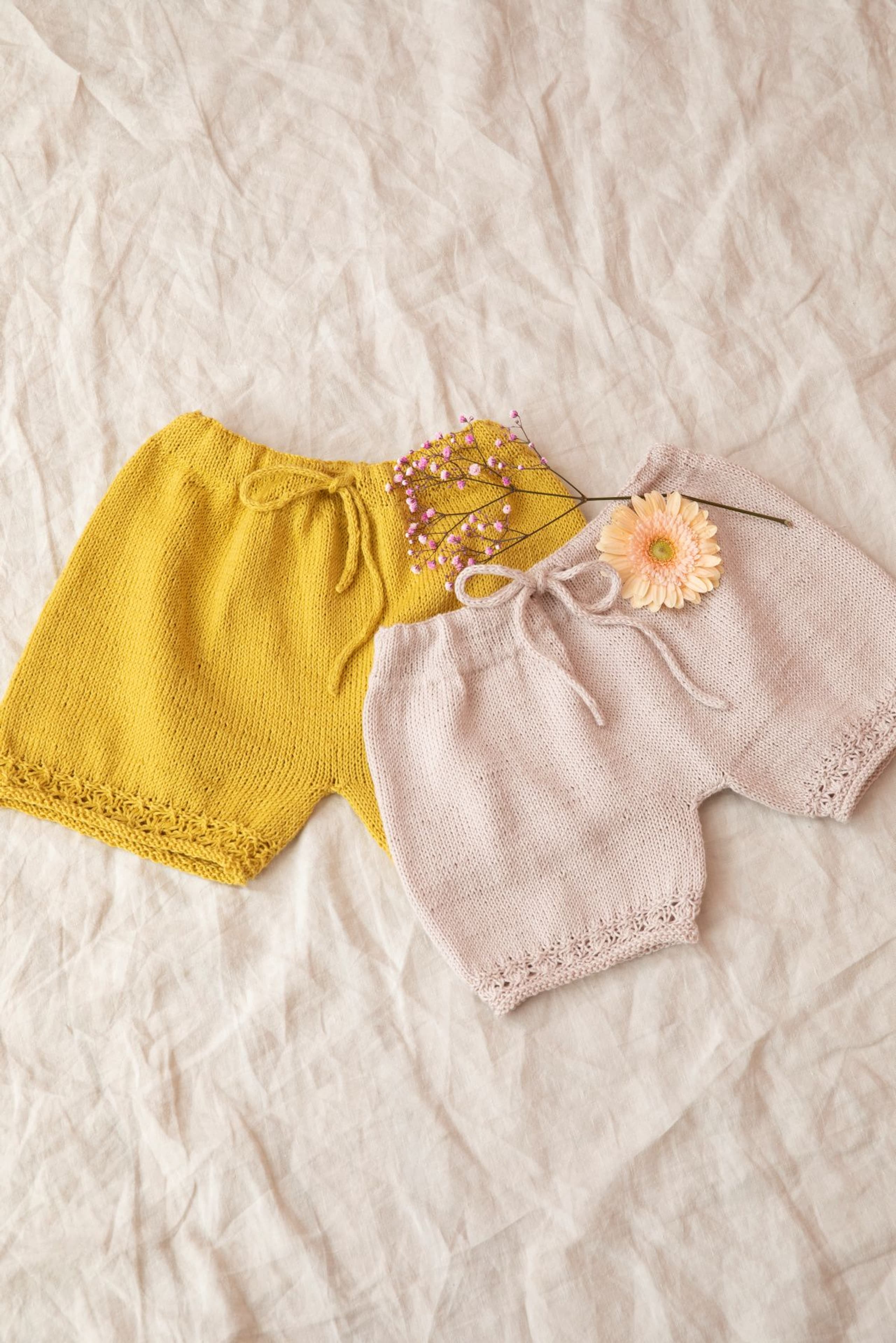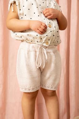 Ballongshortsen er en glattstrikket vid modell med en søt «blondekant» nederst på hvert ben. Den er strikket høyere bak. Shortsen er strikket ovenfra og ned, benlengden kan derfor strikkes lengre eller kortere. Det strikkes en knytesnor til løpe- gangen i livet.