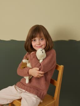Vennegenseren er designet for at barna skal kunne ha lik genser som sine gode ullete venner, Bærit og Bærling! Genseren strikkes ovenfra og ned med raglanøkninger. Passformen har litt bevegelsesvidde og en høy hals som brettes ned. Alle vrangbordene strikkes i dobbel ribb. Bolen er rett i fasongen og ermene har fellinger nedover mot håndleddet.