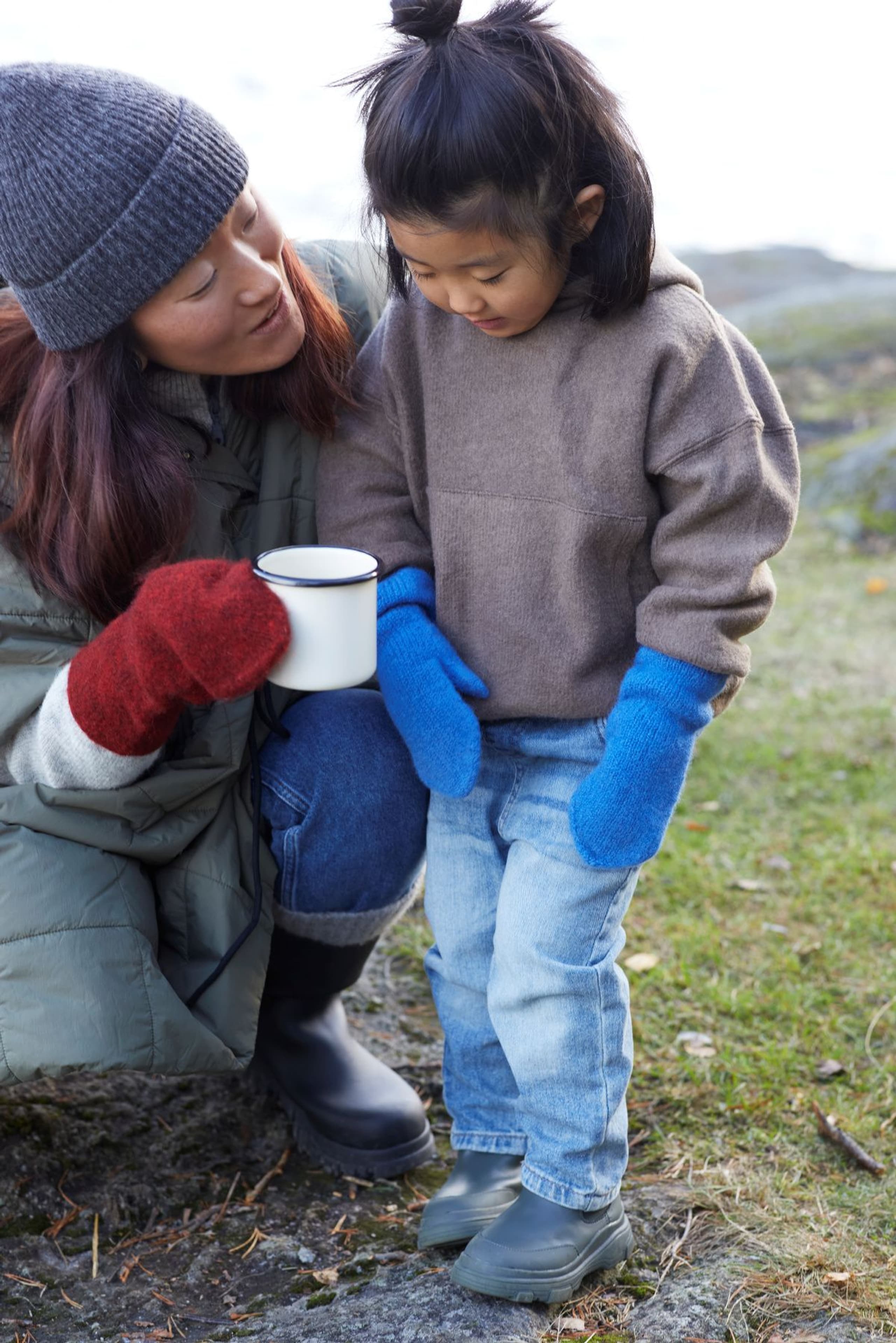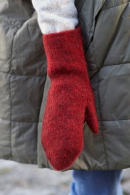 Disse tovede turvottene egner seg godt til turbruk både i barnehagen, skogen eller på fjellet. De strikkes rundt i glattstrikk, fra skaftet og ned, tommelen strikkes på til slutt. Lengde kan lett tilpasses brukerens hånd ved å strikke den lenger før fellingen. Når votten er strikket ferdig skal den toves på 40 grader i maskin. Da blir de tettere og varmere. God tur!