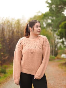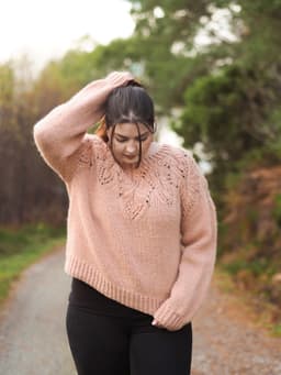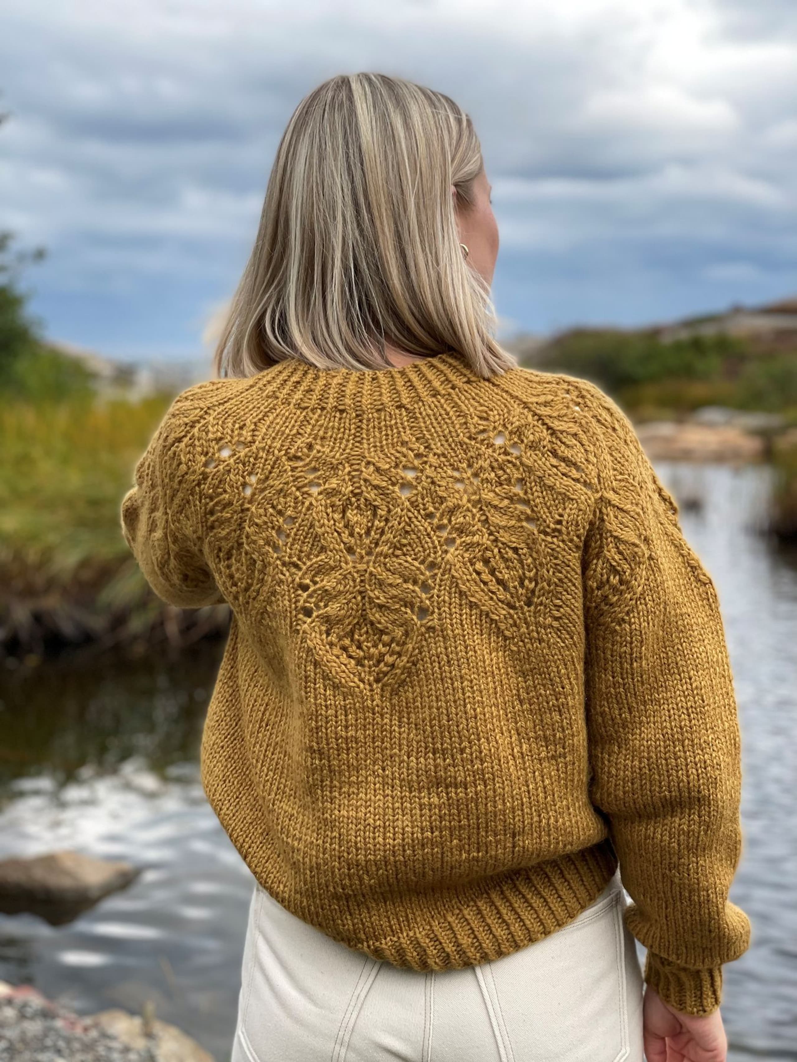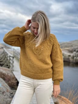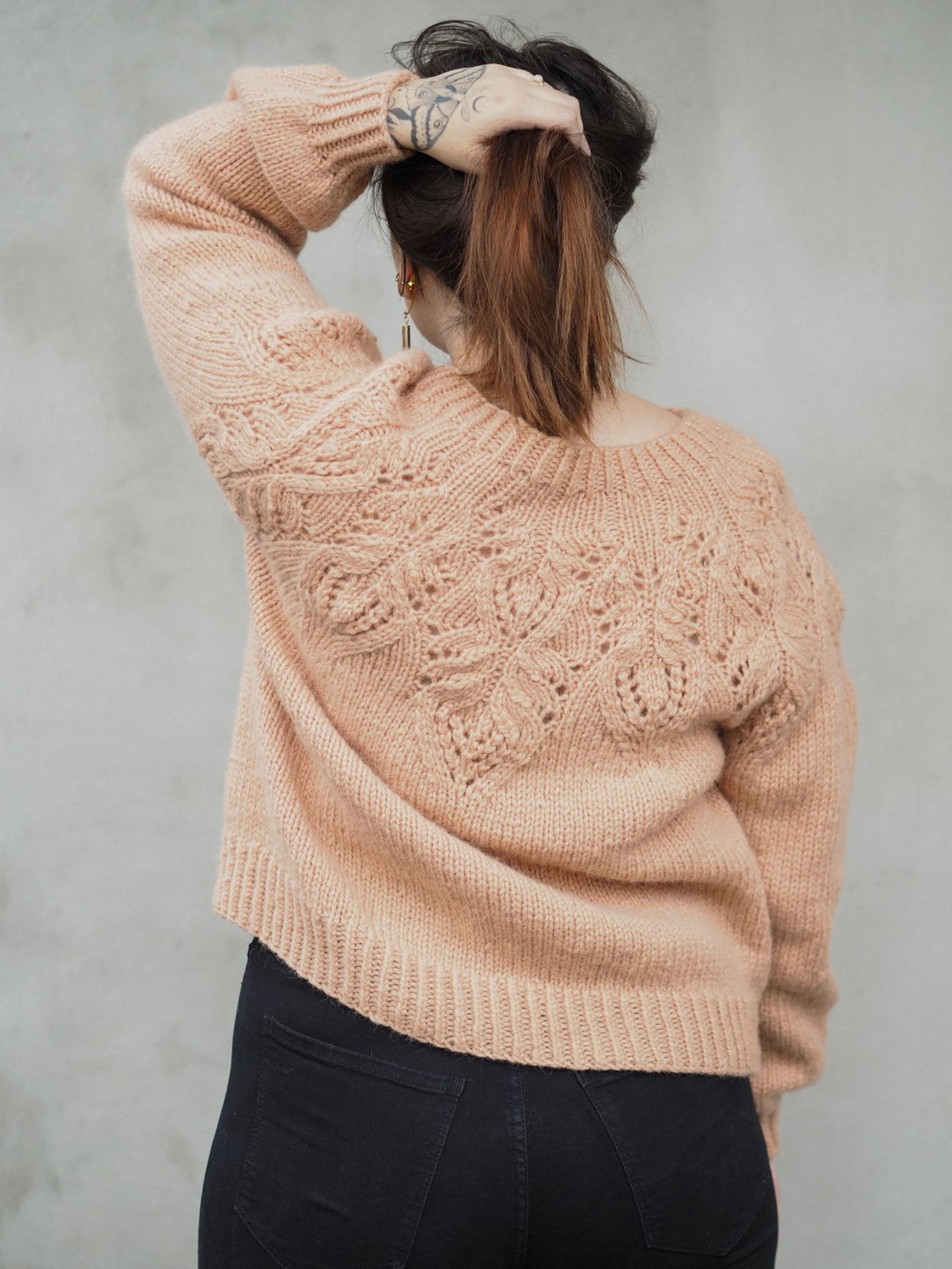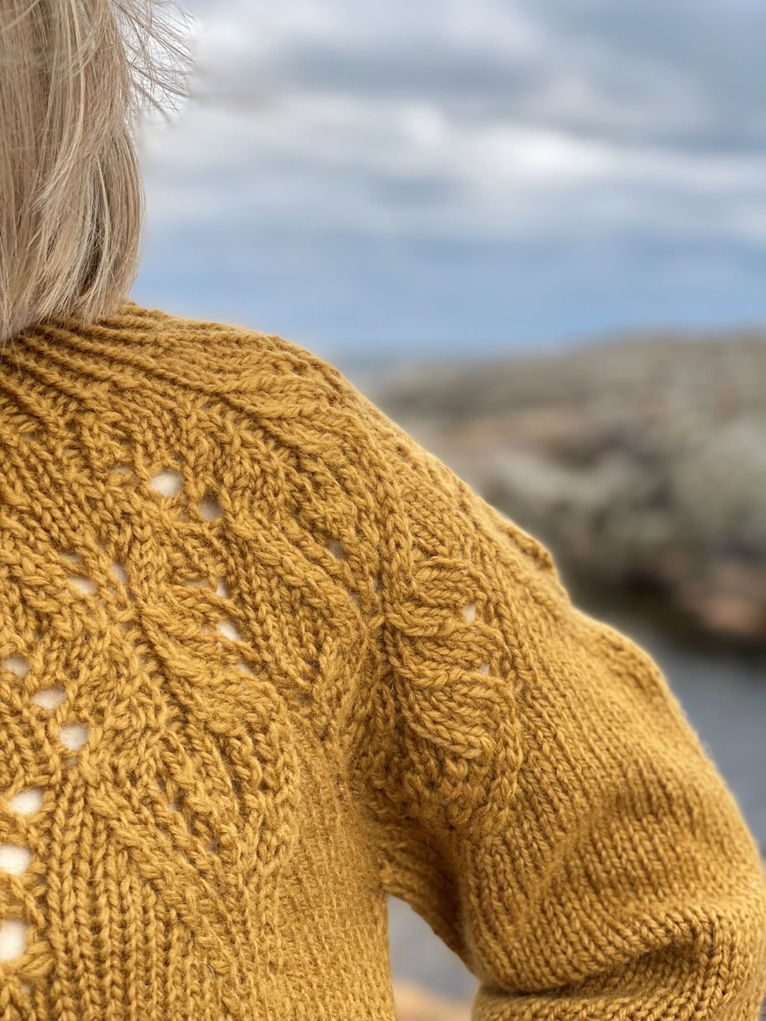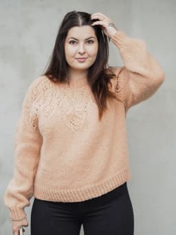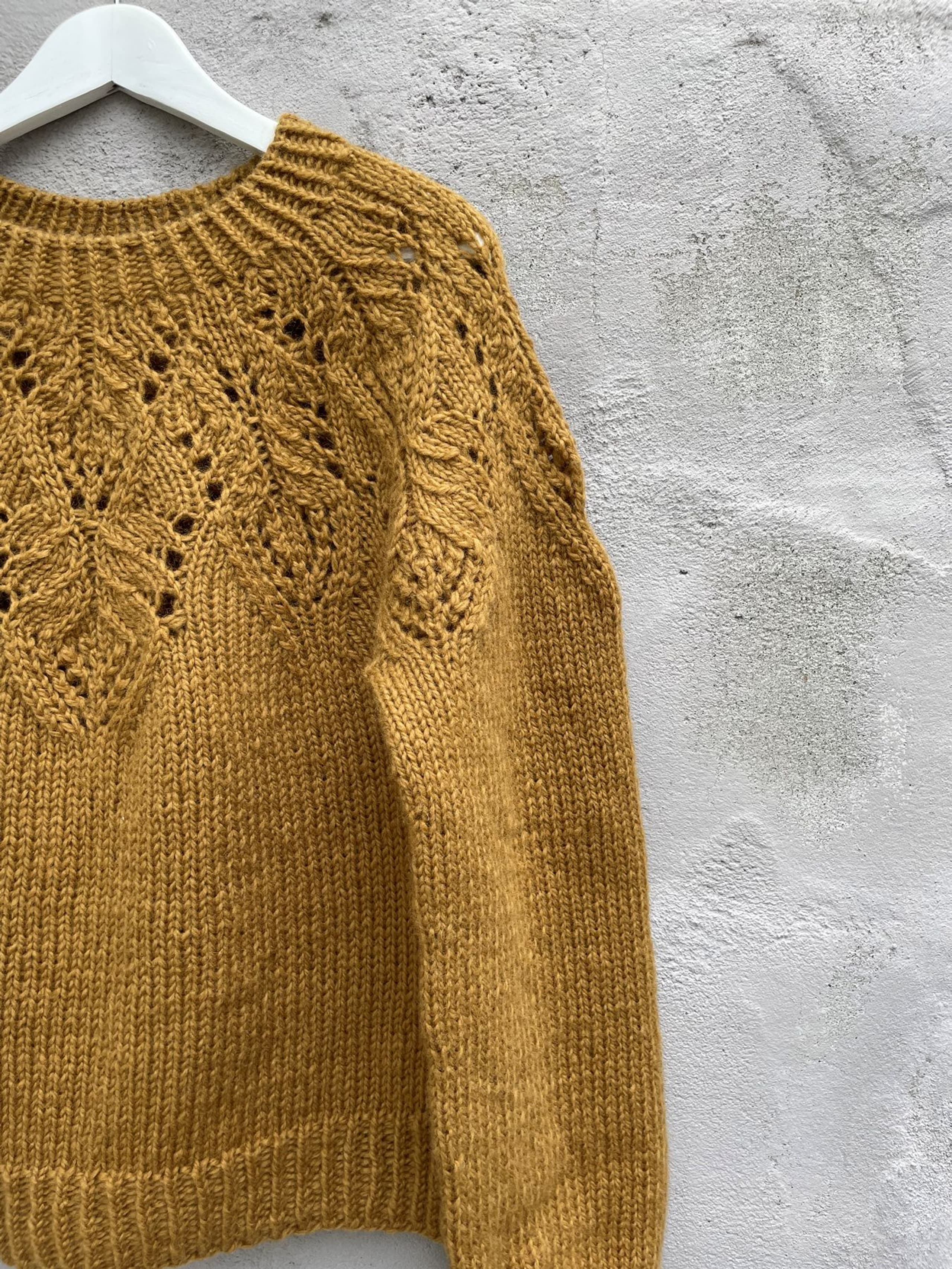 Villblomstgenseren strikkes nedenfra og opp med en nydelig hullmønstret rundfelling. Kantene er strikket med vridde rettmasker for et mer definert uttrykk. Utringningen formes med vendepinner. Genseren har en bevegelsesvidde på ca 6-14 cm. Det kan være litt utfordrende å holde tunga rett i munnen gjennom diagrammet. Sett gjerne inn en maskemarkør mellom hver rapport, så blir det lettere å følge med på hvor du er i mønsteret, og da går det nok som en dans på villblomster! **Kjøp magasinet uten garn her:** [Fremstrikk](https://www.raumagarn.no/produkt/tilbehor/fremstrikk)