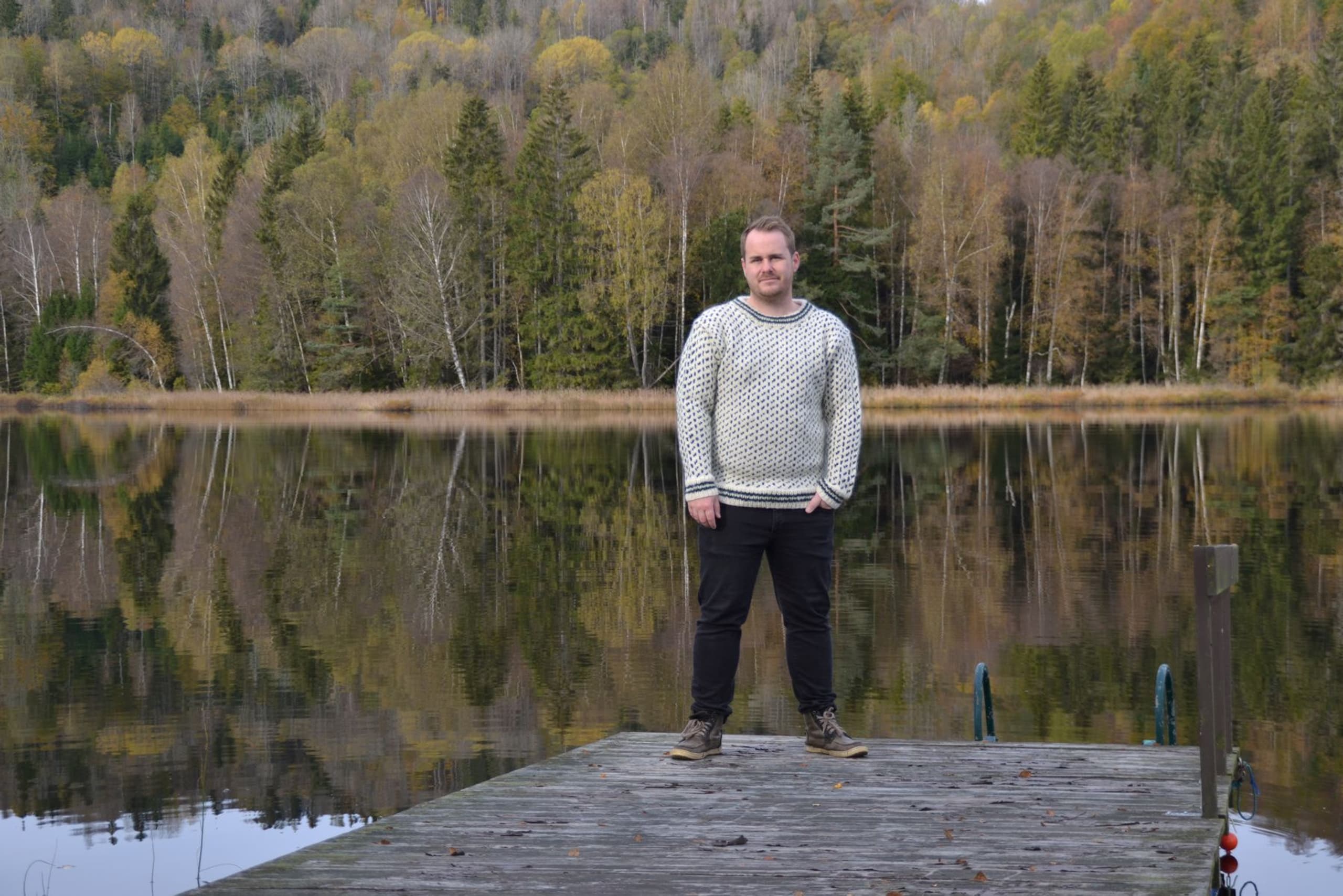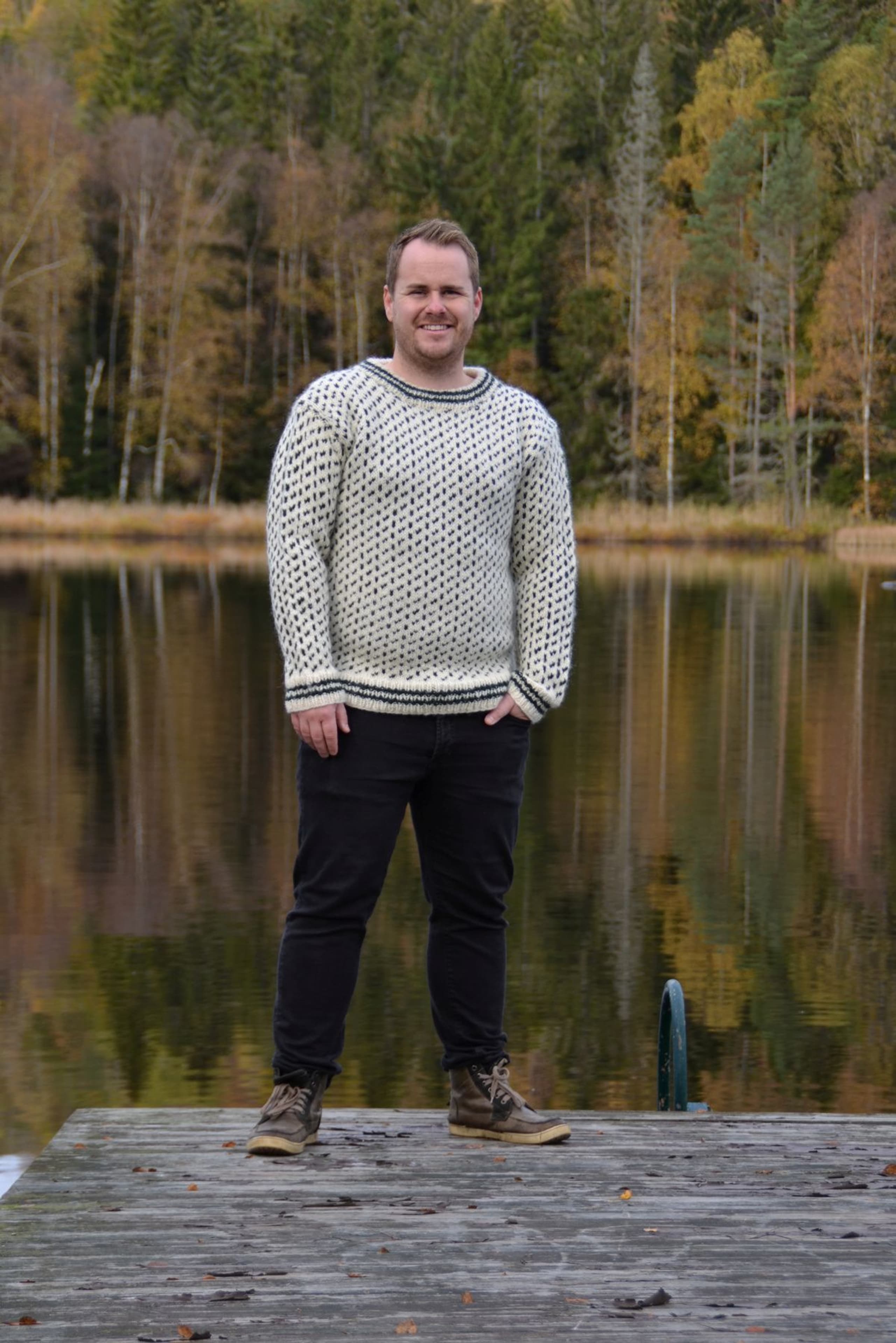 Denne genseren blir du aldri lei! Islenderen er en klassisk genser med mønster i to farger. Genseren har rett fasong, isydde ermer og ribbestrikkede kanter med striper. Halskanten plukkes opp til slutt og brettes dobbel innover. Den strikkes nedenfra og opp. **Kjøp magasinet uten garn her:** [Fremstrikk](https://www.raumagarn.no/produkt/tilbehor/fremstrikk)
