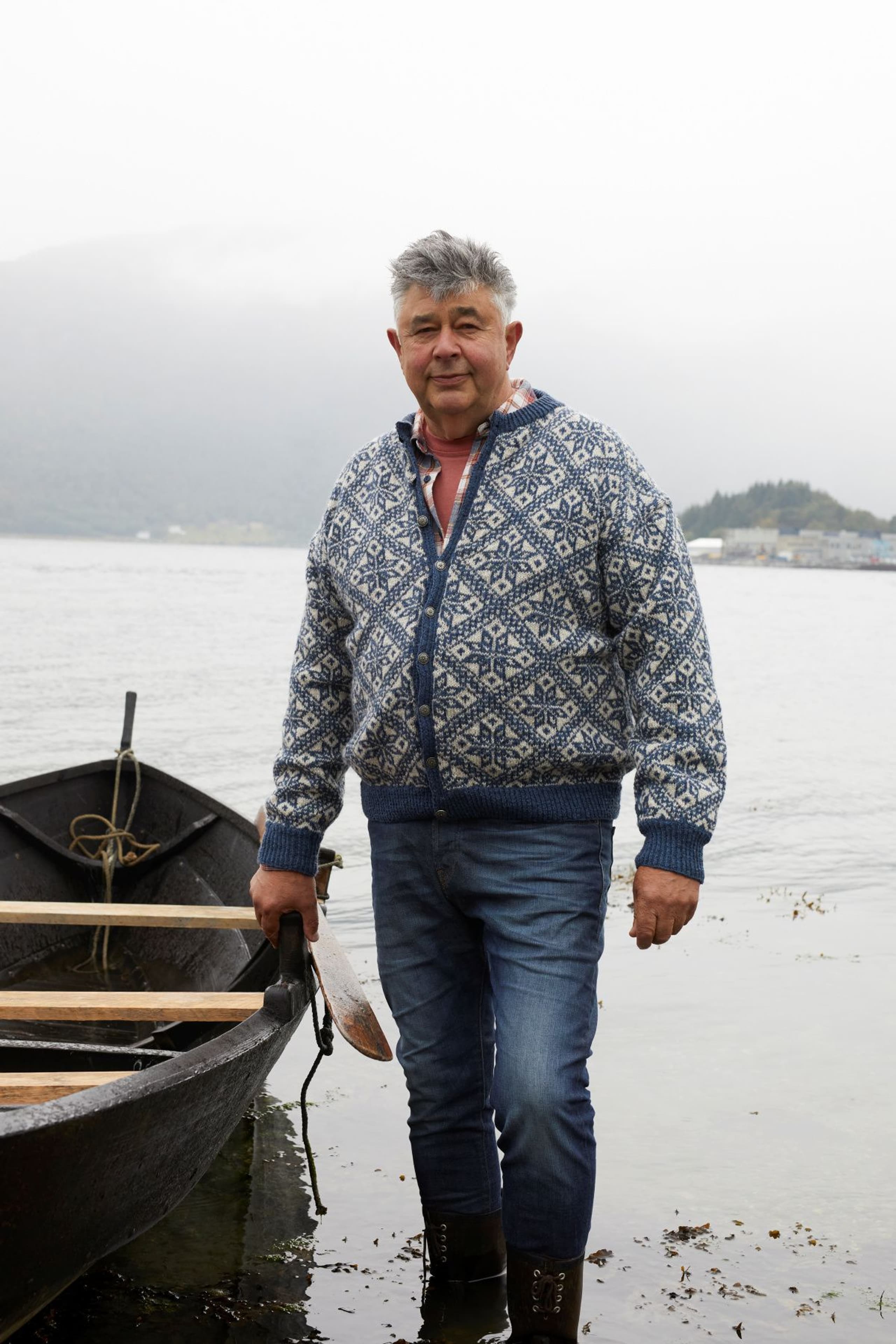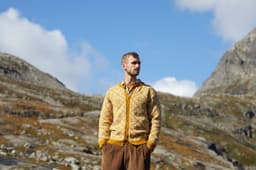 Fjelljakken er et design fra arkivet på Rauma Ullvarefabrikk. Den har et vakkert mønster med store mønsterrapporter. Originaloppskriften fantes bare i 1 størrelse, men vi har gradert jakken i flere størrelser. På grunn av de store mønsterrapportene har vi gradert ved å variere strikkefastheten istedenfor masketallet. Sjekk din størrelse og vær nøye med å sjekke strikkefastheten din! Jakken strikkes rundt nedenfra og opp. Den sys og klippes opp foran, til ermehull og halsutringning. Vrangbordene strikkes med vridde rette masker for et mer definert uttrykk. Jakken er konstruert slik at mønsteret på for- og bakstykke passer i hverandre oppå skulderen, og mønsteret på ermet passer inn i mønsteret i ermeåpningen.