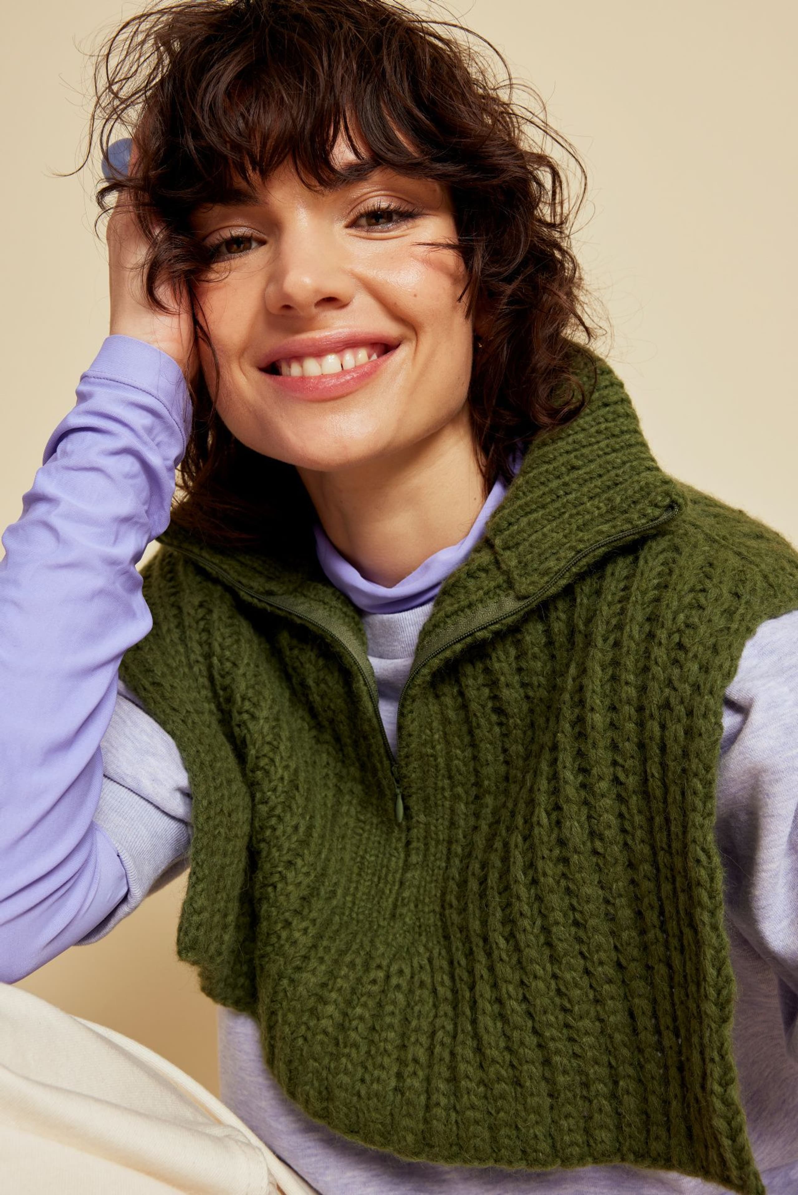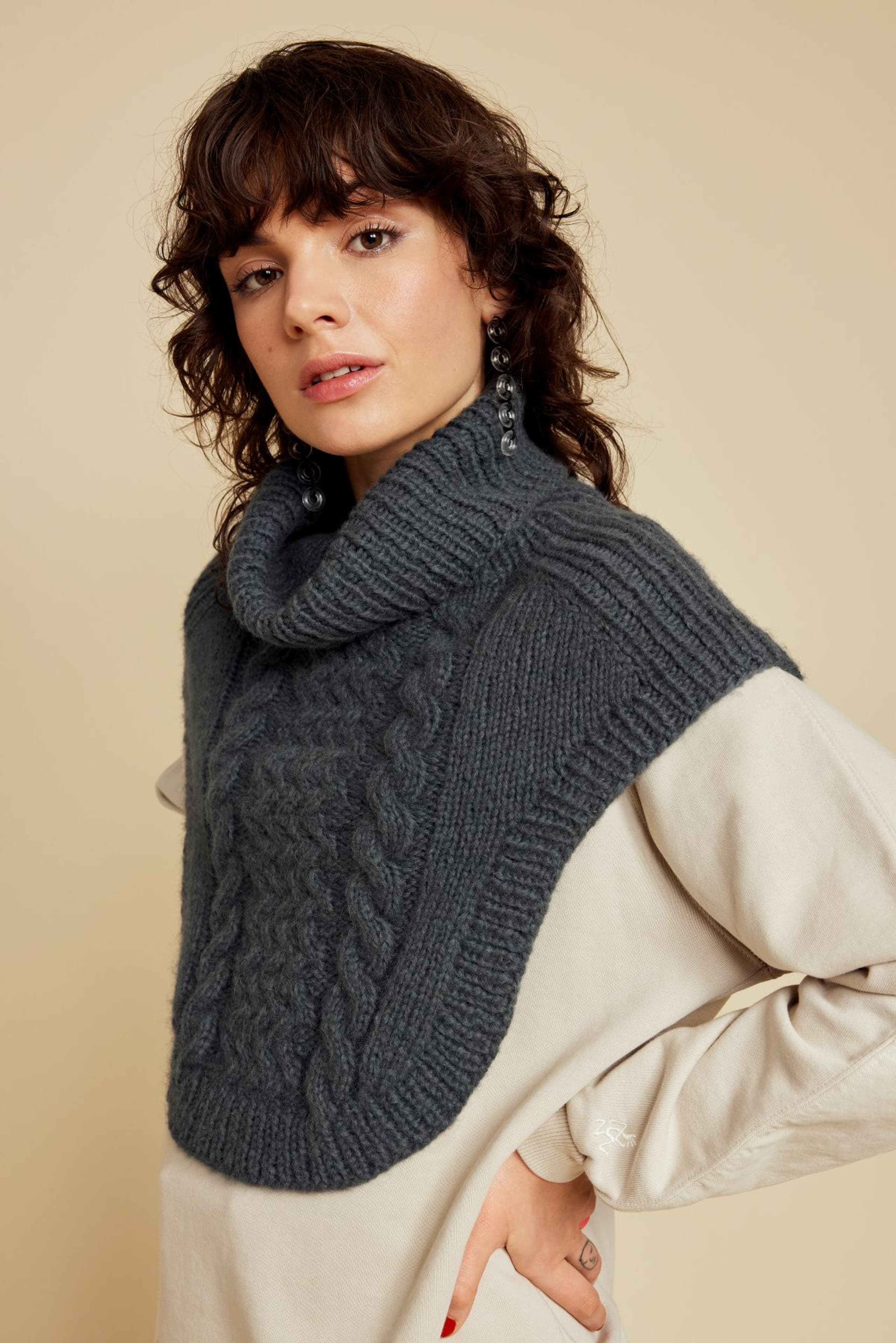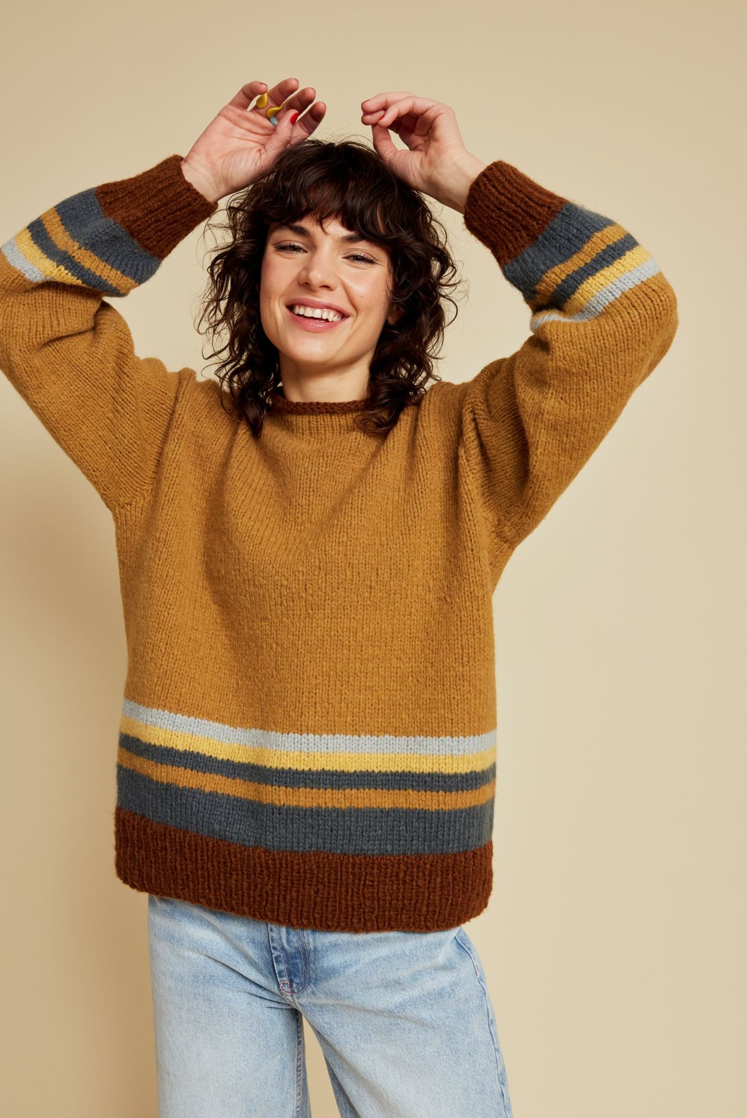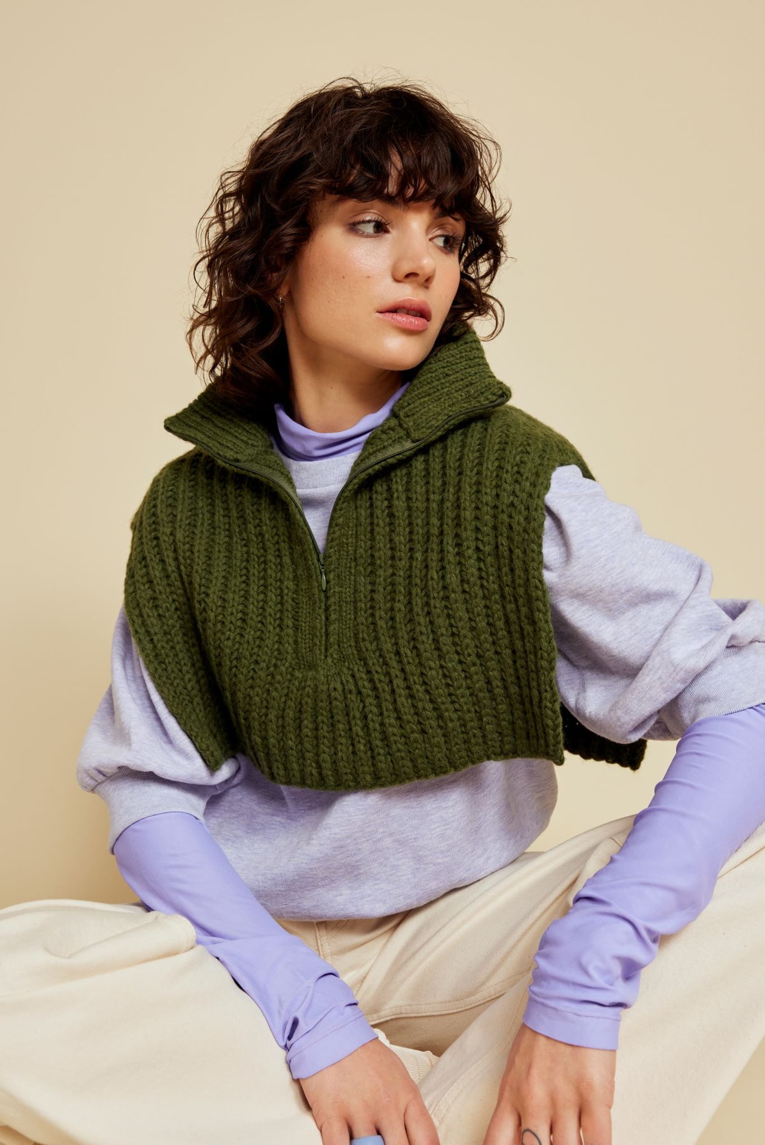 Genseren er strikket nedenfra og opp, med mønster midt foran. Den har glattstrikkede ermer med bred raglan, brede ribbekanter og dobbel hals. Genseren har en tenkt bevegelsesvidde på 8 cm.