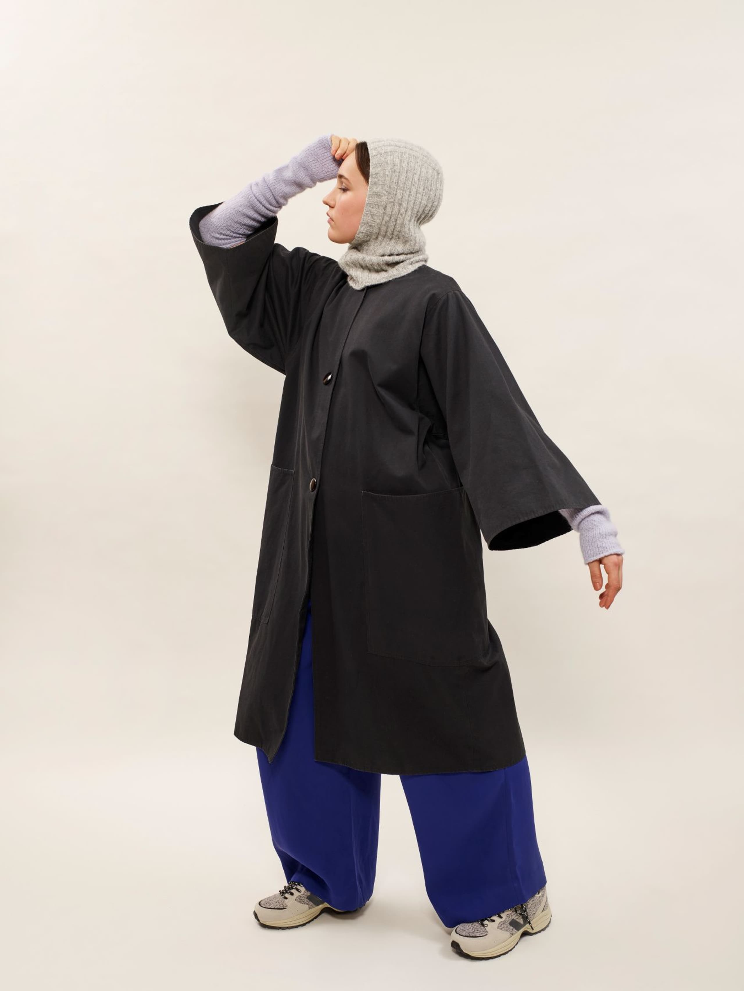 Puno Petit er utgående. Viola balaclava strikkes ovenfra og ned i ribbestrikk. Først strikkes hodestykket, deretter plukkes masker opp langs sidene av hodestykket og så strikkes det frem og tilbake nedover. Det legges opp nye masker under haken og så strikkes halsen rundt. Kanten rundt åpningen plukkes opp til slutt og strikkes rundt i ribbestrikk.