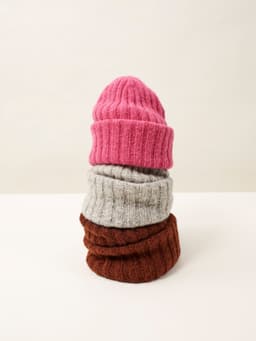 Puno Petit er utgående. Viola lue og votter er enkle tilbehør i ribbestrikk og glattstrikk. Begge er gode prosjekt for nybegynneren. Viola ribbelue strikkes i ribbestrikk. Den har en bred dobbel oppbrett og en firedelt felling på toppen. Viola votter strikkes i glattstrikk. De har kiletommel og ribbestrikket kant. Kiletommelen formes ved å øke ved 2 kile-merker. Toppen på tommel og hånd formes ved å felle i sidene. Oppskriften inneholder ribbelue og votter.