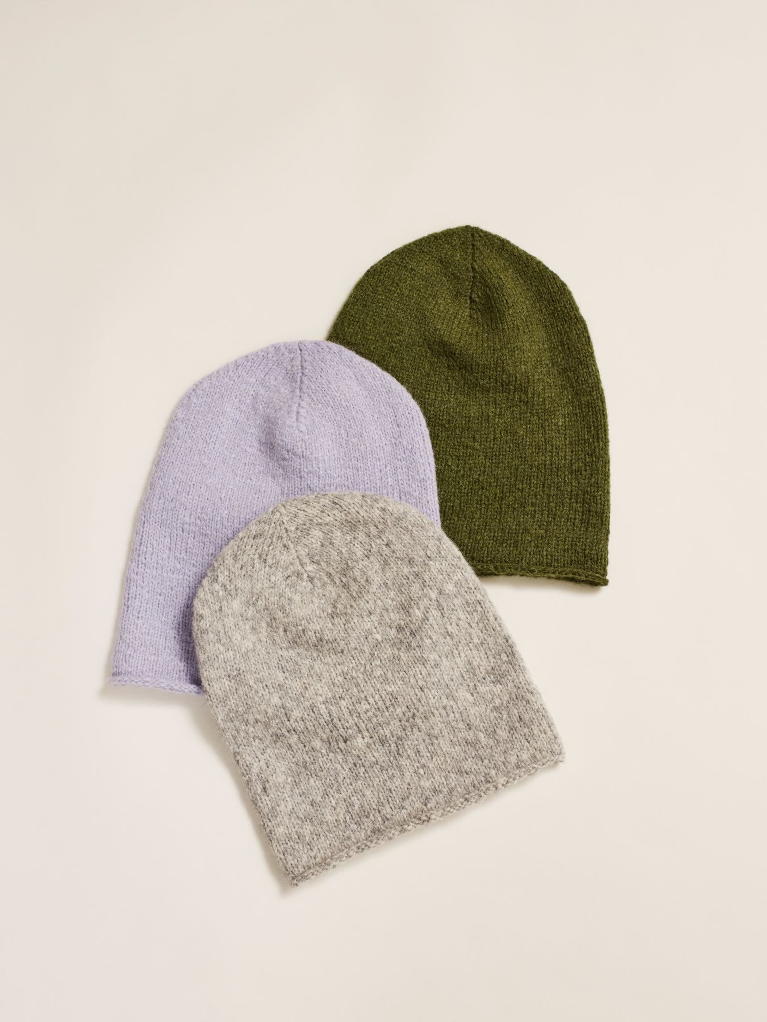 Viola lue og votter er enkle tilbehør i ribbestrikk og glattstrikk. Begge er gode prosjekt for nybegynneren. Viola ribbelue strikkes i ribbestrikk. Den har en bred dobbel oppbrett og en firedelt felling på toppen. Viola votter strikkes i glattstrikk. De har kiletommel og ribbestrikket kant. Kiletommelen formes ved å øke ved 2 kile-merker. Toppen på tommel og hånd formes ved å felle i sidene. Oppskriften inneholder ribbelue og votter.
