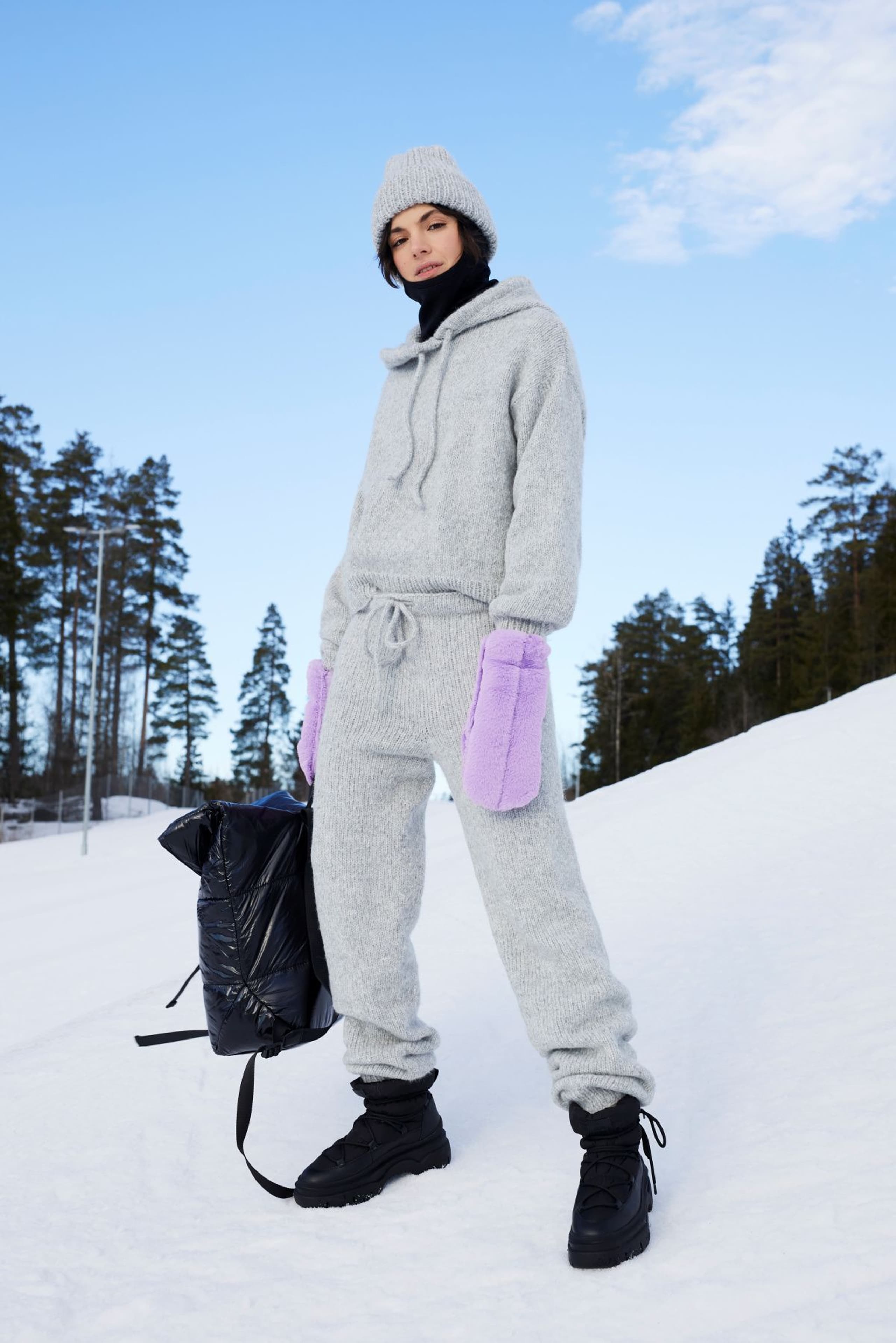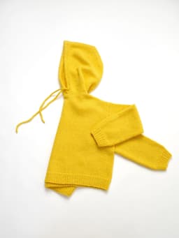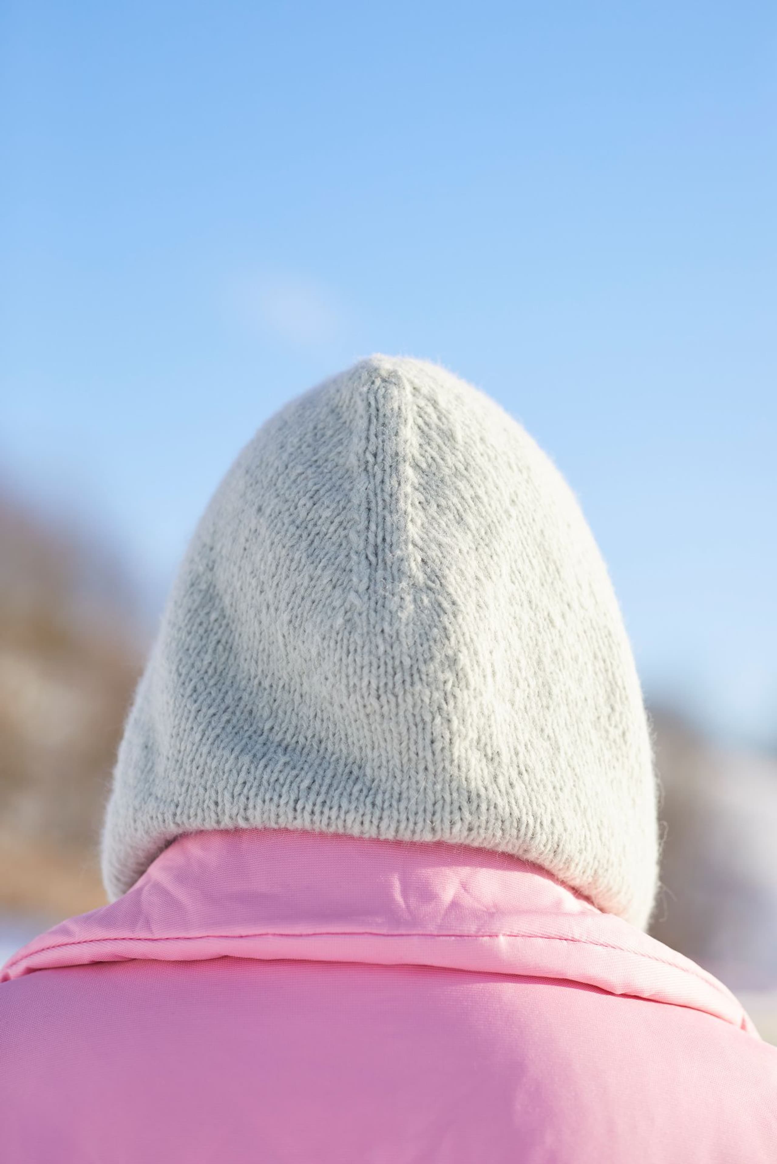 Becca hettegenser er en glattstrikket oversized genser med en stor, herlig hette. Den strikkes nedenfra og opp, med isydde ermer. Hetten strikkes på til slutt og formes ved å felle midt bak. Den har en løpegang med en strikket snor i åpningen.