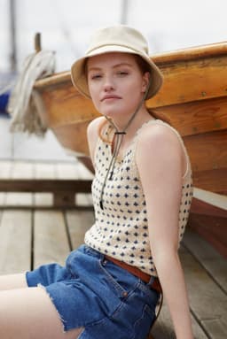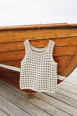 Bygetoppen er en småmønstret topp med rund hals, brede stropper og ribbestrikkede kanter. Toppen er kort og kroppsnær og den strikkes nedenfra og opp. For å få en kroppsnær fasong, strikk en størrelse som er like stor eller ned til 4 cm mindre, enn brystvidden din.