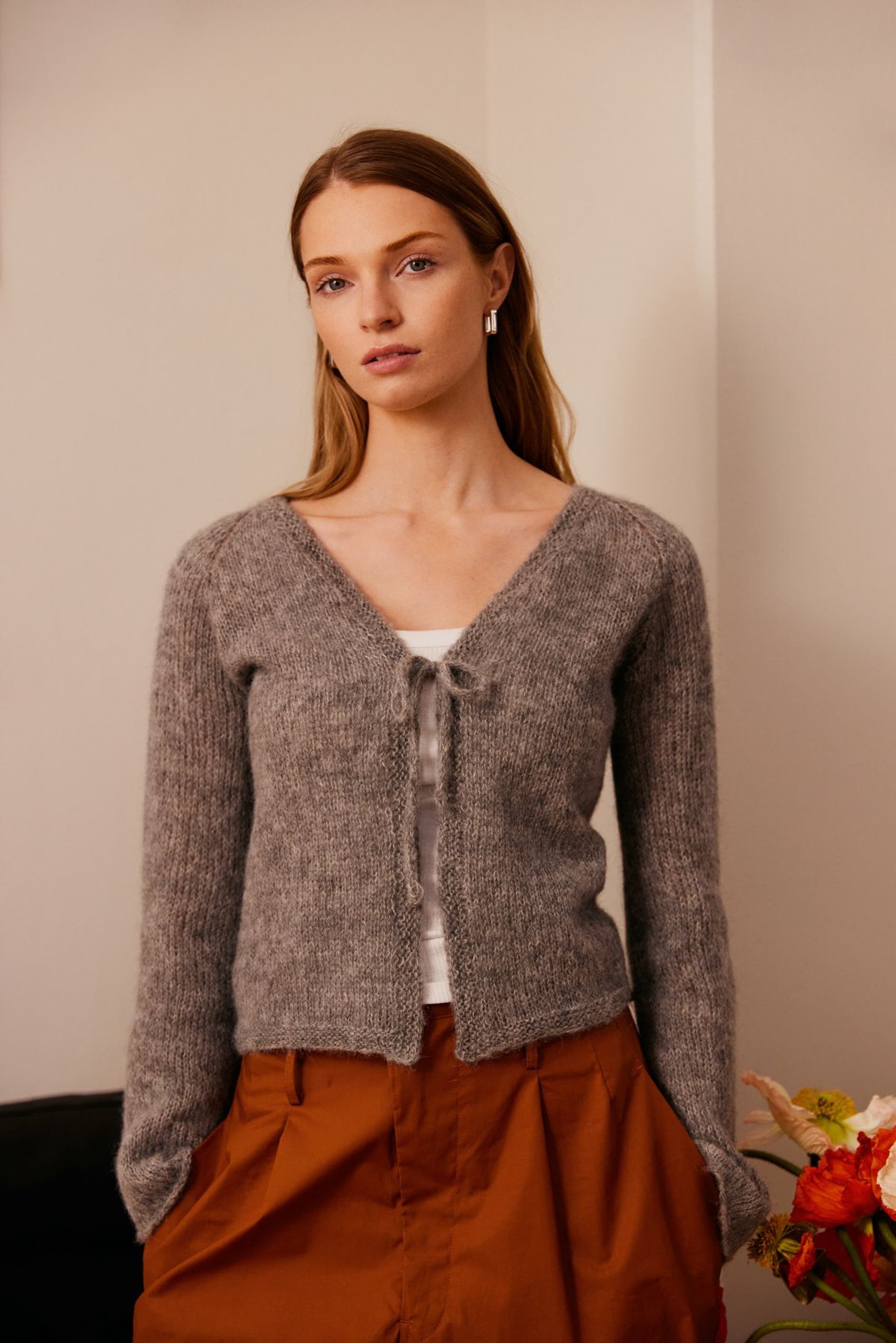 Linelle jakke er en kort glattstrikket raglanjakke med v-hals og knytesnor foran. Jakken har en kroppsnær fasong med trompetermer. Den strikkes nedenfra og opp. Langs hals- og forkant strikkes en smal rillekant, nederkantene er rå. For å få en kroppsnær fasong, velg en størrelse som har en brystvidde som er ca 4-8 cm større enn din egen.