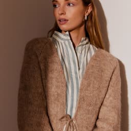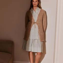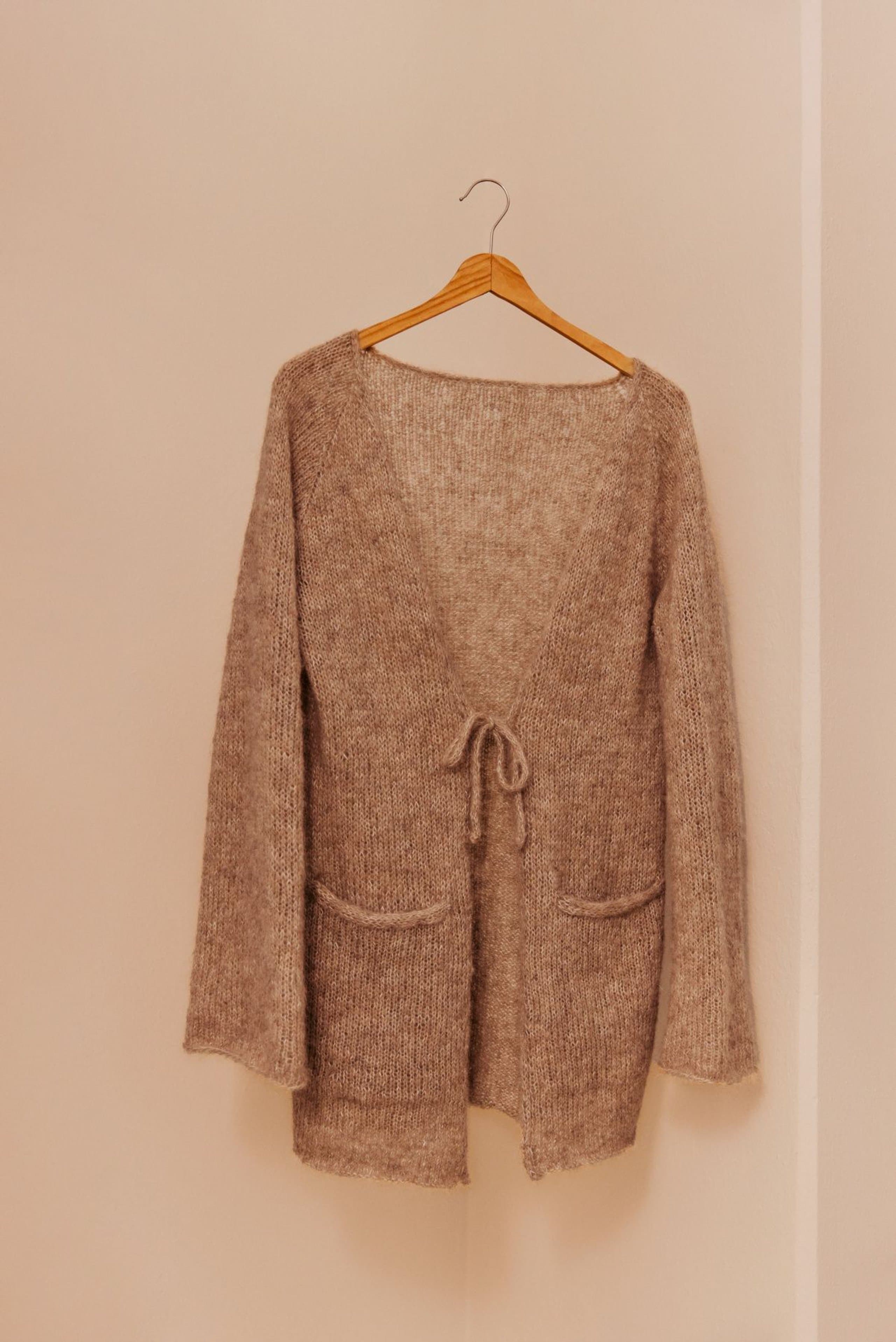 Linelle lang jakke er en lang glattstrikket jakke med strikkede snorer foran. Jakken har v-hals, raglanfelling og lommer. Den strikkes frem og tilbake, nedenfra og opp. Langs for- og halskant samt lommeåpningene strikkes en smal i-cordkant. For å få en lett og ledig fasong, velg en størrelse som har en brystvidde som er 8-12 cm større enn din egen.