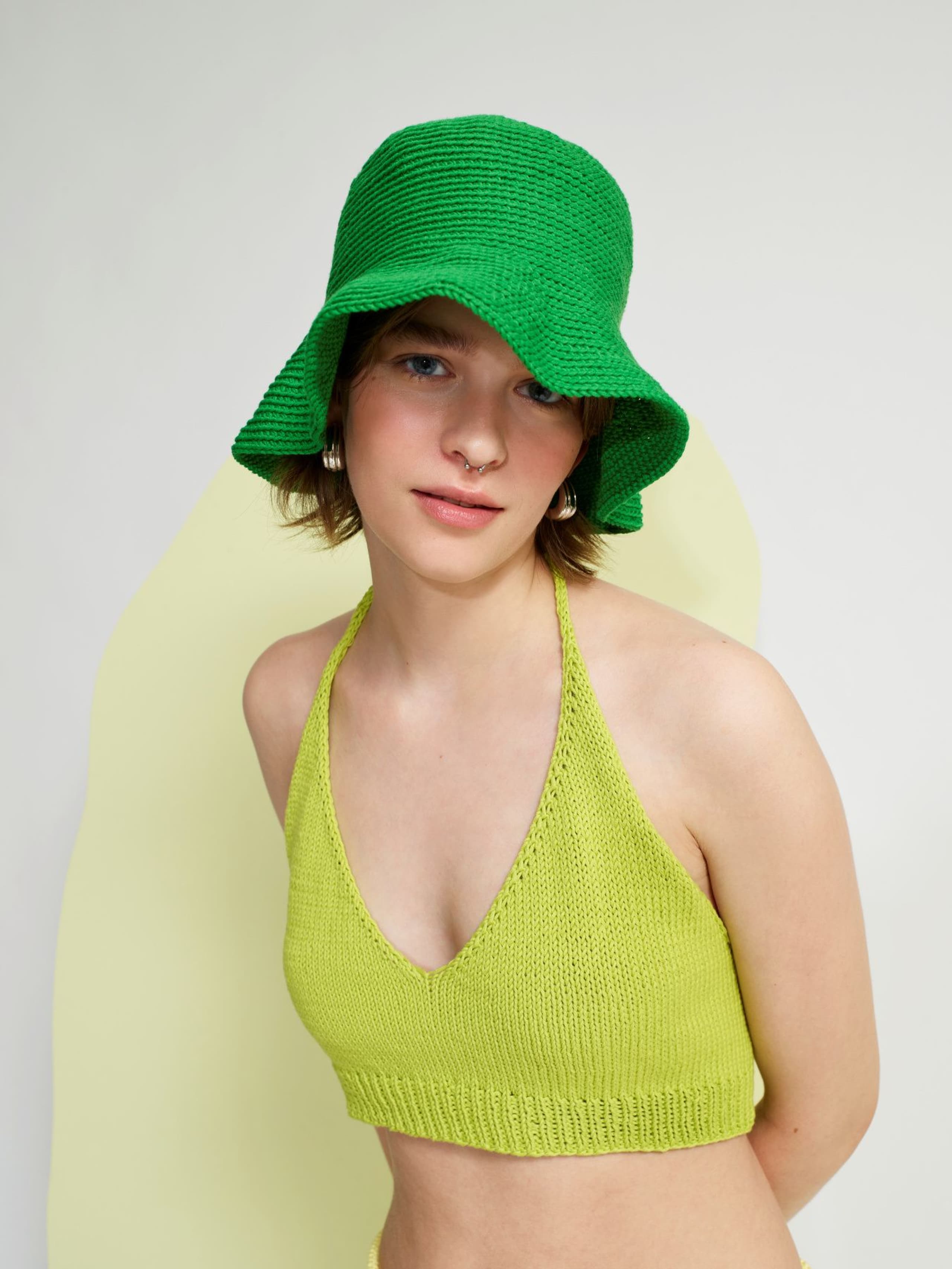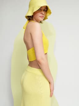 Svale knytetopp er en kort topp med knyting i nakken og åpen rygg. Den strikkes ovenfra og ned. Først strikkes knytesnorene som I-cord. Videre strikkes brystdelene hver for seg, frem og tilbake. Så settes delene inn på samme pinne og det legges opp m til bakstykket. Resten av toppen strikkes rundt med ribbestrikk på bakstykket og glattstrikk på forstykket før den avsluttes med en vrangbord. For å få en kroppsnær fasong, velg en størrelse som har en brystvidde som er noen cm mindre enn brystvidden din. Det oppgitte målet i oppskriften vil havne like under bysten – der kroppen er smalere.