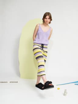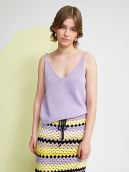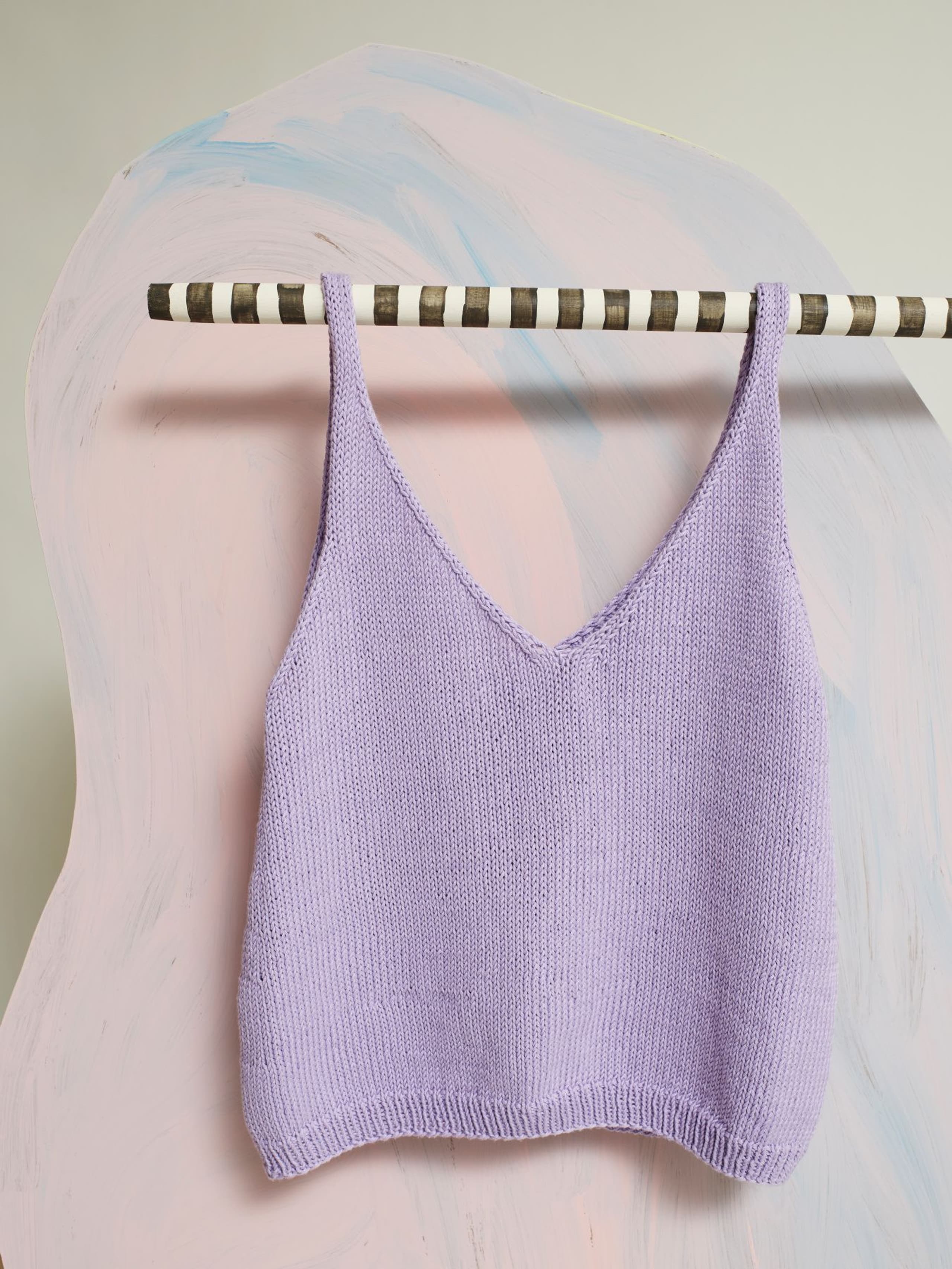 Kløver sommersinglet er en glattstrikket singlet med v-utringning både foran og bak. Singleten er tettsittende over bysten, og skråner lett ut under bysten slik at den sitter noe løsere rundt livet og hoftene. Den strikkes nedenfra og opp. Først strikkes bolen rundt og det felles i sidene. Deretter deles arbeidet i fire like deler som formes til utringning og ermehull. Til slutt sys skulderstroppene sammen med maskesting. Velg en størrelse som har en brystvidde som er like stor eller noen cm mindre enn brystvidden din.