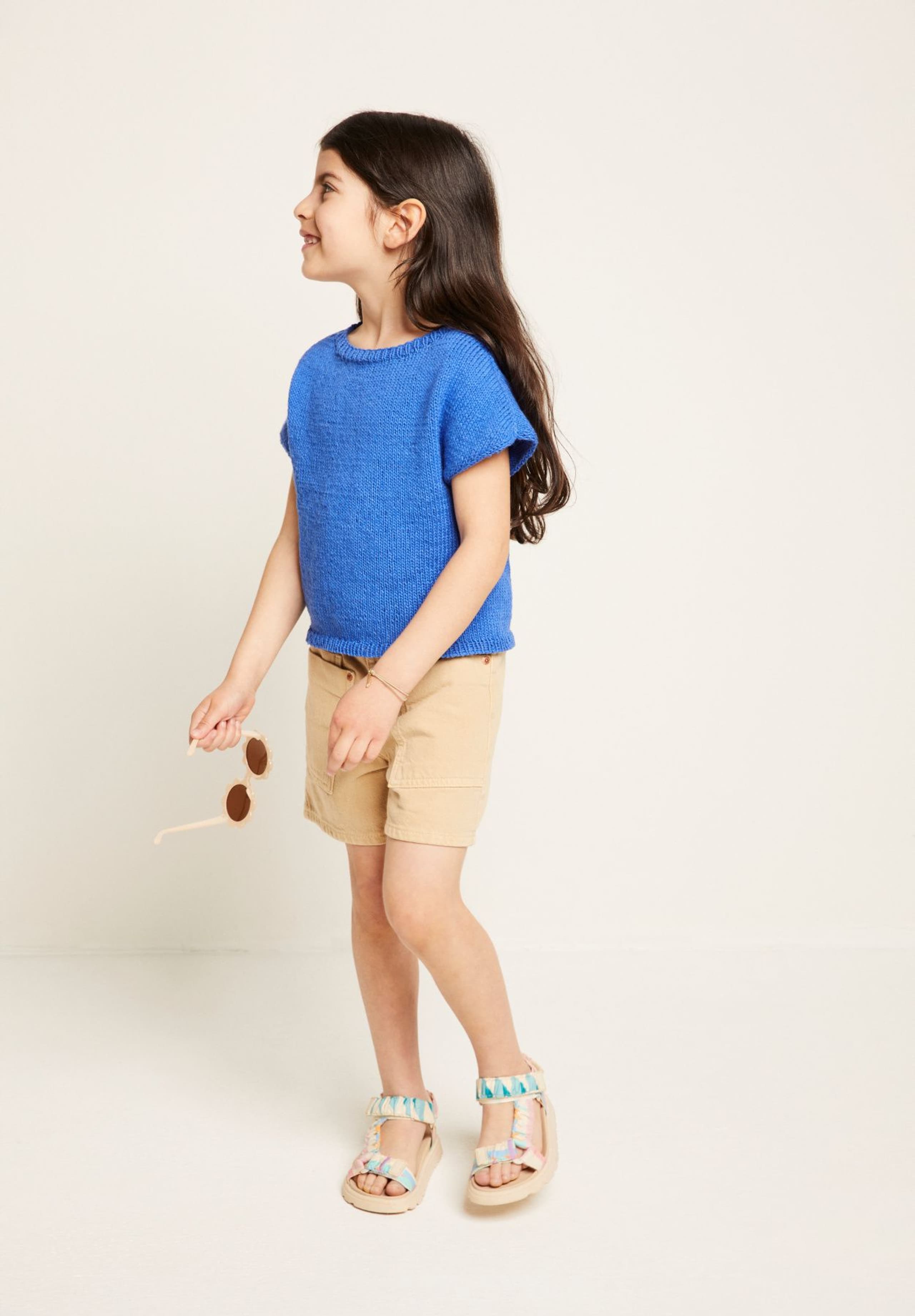 Claudinetoppen er en sommerlig glattstrikket topp med ledig flaggermusfasong. Den har brede skuldre og vid halsåpning med ribbestrikket kant. Claudinetoppen strikkes ovenfra og ned. Skuldrene formes ved å øke på hver side av en skulder-m. Bolen formes under ermehullene ved å felle på hver side av en side-m. Kanten nederst på bolen strikkes i ribbestrikk. For å få en ledig fasong, velg en størrelse som har en brystvidde som er 10 cm større enn barnets kropp.