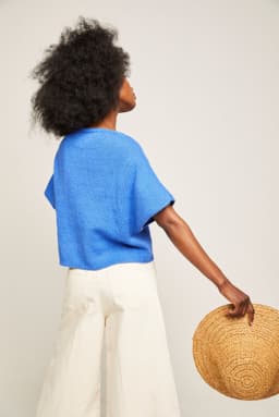 Claudinetoppen er en sommerlig glattstrikket topp med romslig flaggermusfasong. Den har brede skuldre og vid ribbestrikket halsåpning. Claudinetoppen strikkes ovenfra og ned. Skuldrene formes ved å øke på hver side av en skulder-m. Bolen formes under ermehullene ved å felle på hver side av en side-m. Kanten nederst på bolen strikkes i ribbestrikk. For å få en ledig fasong, velg en størrelse som har en brystvidde som er 14-18 cm større enn din egen.