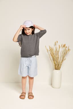 Fevengenseren er en romslig raglangenser med ½-lange ermer. Genseren strikkes ovenfra og ned i glattstrikk og med ribbestrikkede kanter. For å få en romslig fasong, velg en størrelse som har en brystvidde som er 8-16 cm større enn barnets kropp.