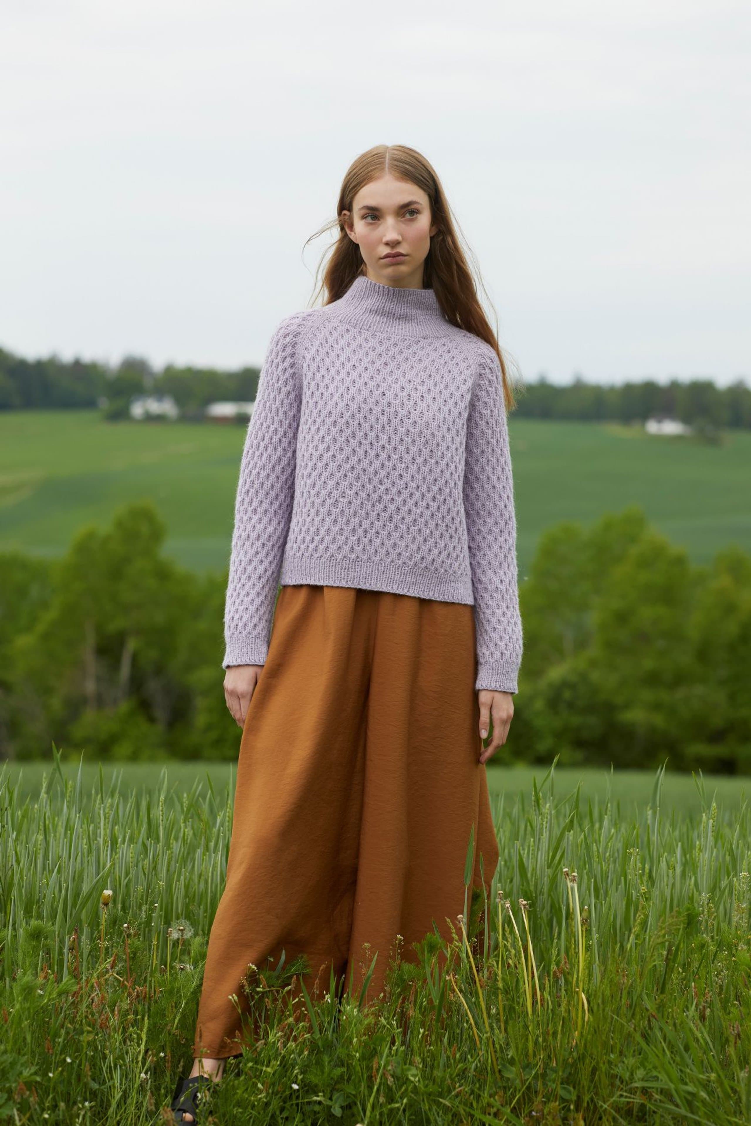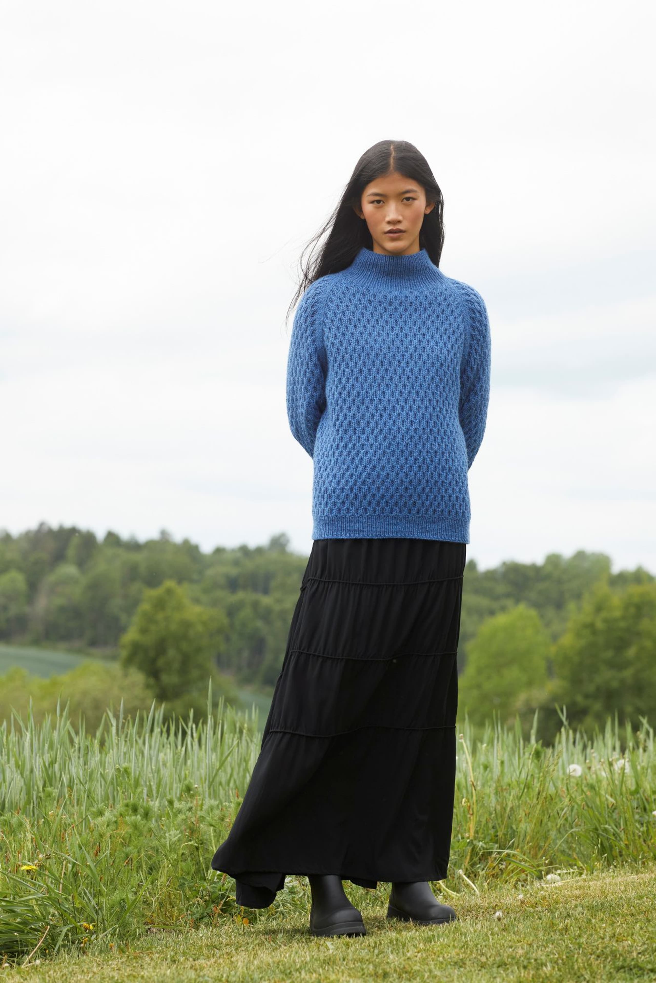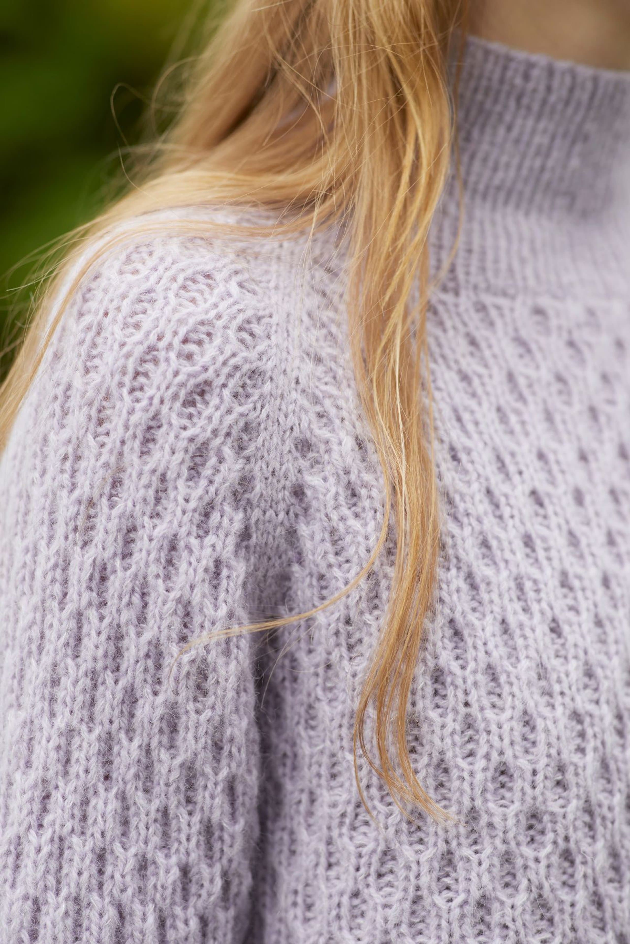 Dilon strukturgenser er en raglangenser i flettestruktur, med halvhøy hals og ribbestrikkede kanter. Den har en klassisk passform og finnes i kort og lang versjon.Genseren strikkes ovenfra og ned med 1 tråd Finull og 1 tråd Alpaca Silk. Halsringningen formes ved å strikke vendepinner, og det økes til raglan på hver side av 3 glattstrikkede m. For å få en avslappet passform, velg en størrelse som har en brystvidde som er 10- 16 cm større enn din egen.