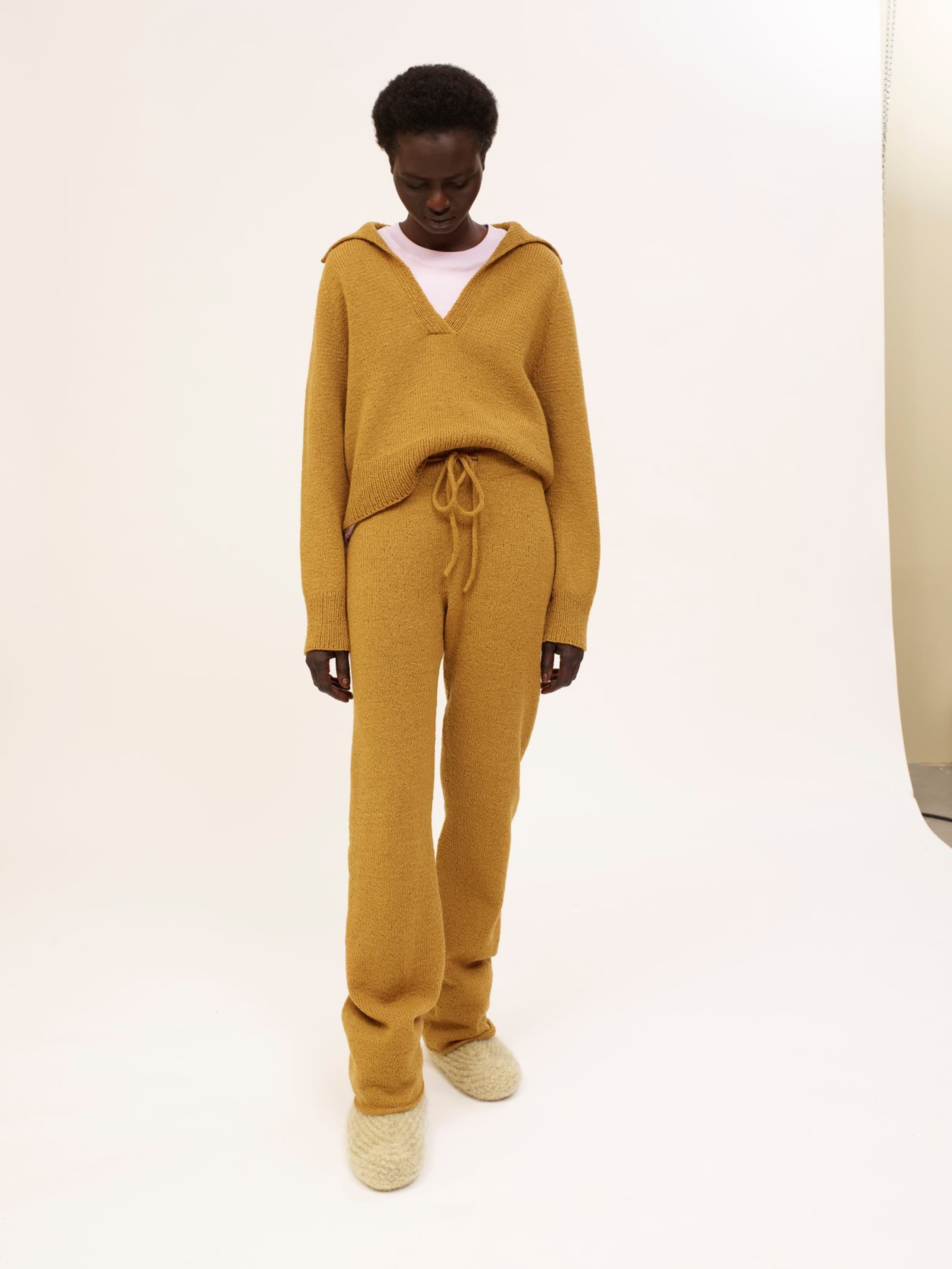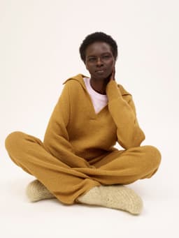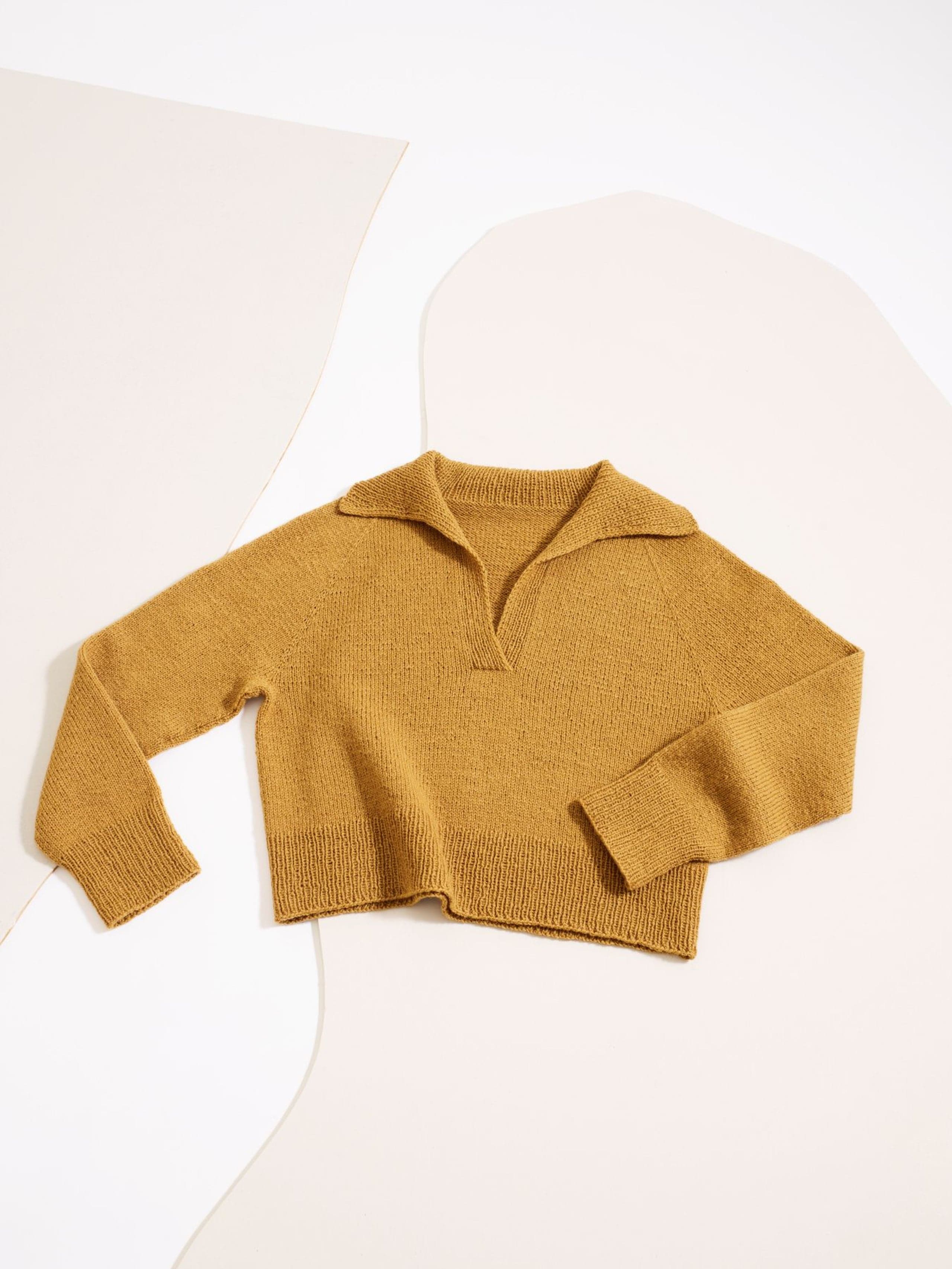 Genseren er en raglangenser med krage og splitt foran. Den strikkes ovenfra og ned. Først strikkes kragen frem og tilbake i en half-milano-ribb som gjør kragen tett og stabil. Så strikkes glattstrikk med vendepinner i halsen og økninger til raglan, frem og tilbake, til splitten er ferdig. Splitten strikkes så sammen med en overlapp. Arbeidet deles til bol og ermer og strikkes videre rundt. Genseren passer fint sammen med 422-3 Finullbukse. Fremstrikkerne kan ha gjort egne justeringer på plaggene de har strikket - som å forkorte eller forlenge ermer og bol. **Kjøp magasinet uten garn her: [422 Fremstrikk magasin](https://www.raumagarn.no/produkt/tilbehor/fremstrikk-2)**