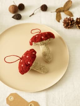 Soppen strikkes samme vei som den gror – nedenfra og opp. Den kan gjerne dekoreres med «fluer» av glassperler. Soppen gjør seg bra på juletreet eller i en julegren. Eller hva med en uro med sopper og eikeblader? Soppen fylles med ullflor.