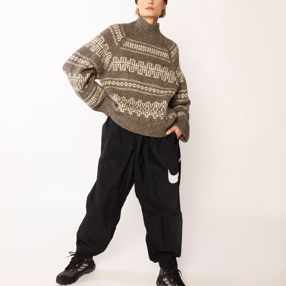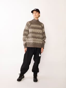 Fjære genser er mønstret i to farger. Den har en avslappet passform med raglan, rund hals og ribbestrikkede kanter. Genseren strikkes ovenfra og ned. Halsringningen formes ved å strikke vendepinner, og det økes til raglan på hver side av 3 raglan-m. For å få en oversized passform, velg en størrelse som har en brystvidde som er 20-28 cm større enn din egen. Ønsker du å skape et mer spennende uttrykk på Fjære genser, kan du strikke mønsteret med én tråd Tjukk Mohair.