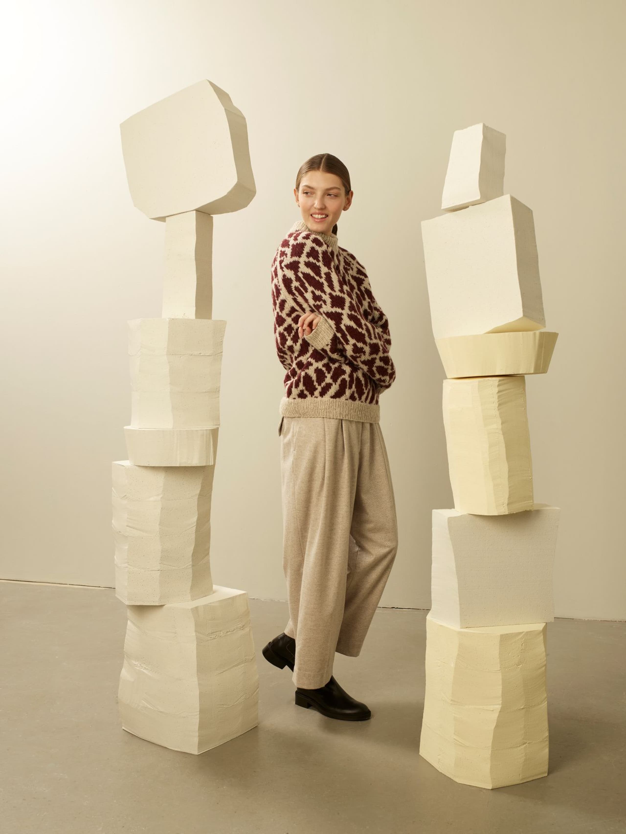 Calatheagenser er en helmønstret raglangenser med klassisk passform, rund hals og ribbestrikkede kanter. Mønsteret er artig å strikke, men også litt utfordrende siden mønsterrapporten er både stor og uregelmessig. Genseren strikkes nedenfra og opp med 1 tråd Finull sammen med 1 tråd Alpaca Silk. Først strikkes bol og ermer hver for seg, før de strikkes sammen oppover med raglanfelling. På grunn av den store mønsterrapporten finnes oppskriften kun i fire størrelser. For å få en klassisk passform, velg en størrelse som har en brystvidde som er 6-10 cm større enn din egen.
