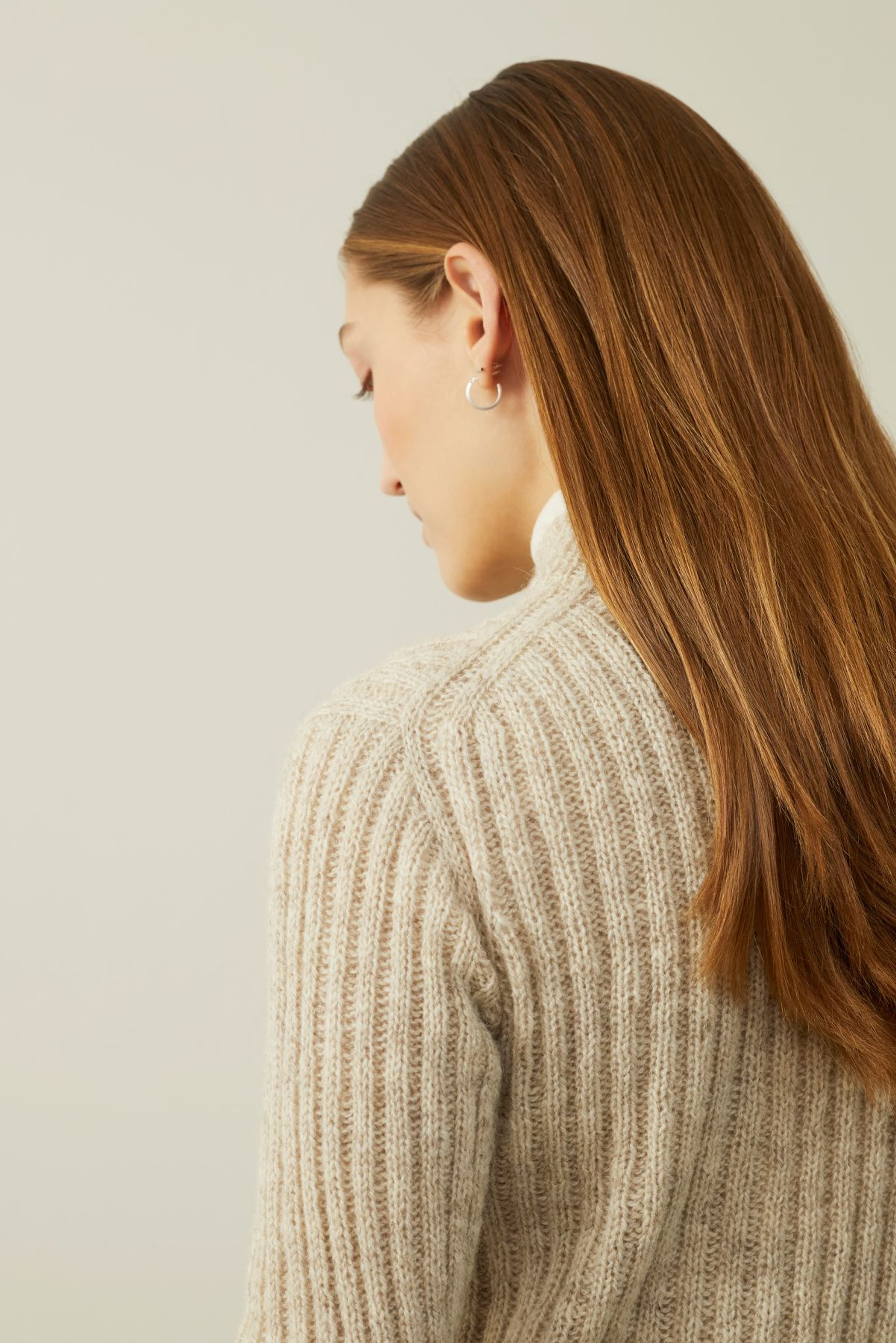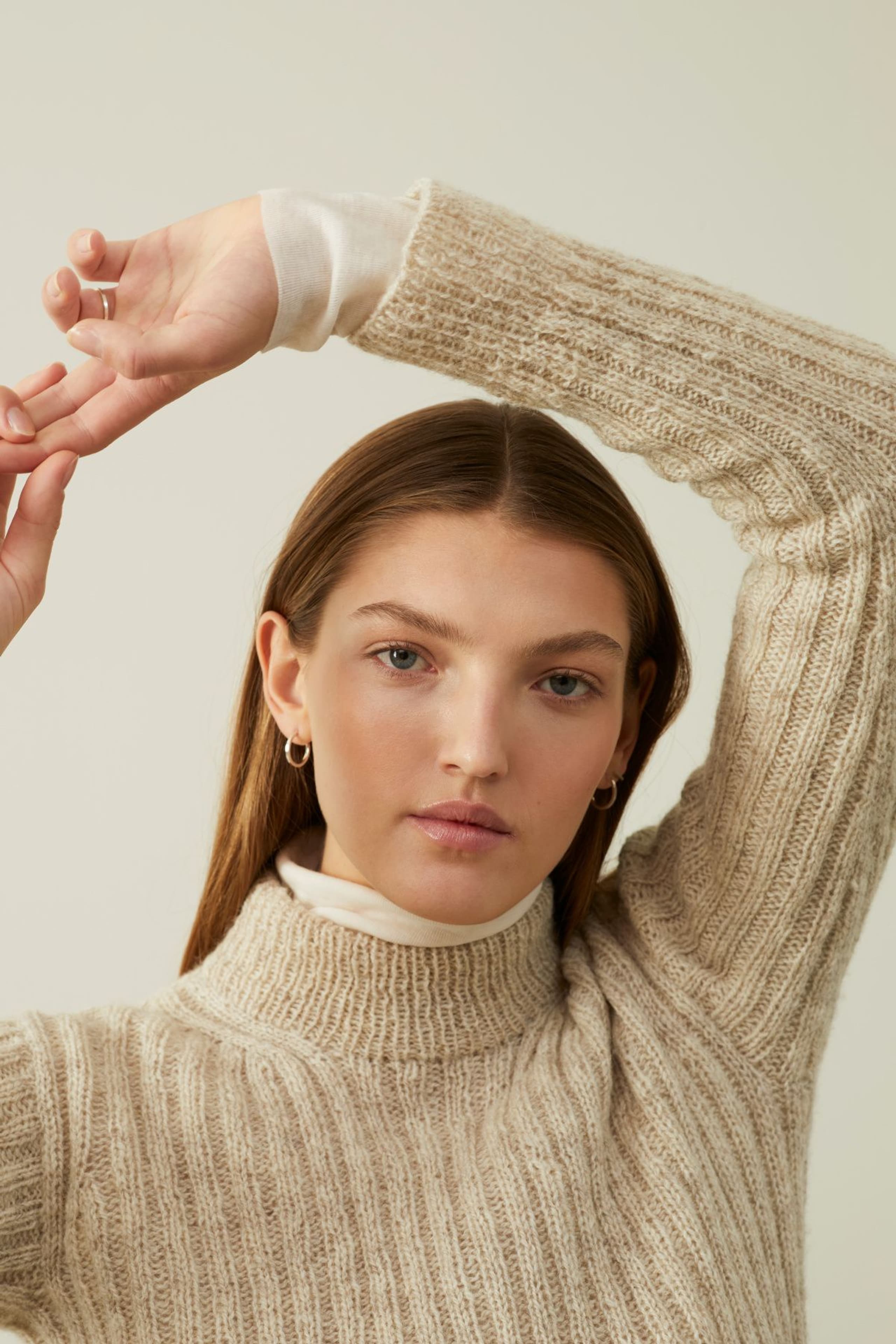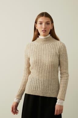 Trane er en ribbestrikket genser som strikkes ovenfra og ned. Først strikkes bakstykket frem og tilbake mens det økes til skrå skuldre. Deretter strikkes masker opp langs skuldrene og hvert forstykke strikkes for seg med økinger til hals. Det legges opp m midt foran og forstykkene strikkes så videre samlet. Under ermene samles maskene på samme pinne, bolen strikkes rundt og avsluttes med vrangbord. Det plukkes opp m til ermer og disse strikkes først frem og tilbake med vendepinner for å forme ermetoppen, og deretter rundt. Halskanten strikkes til slutt.