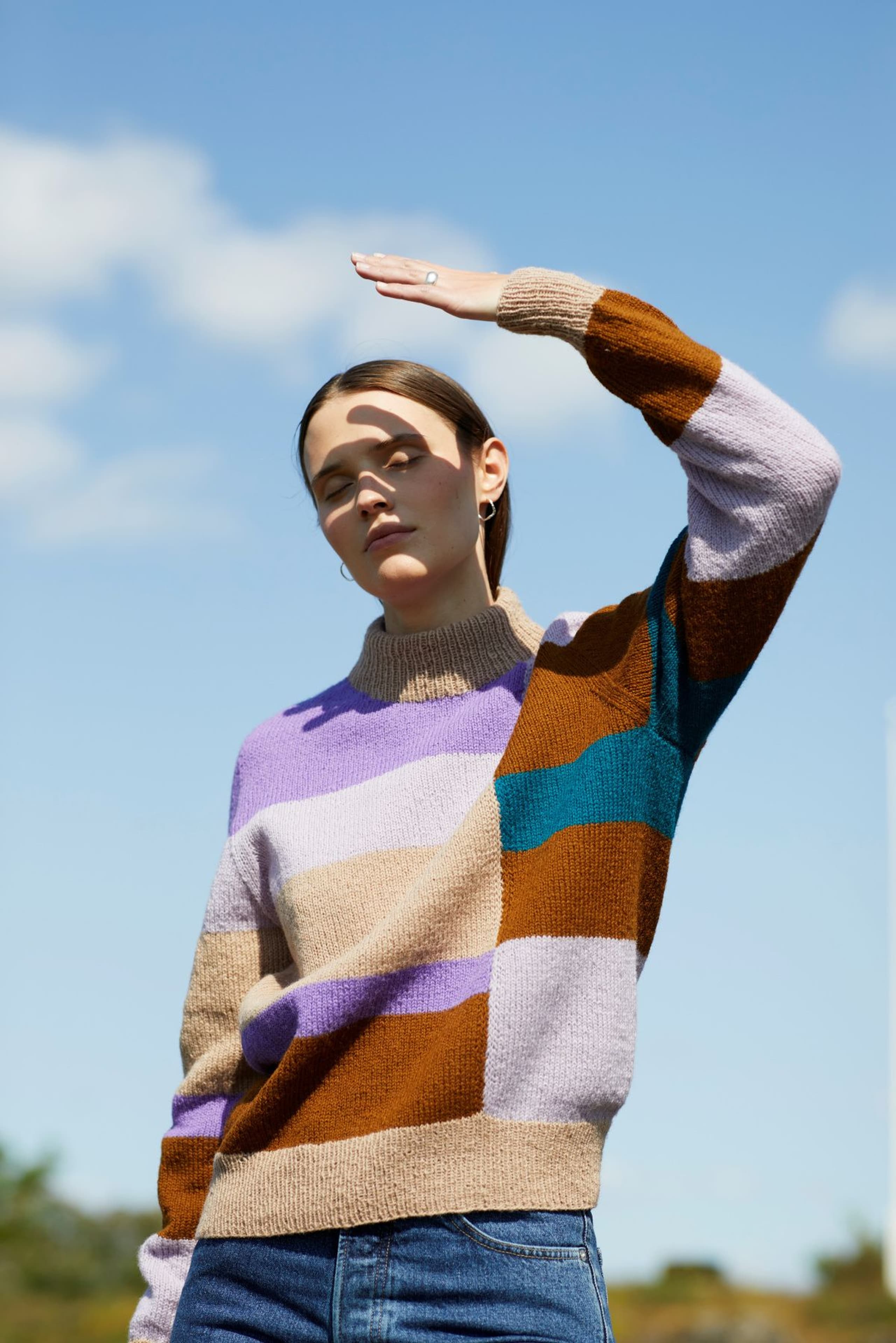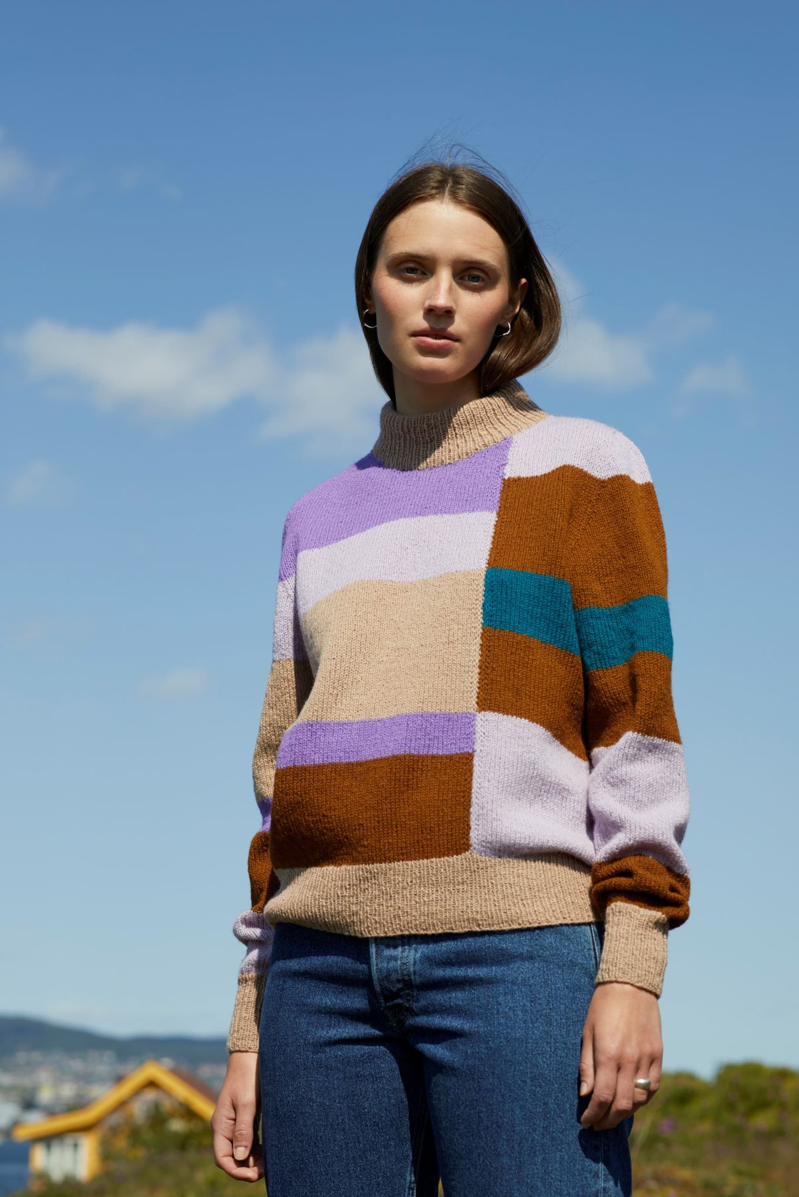 Denne genseren strikkes i et rutete mønster i glattstrikk, med teknikken intarsia. Dette er en teknikk som kan brukes på flerfargestrikk med store fargeflater, uten at det blir lange trådsprang på baksiden. Genseren strikkes i glattstrikk nedenfra og opp. Bol og ermer strikkes først hver for seg. Bolen strikkes frem og tilbake i intarsiateknikk – den heftes sammen i siden mens man strikker, slik at man slipper å sy sammen genseren til slutt - dette gjør man ved å snurre trådene rundt hverandre. Ermene strikkes rundt på vanlig måte. Under ermene settes ermer og bol inn på samme pinne og det strikkes videre frem og tilbake i intarsiateknikk. Først felles det som til raglan på vanlig måte, deretter feller man kun ermemaskene, mens bol strikkes rett opp. Så strikker man de siste ermemaskene sammen med bol, og strikker skrå skulder. Skuldermaskene syr man sammen. Til slutt strikkes det opp m rundt halsen og det strikkes halskant. For å få en klassisk passform, strikk en størrelse som er 8-12 cm større enn brystvidden din.