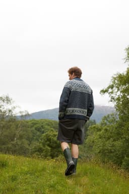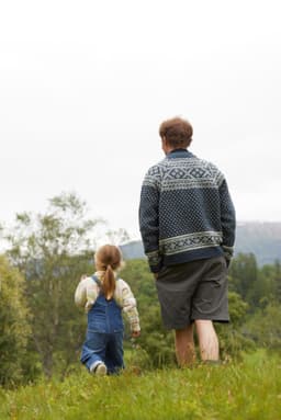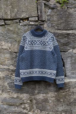 Setesdalgenser til herre er strikket i det klassiske Setesdalmønsteret med bred mønsterbord over bærestykket og lus over bol og ermer. Kantene på bol og ermer har også en bred mønsterbord før vrangbordene. Genseren har en normal, rett og avslappet fasong og er strikket ovenfra og ned. Først strikkes en lang halskant med vrangbord, som senere brettes inn mot vrangen og sys til. Etter halskanten formes halsringningen ved hjelp av vendepinner, samtidig som det strikkes mønster og økes til raglan. Det økes på hver side av en raglan-maske, mønsteret er symmetrisk over raglan-m, slik at alle delene starter og slutter på samme sted i mønsteret. Etter raglanøkningen deles arbeidet inn til for- og bakstykke og ermer, som videre strikkes hver for seg. For en avslappet passform, velg en størrelse som er 14-22 cm større enn din egen brystvidde.
