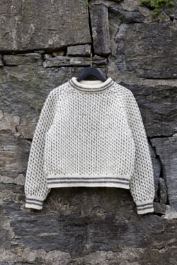 Strikket ovenfra og ned Islender til dame er en helmønstret genser strikket i det klassiske islender-mønsteret. Genseren har en kort, rett og avslappet fasong med rund hals. Genseren er strikket ovenfra og ned. Først strikkes en halskant som skal brettes dobbel. Ringningen formes ved hjelp av vendepinner, samtidig som det økes til raglan. Mellom raglanøkingene strikkes det en liten mønsterbord. Etter raglanøkingene deles arbeidet, og bol og ermer strikkes hver for seg. For en avslappet passform, velg en størrelse som er 10-16 cm større enn din egen brystvidde.