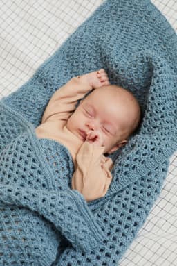 Hjerteteppet strikkes frem og tilbake i hullmønster. I hver side og hver ende strikkes det ribbekanter.