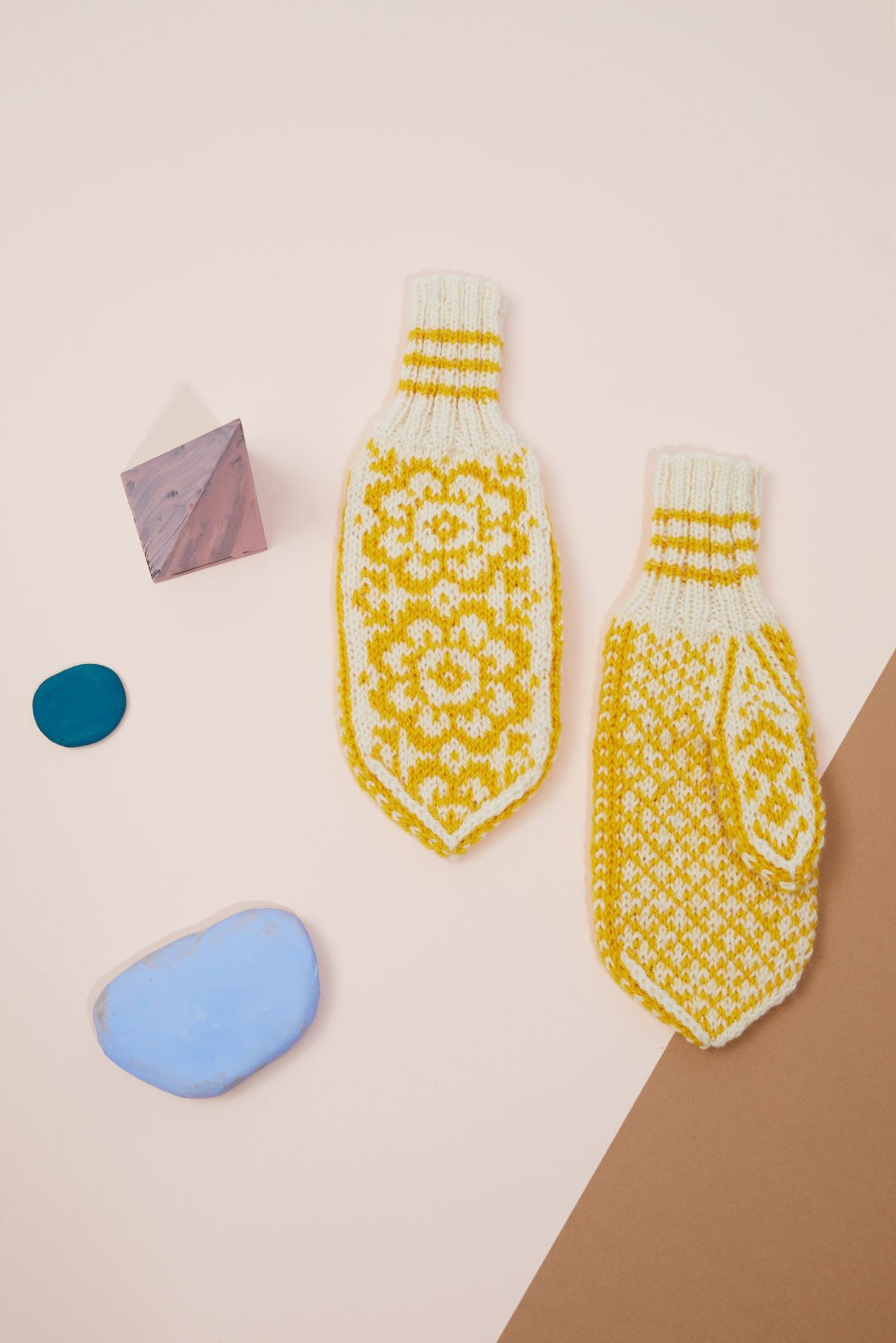 Vottene er strikket med en klassisk vakker rose kalt Appelsinarose på oversiden av votten og en småmønstret håndflate på innsiden. Vottene er strikket med vrangbord slik at vottene skal sitte godt rundt håndleddet. Det er økt ut til tommelkile.