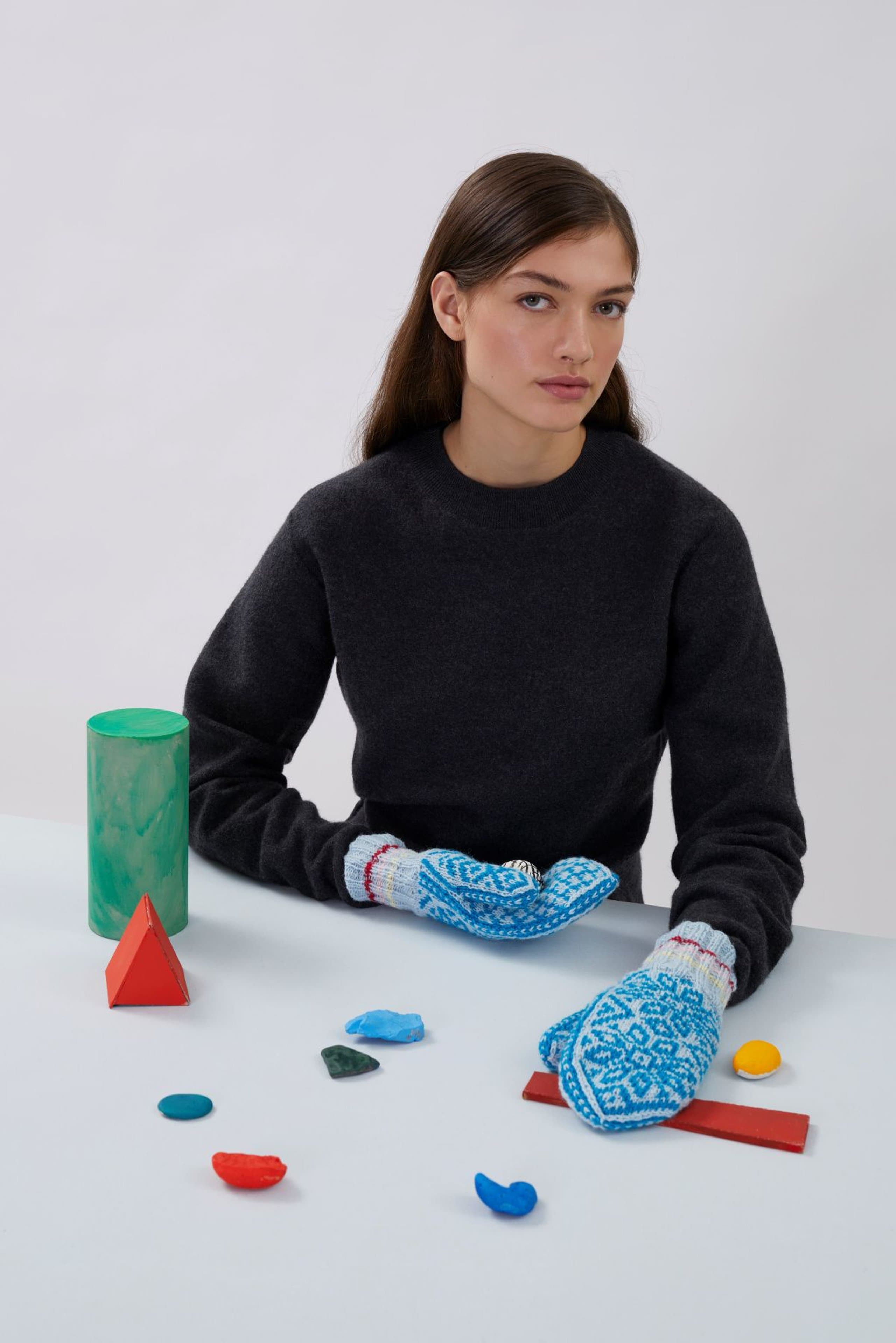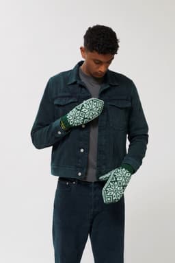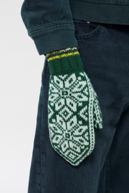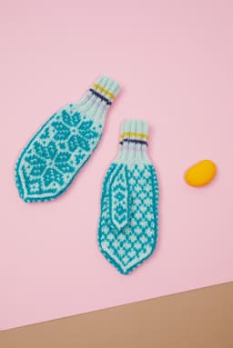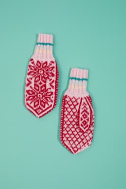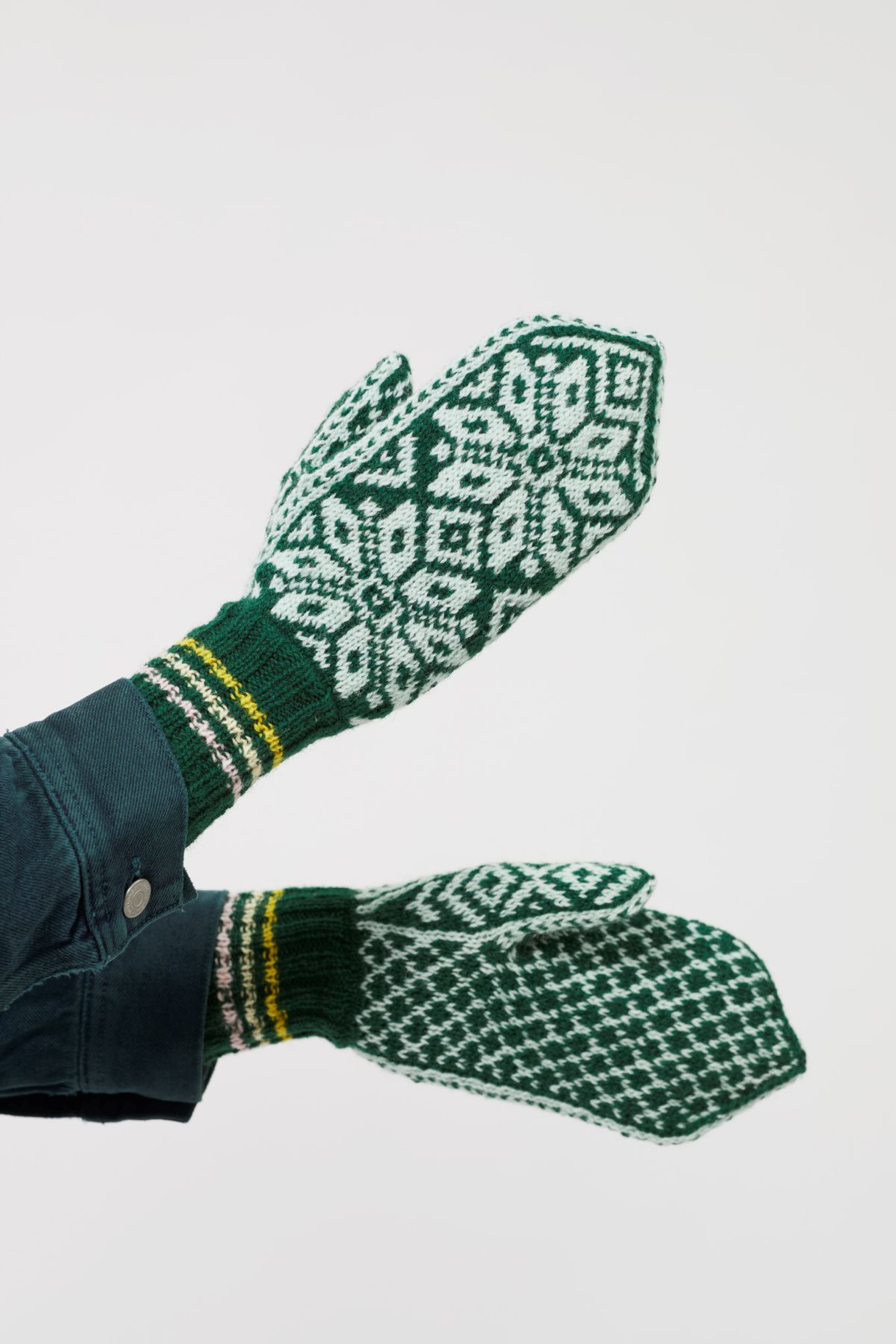 Vottene er strikket med en klassisk vakker stjernerose på oversiden av votten og en småmønstret håndflate på innsiden. Vottene har vrangbord slik at vottene skal sitte godt rundt håndleddet, og det er økt ut til tommelkile.