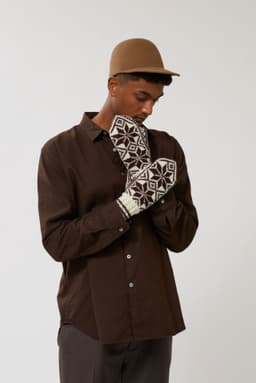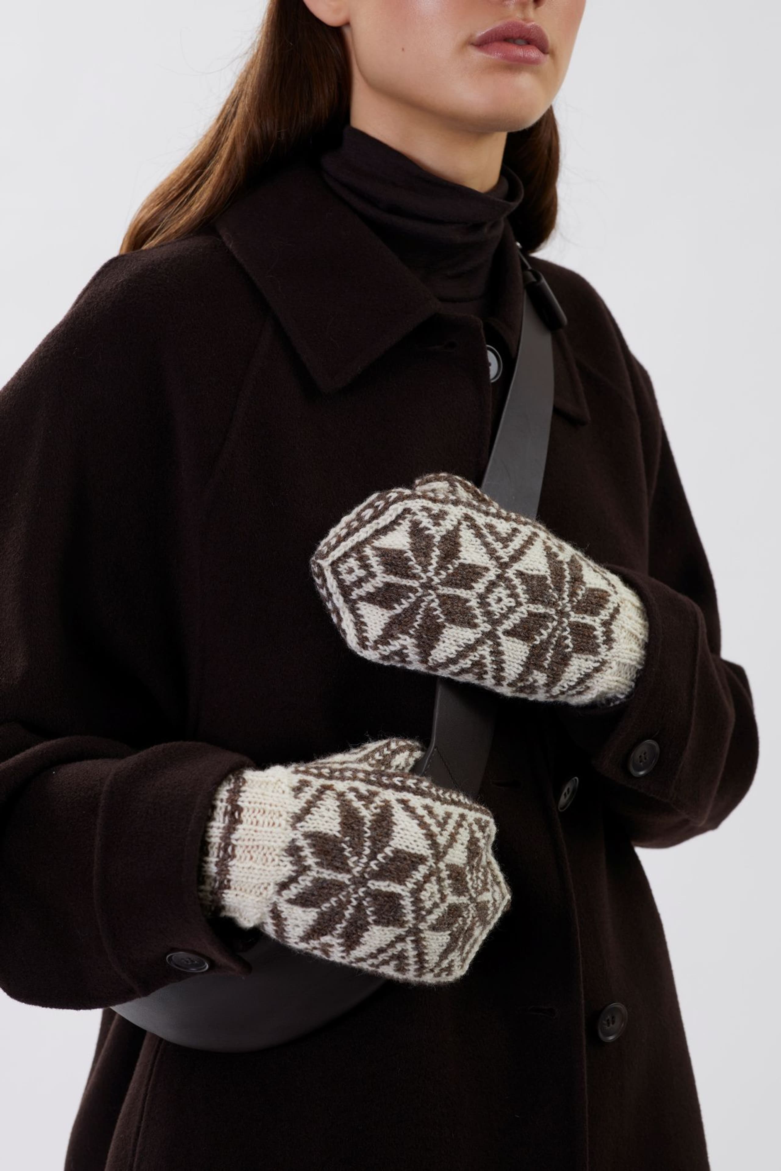 Vottene er strikket med en klassisk vakker Åttebladsrose på oversiden av votten og en småmønstret håndflate. Vottene er strikket med vrangbord så vottene skal sitte godt rundt håndleddet. Det er økt ut til tommelkile.