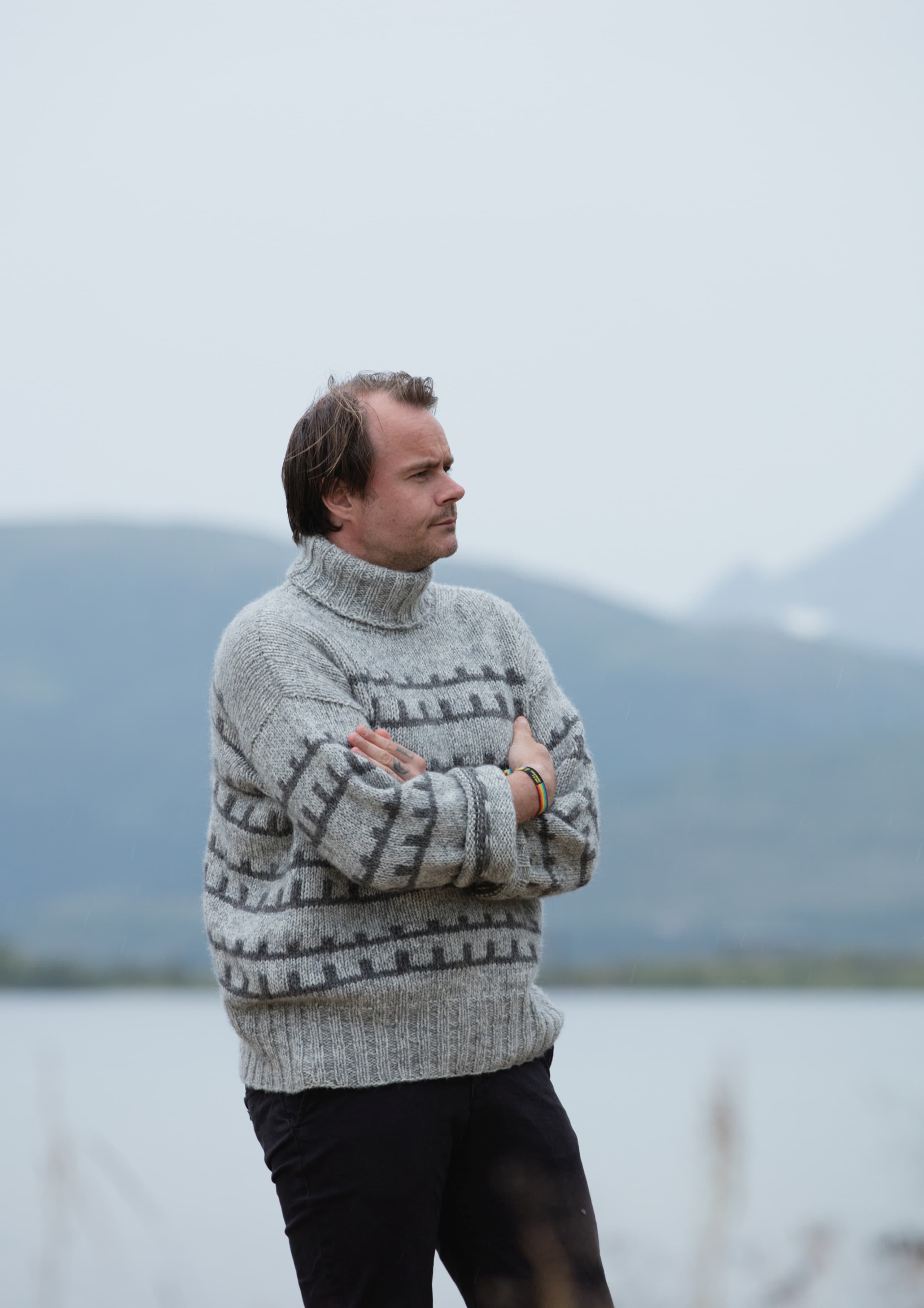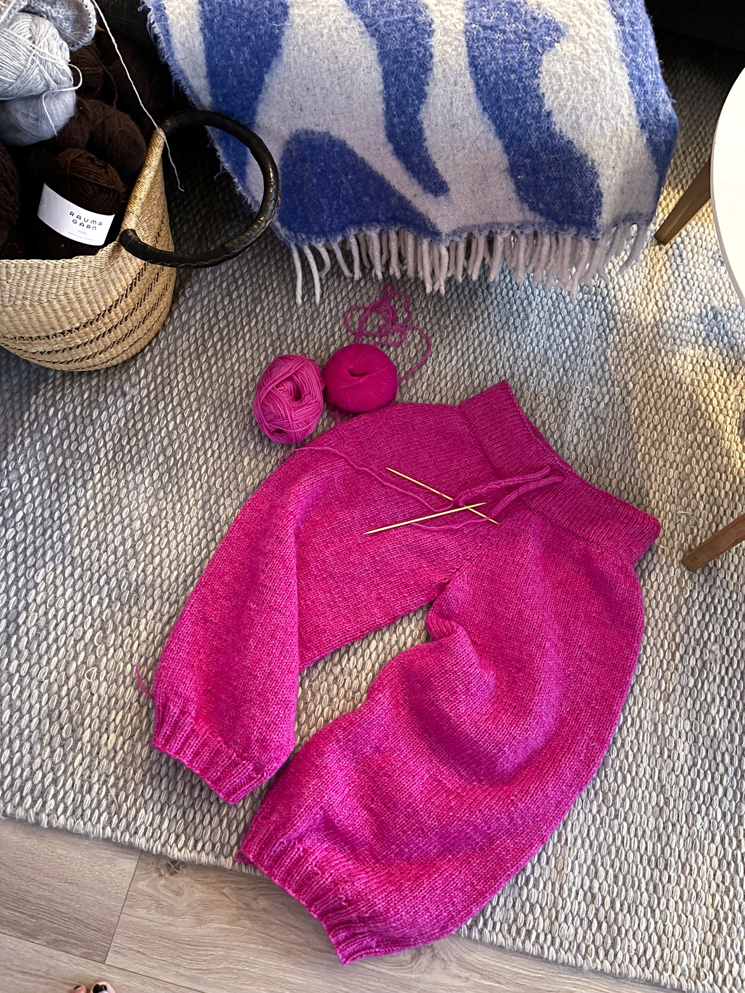 Hele genseren strikkes med 1 tråd Fivel og 1 tråd Alpaca Silk. Genseren strikkes nedenfra og opp. Du starter med ribbkant, før du går over til mønsterstrikk som er gjennomgående for hele genseren. Når bol er strikket ferdig, deler du arbeidet i to deler, forstykke og rygg. Mens du strikker frem og tilbake over disse delene feller du i starten inn mot ermene, dette for at genseren skal sitte godt til kroppen, og ikke klumpe seg under ermene. Da Stine Erikstad skulle designe til Fremstrikk så hun for seg en oversized genser med mønster. Hun begynte på en prøvelapp og tenkte ‘Shit, I got it!’, men det gikk lang tid før hun plukket opp prøvelappen igjen. Det er gjerne et tegn på at noe skurrer. Hun gikk flere runder. Og så løsnet det. Det ble enkel mønsterstrikk med grafiske søyler i to farger, og to tråder. Fivel og Alpaca Silk. Hun designet også en bukse, og settet har fått navnet Gloria sett. Denne oppskriften er på engelsk.