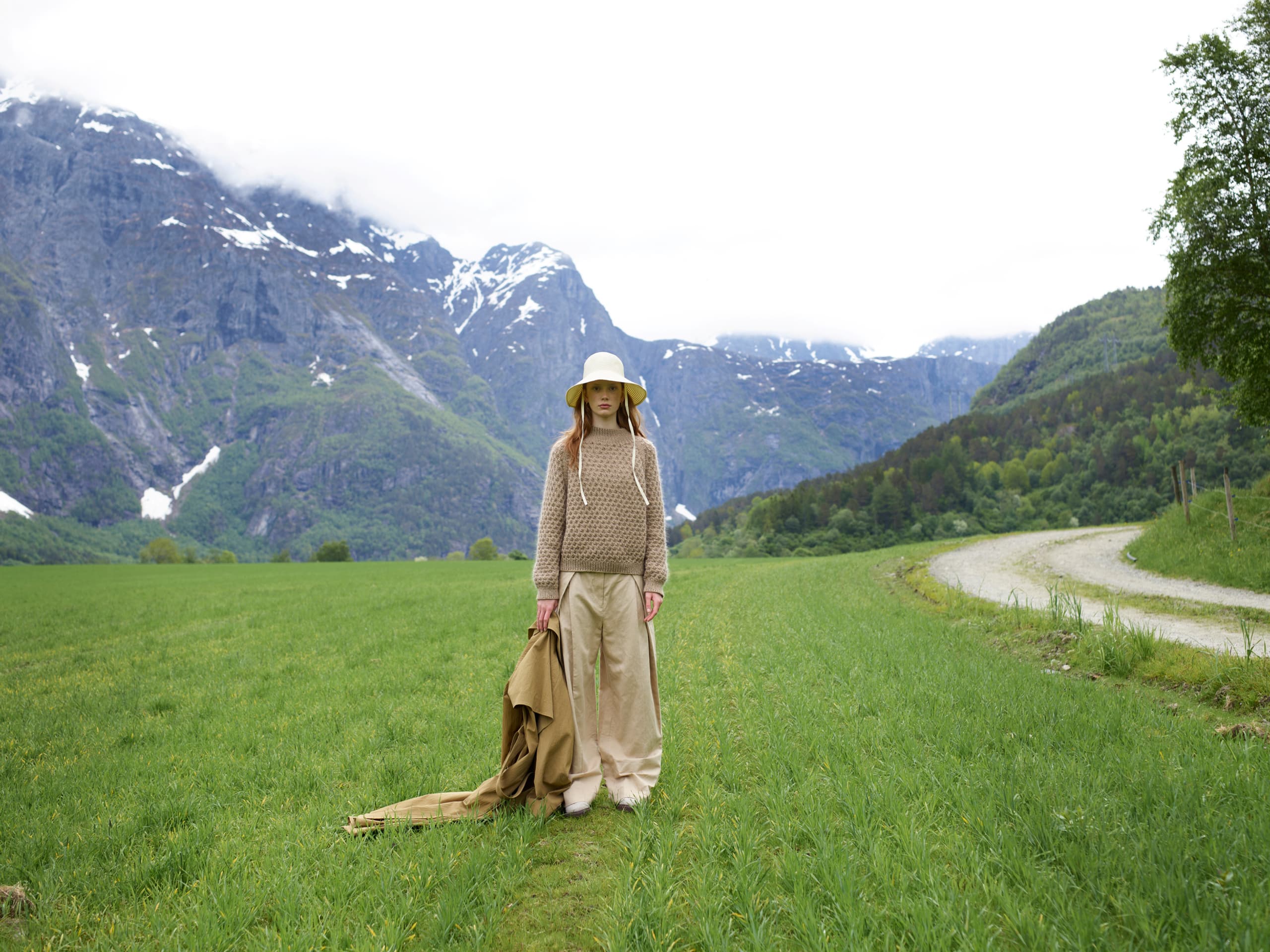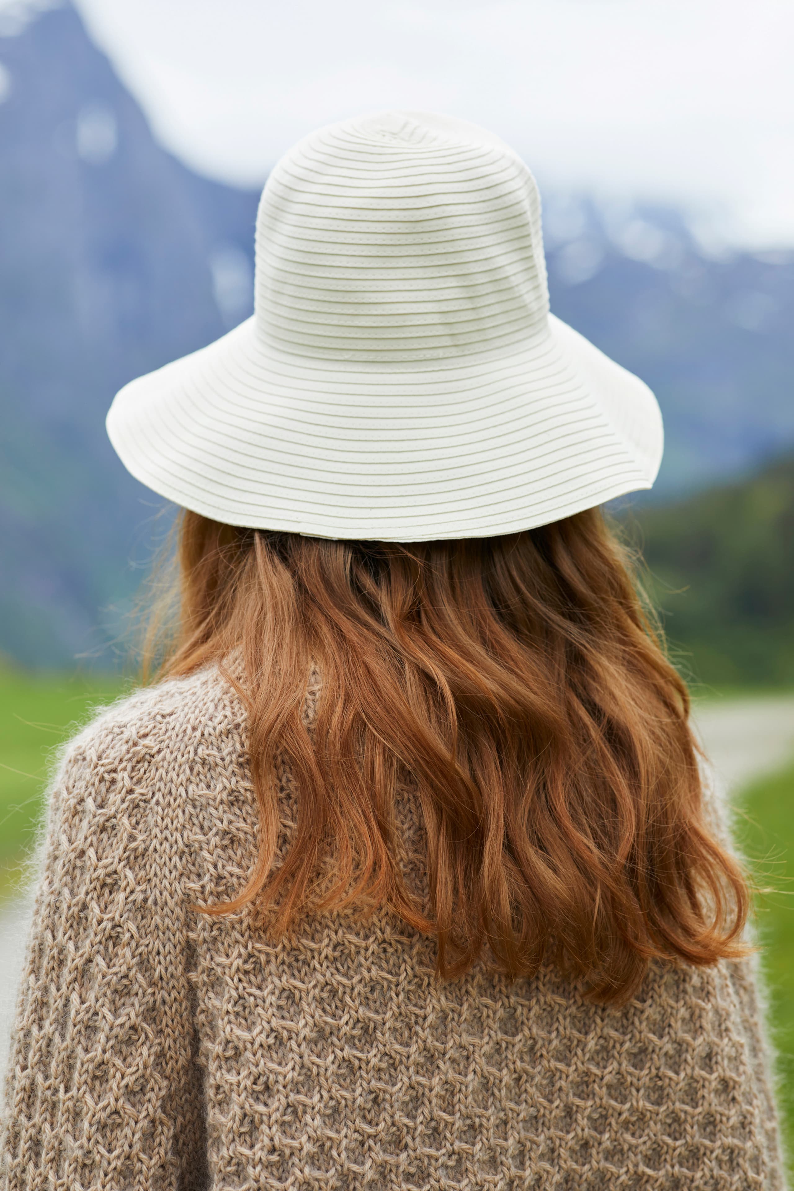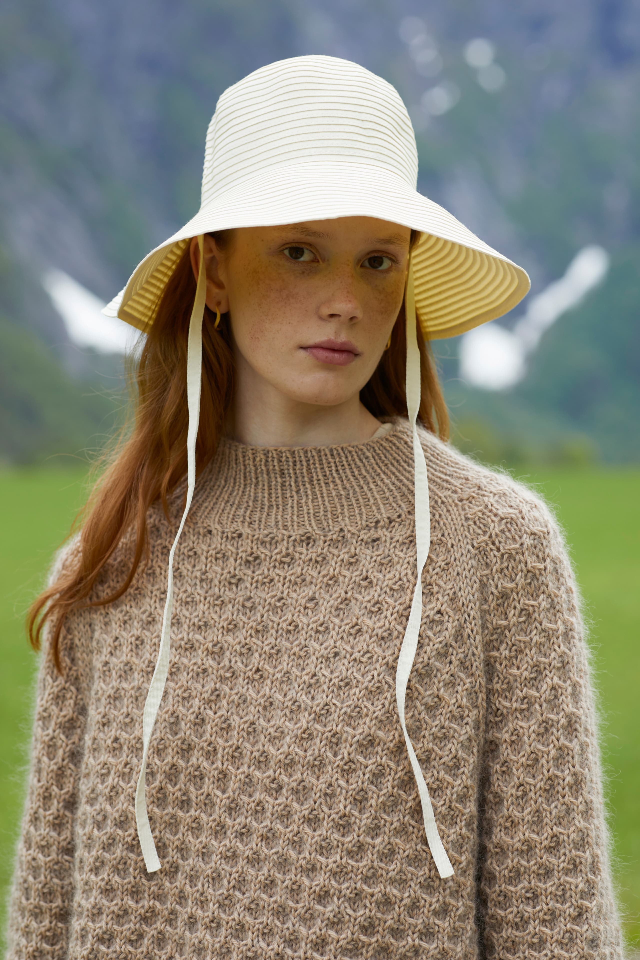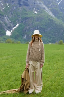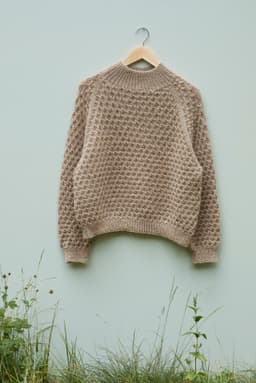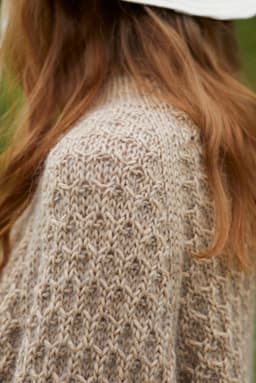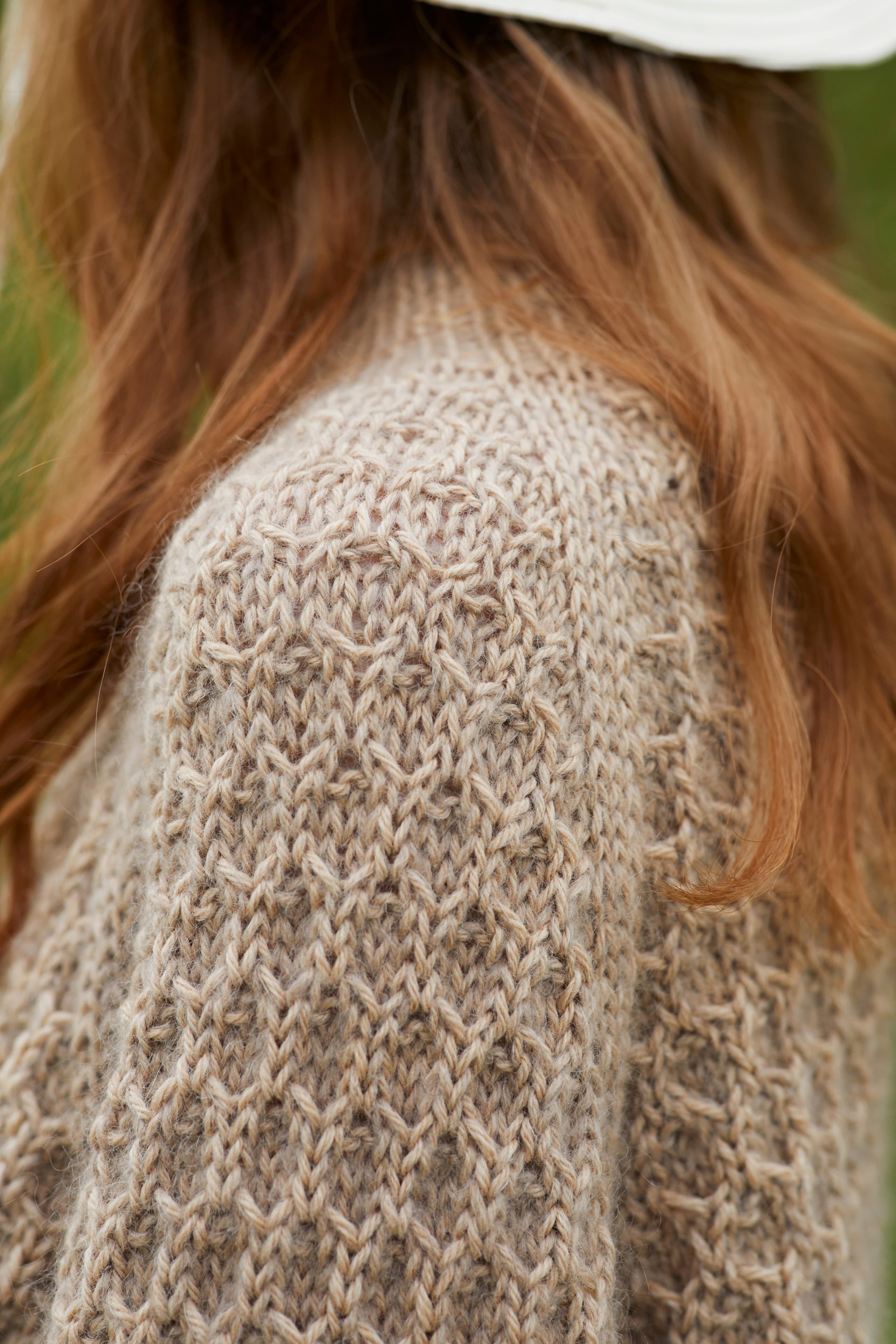 Floriagenseren er en raglangenser i flettestruktur, som strikkes ovenfra og ned. Genseren har en ledig fasong, halvhøy hals og kanter i 1x1 ribb. Floriagenseren strikkes med én tråd Mitu sammen med én tråd Plum. Arbeidet starter i halsen, som strikkes rundt i ribbestrikk. Deretter formes halsutringningen ved å strikke vendepinner, samtidig som det økes til raglan på hver side av 3 glattstrikkede masker. Når raglanøkningene er ferdige, strikkes bol og ermer rundt hver for seg og avsluttes med kanter i ribbestrikk.