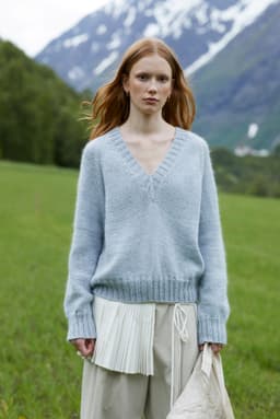 Maiagenseren er en glattstrikket raglangenser med dyp vhals, som strikkes ovenfra og ned. Genseren har en ledig fasong og kanter i 2x2 ribb. Maiagenseren strikkes med én tråd Mitu sammen med én tråd Plum. Arbeidet starter i nakken og det strikkes frem og tilbake, samtidig som det økes til raglan ved hvert raglanmerke og til v-hals i forkantene. Når raglan og v-hals er ferdige, strikkes ermene og bolen rundt hver for seg og avsluttes med kanter i ribbestrikk. Til slutt strikkes masker opp til halskanten som strikkes i ribbestrikk med fellinger midt foran.