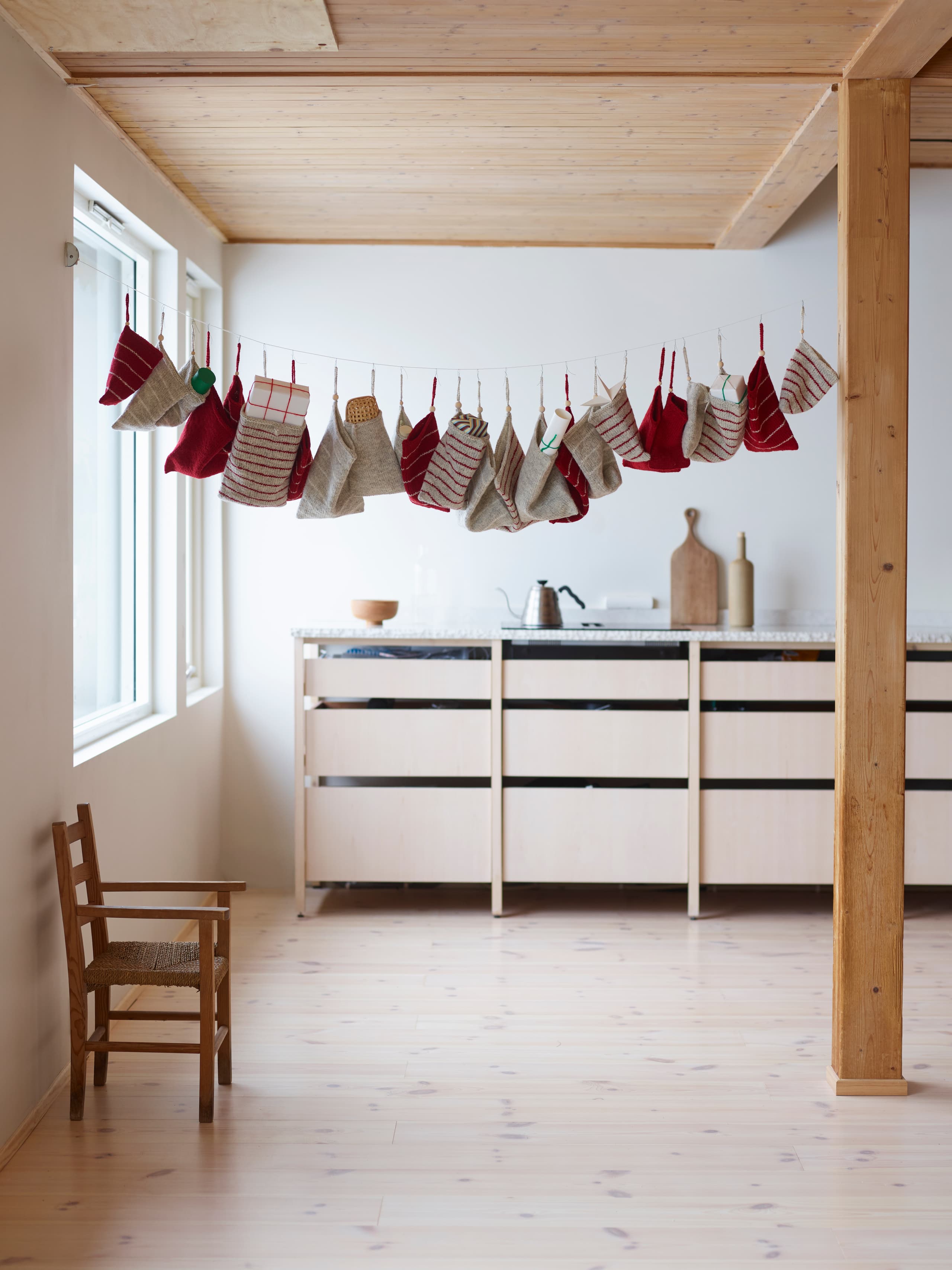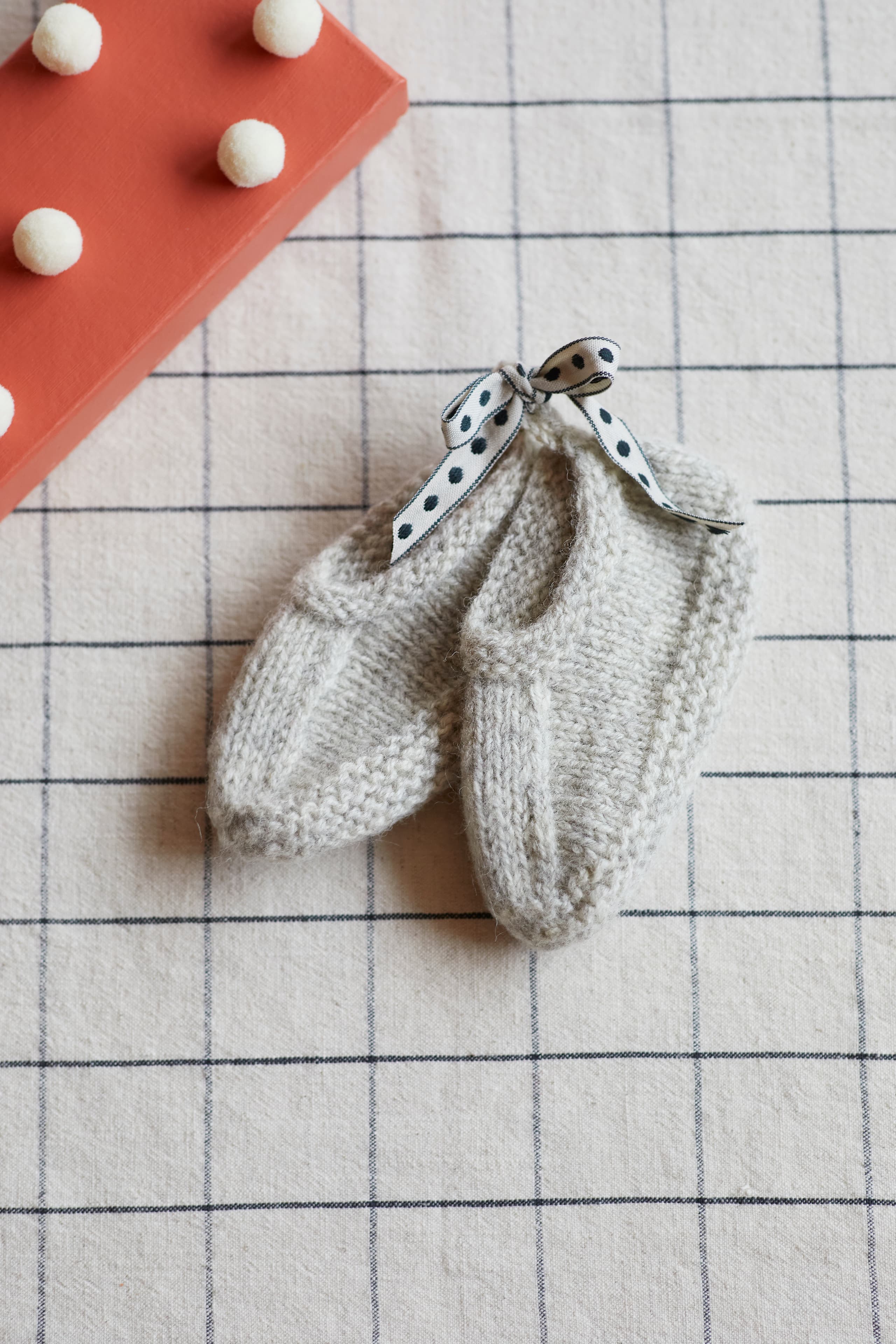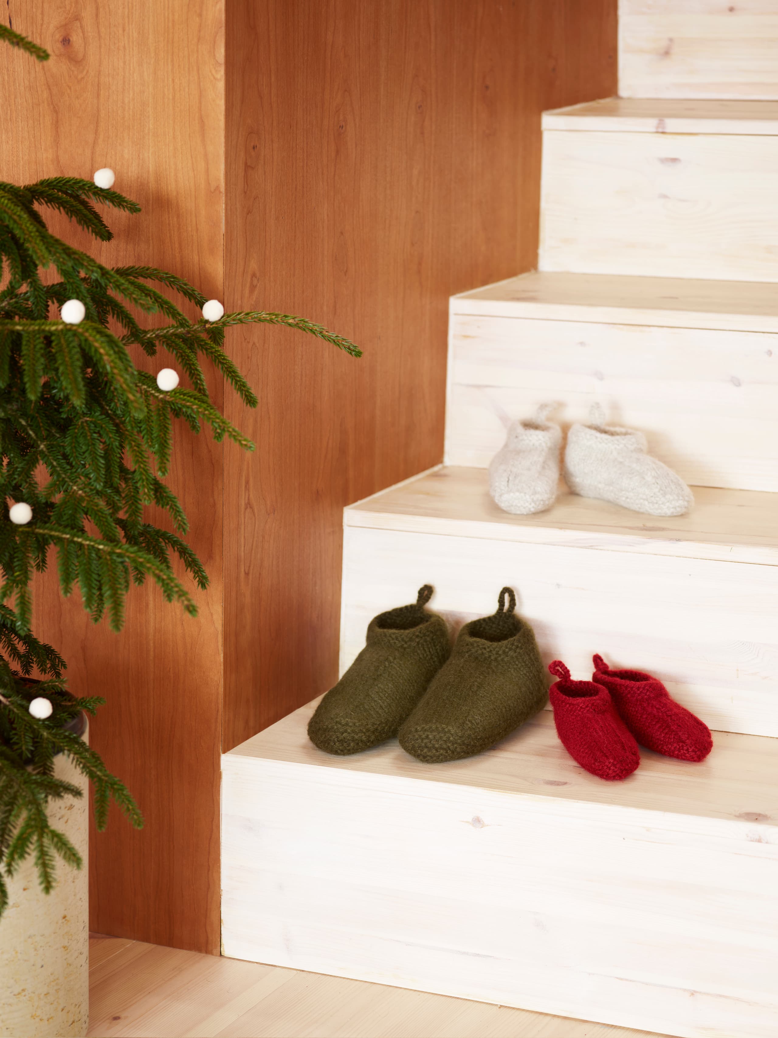 Tøflene strikkes med dobbel tråd kun med rette masker, fra undersiden og opp. Du starter med et rektangulært stykke i rillestrikk, som er dobbelt så lang som det fotsålen til slutt skal bli. Etter noen omganger brettes det rektangulære stykket i to, slik at oppleggskanten møtes. Dette danner grunnlaget for sålen. Midt under sålen vil det foreløpig være en glipe som sys sammen til slutt. Videre strikkes det rundt fra sålen og oppover. For å forme tøffelen til foten felles det masker oppover foran på vristen til du til slutt sitter igjen med et hull til foten i toppen. Avslutt med en rillekant rundt åpningen, før du syr sammen midt under og fester tråder. Tøflene vaskes før bruk, så de toves litt for å få en bedre slitestyrke.