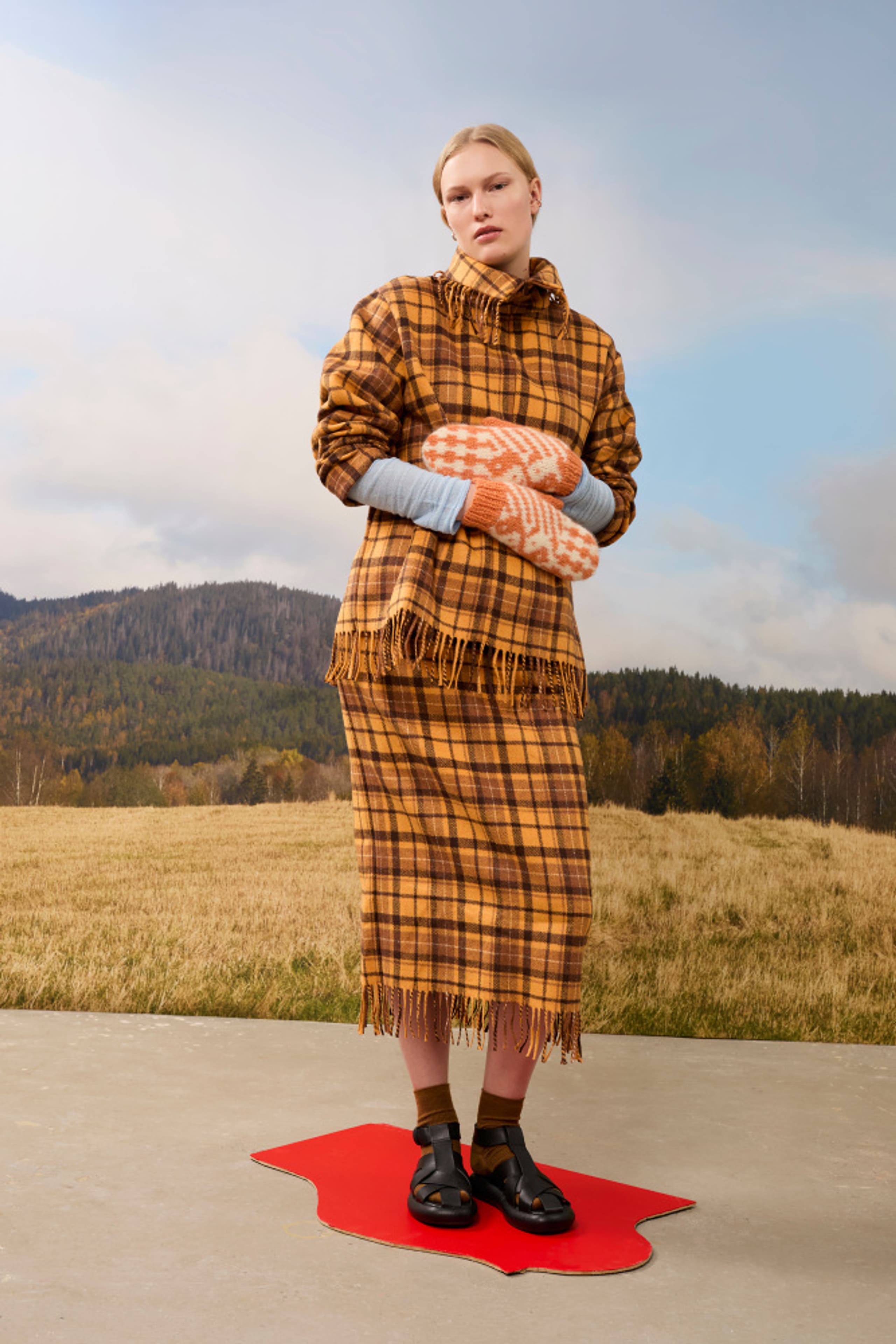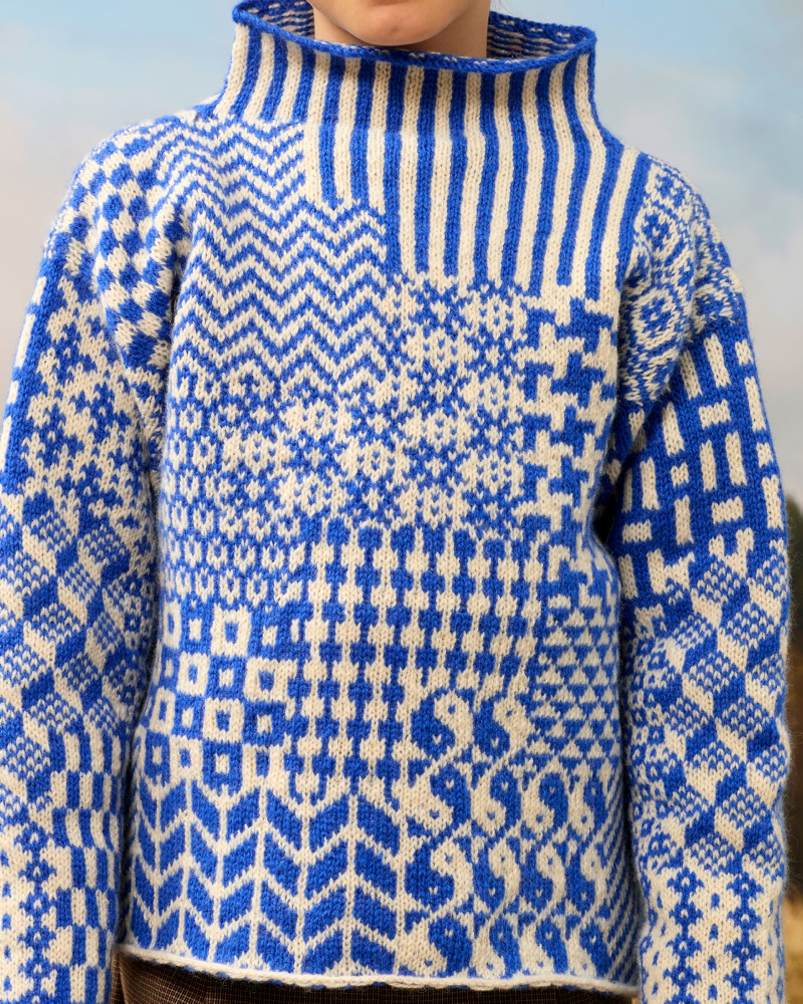 Nordic Mix Vest er et kult og uttykksfullt plagg med en rett passform og halvhøy hals. Vesten strikkes i Fivel, det samme garnet som orginaloppskriften Nordic Mix Sweater. Fivel er vårt aller mykeste ullgarn av 100% norsk ull. Vesten har, likt orginalgenseren, helt rå kanter, noe som gir plagget et rent og enkelt uttrykk. En forskjell fra genseren er at vesten har formede ermehull for en velsittende passform over skuldrene. Nordic Mix Vest strikkes rundt, nedenfra og opp, etter diagram. Skuldrene strikkes sammen ved å felle av annenhver maske fra for- og bakstykket og deretter plukkes det opp masker til halsen som strikkes rundt. Ermehullene klippes opp, men før det sikres klippemaskene ved ermene ved å hekle eller sy, slik at arbeidet ikke rakner.