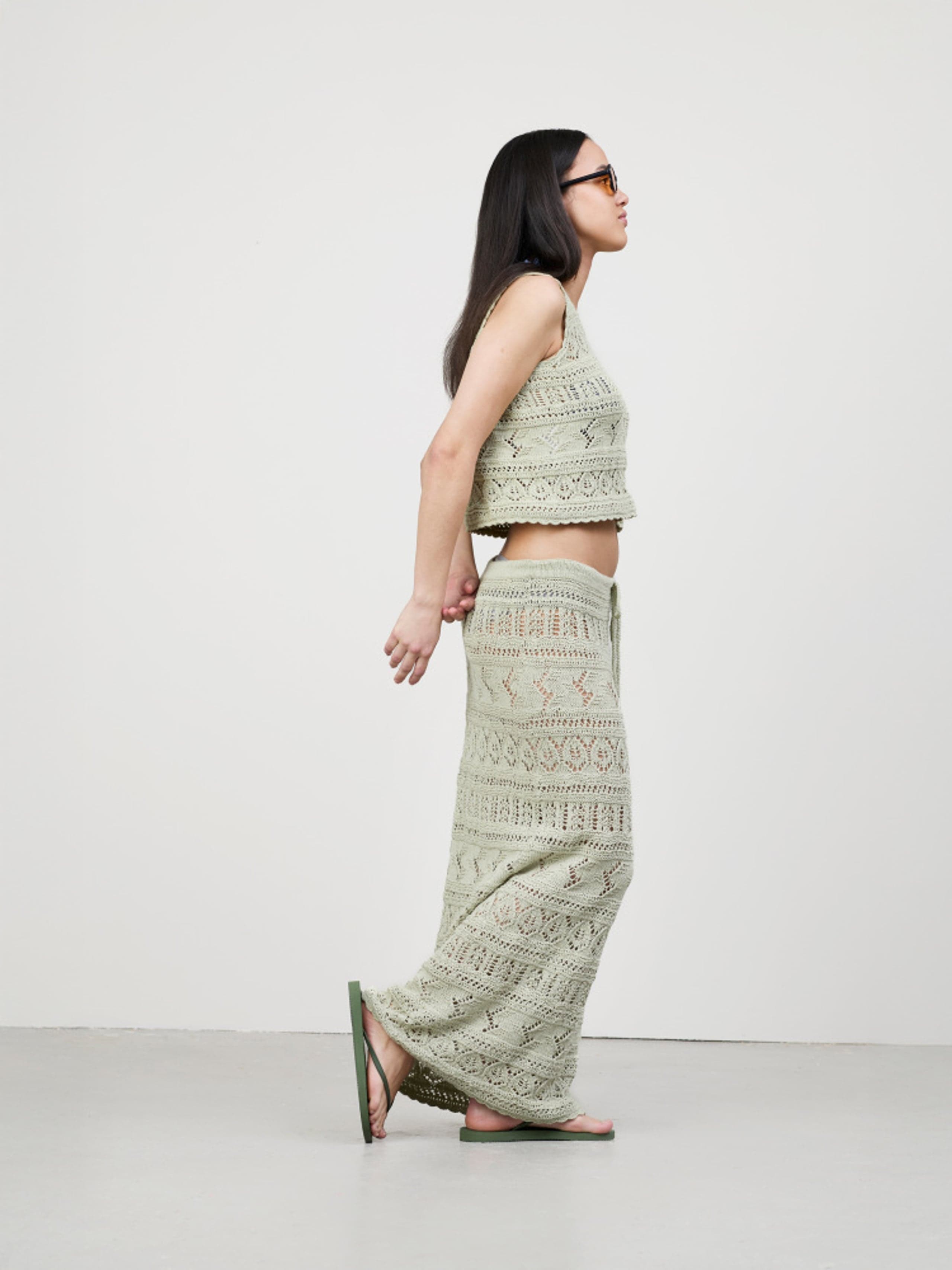 Løkkaskjørtet er et sommerlig blondeskjørt med hullmønster i border. Det er langt eller kort, har knytesnor i livet og heklet nederkant, noe som gir skjørtet en elegant finnish. Skjørtet strikkes rundt, nedenfra og opp etter diagram i Pandora, laget av 100% bomull.