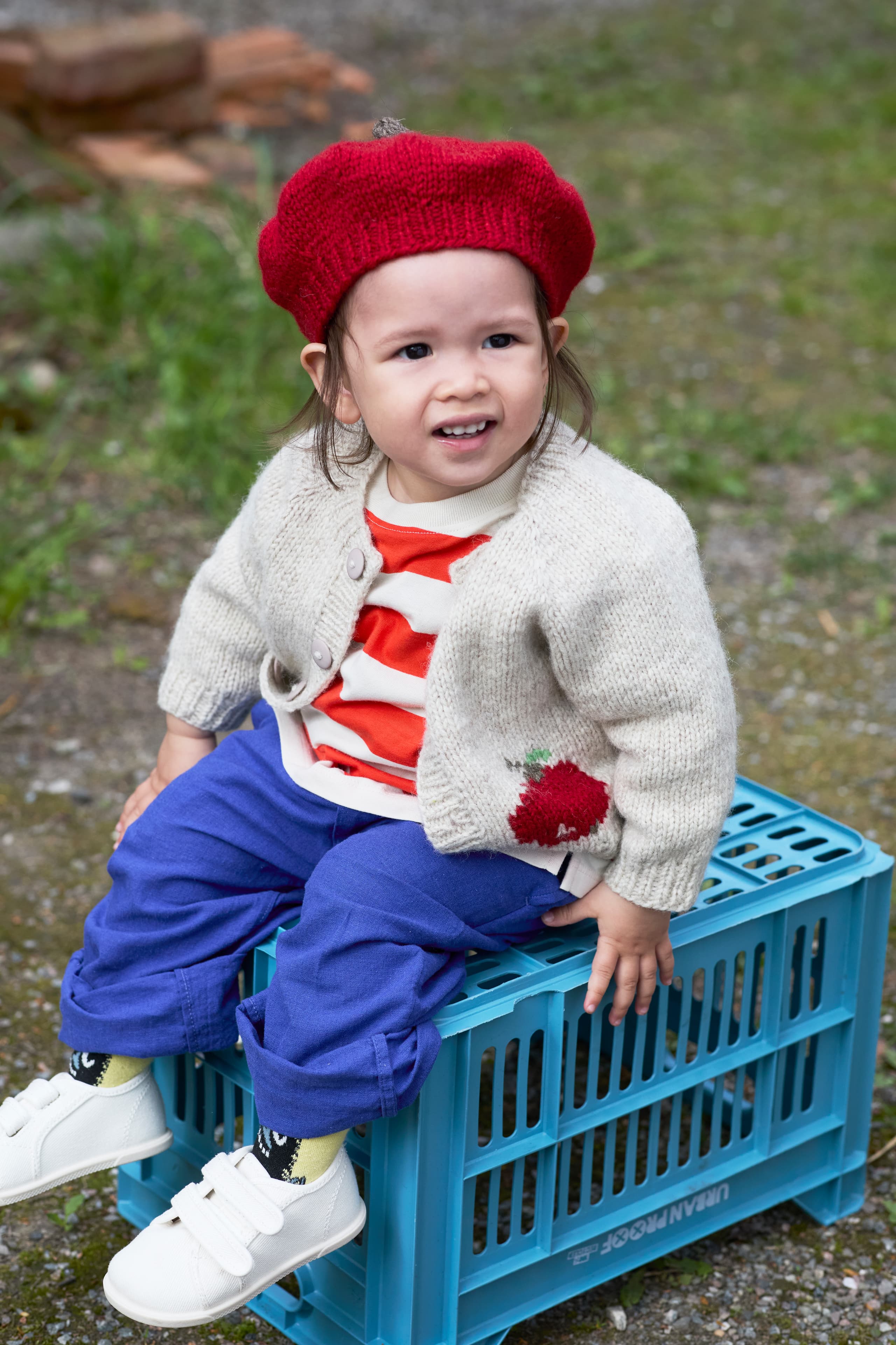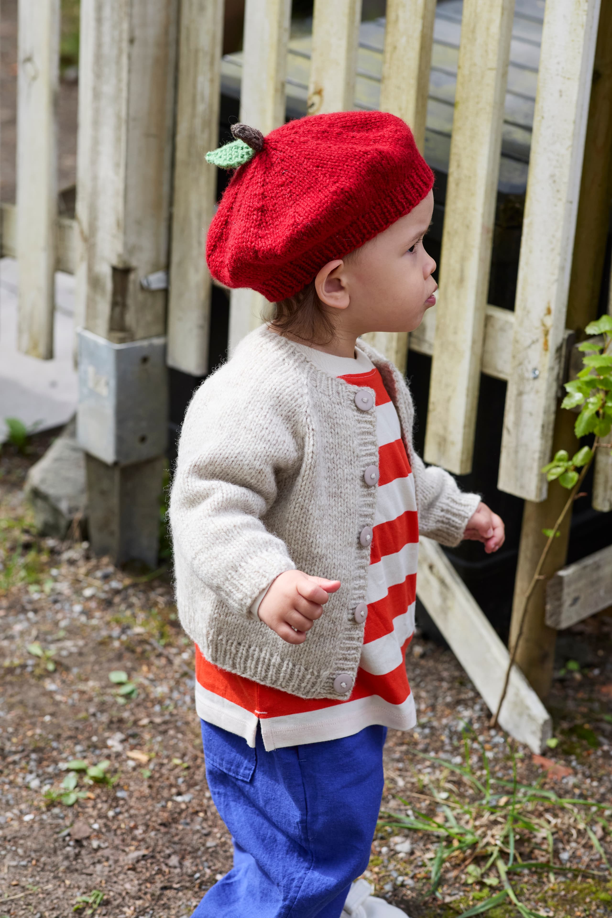 Fruktluen er en morsom og lettstrikket lue som er formet som en frukt! Luen strikkes rundt i glattstrikk, fra hodeåpningen til toppen. Den har en kant i 1x1 ribb rundt hodeåpningen og en «stilk» på toppen med et strikket blad. Luen formes ved først å øke masker jevnt ut og deretter felle masker jevnt inn. Luen avsluttes med en stilk strikket rundt. Til slutt strikkes et blad frem og tilbake, som sys fast ved stilken.