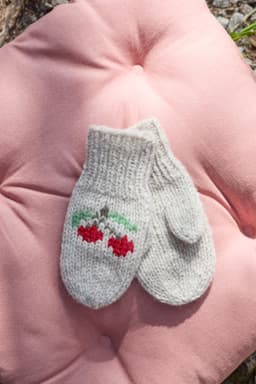 Kirsebærvotter er et par enkle votter med søte broderte kirsebær. Vottene strikkes ensfarget fra skaftet og ut til tuppen. Skaftet strikkes i ribbestrikk, mens resten av votten strikkes i glattstrikk. Tommelen lages ved at det felles og legges opp nye masker til et tommelhull.