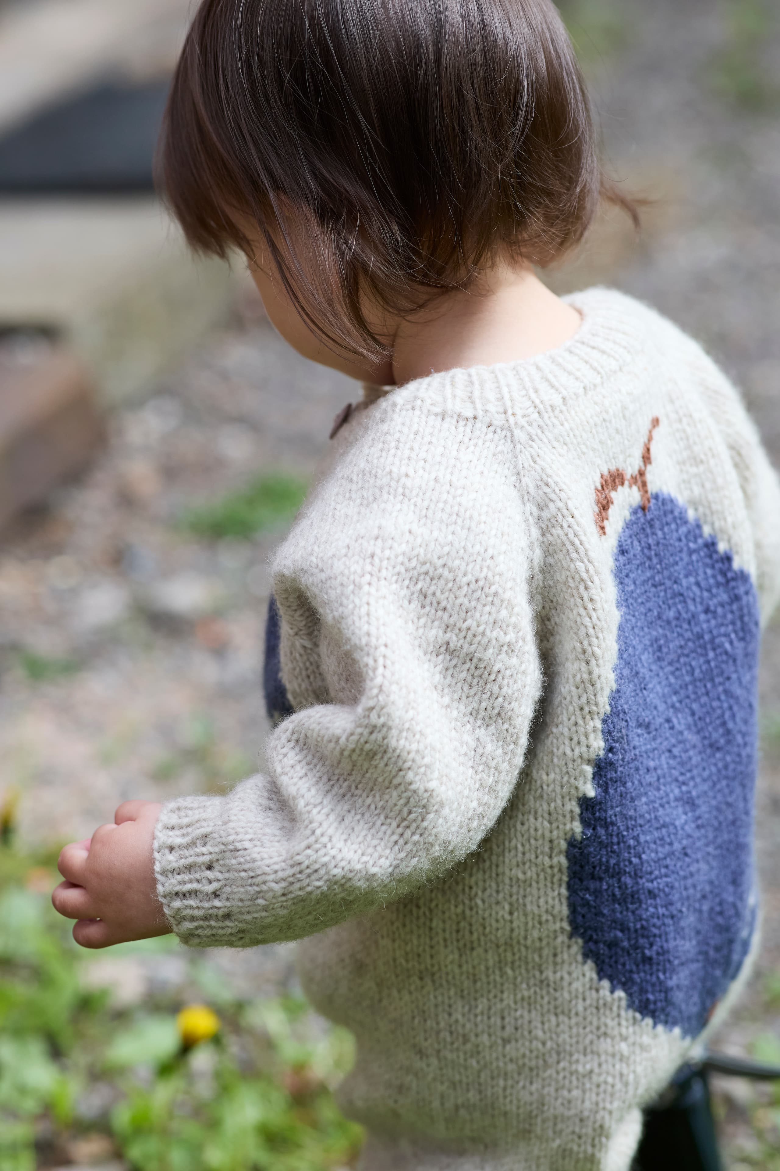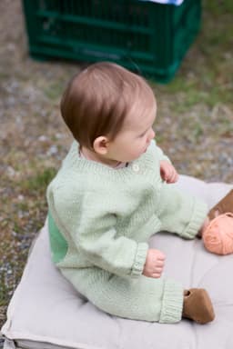 Pæredressen er et herlig hverdagsplagg for små barn med lekne detaljer! Den er glattstrikket med søte pæremotiv i intarsiateknikk og strikkes ovenfra og ned. Den har ei stor pære på ryggen og ei lita pære på venstre forstykket. Dressen har raglanøkninger, rund hals, åpning foran og kanter i 1x1 ribb.