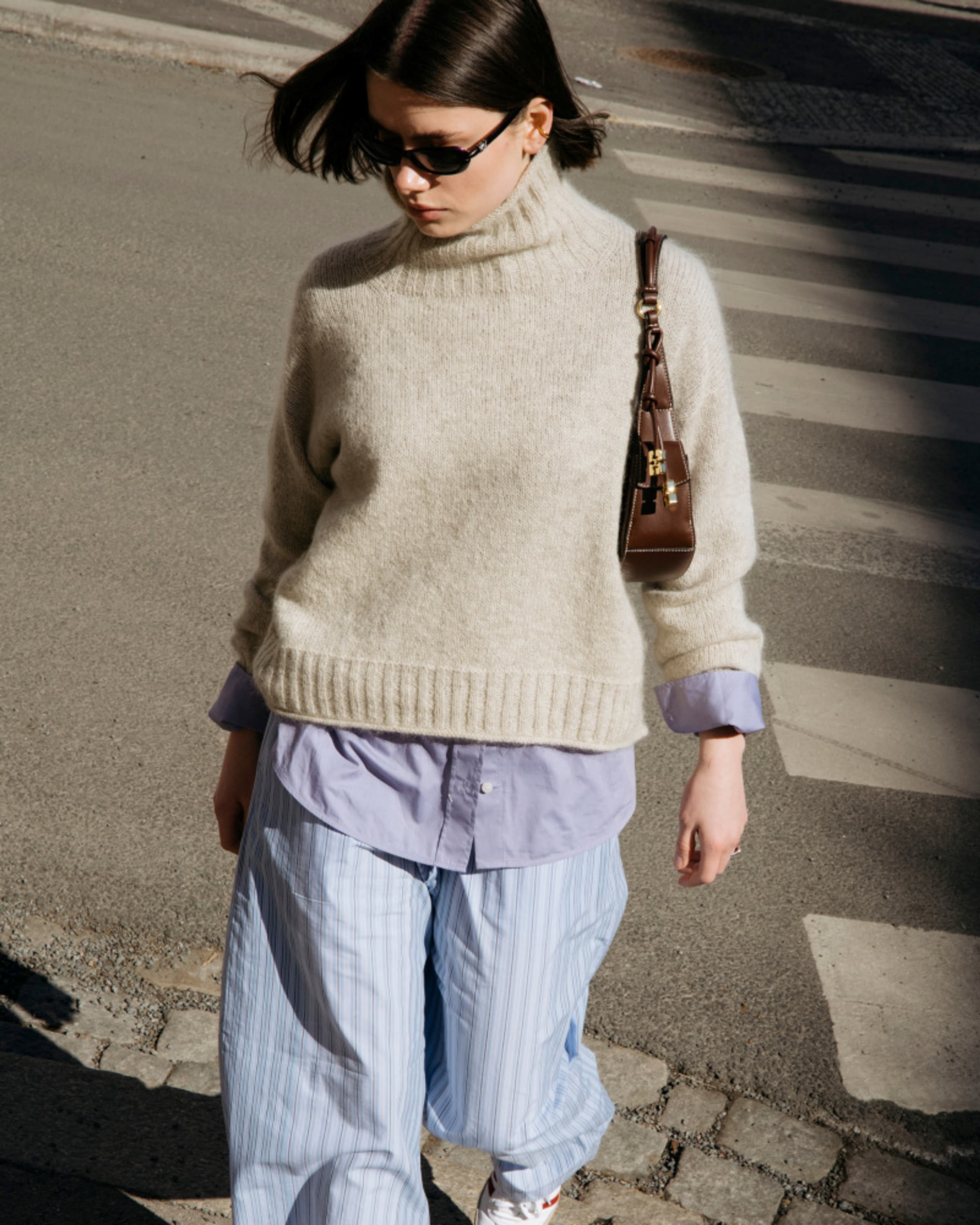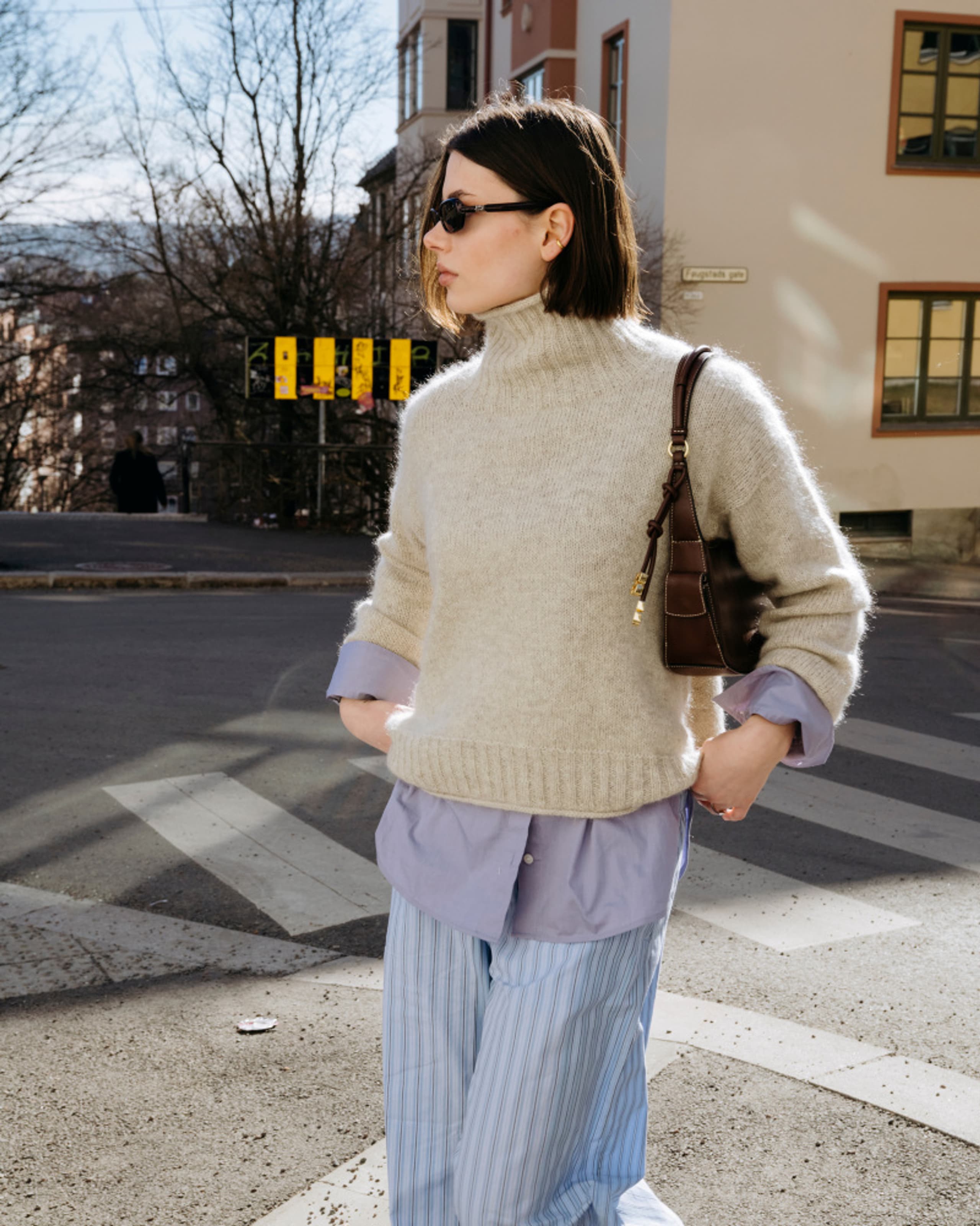 Disengenseren er skapt for å gli rett inn i strikkegarderoben din – en delikat og tidløs genser med pene detaljer og halvhøy hals. Genseren strikkes i Lamull og Plum, som gjør den lett og myk, med en pusete og luksuriøs følelse.