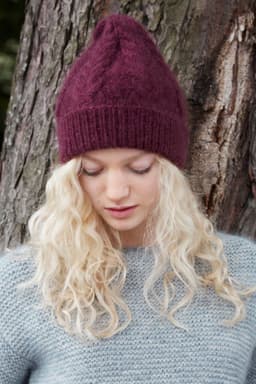 Lue og votter med fletter.